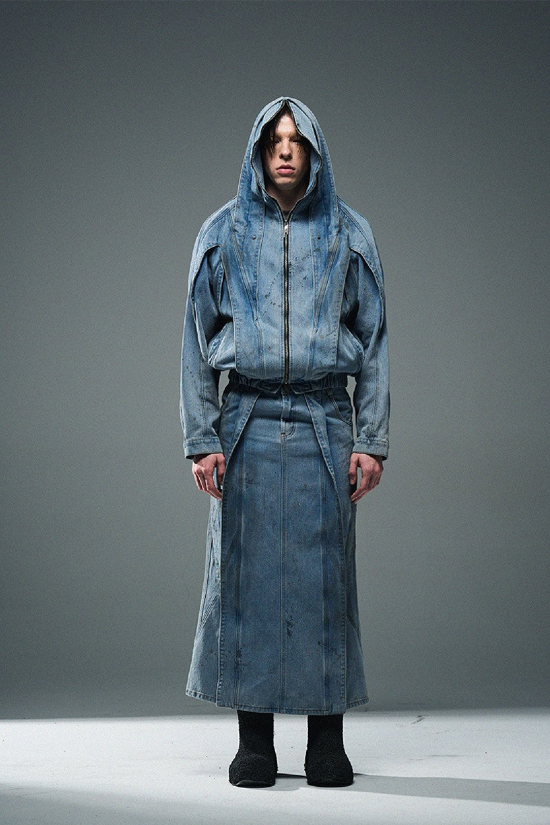 Discover the latest from BLIND/NO PLAN with the Mud Dye Splash Distressed Zip Jacket. a standout piece from their Spring/Summer '24 collection. This blue jacket features a unique mud dye splash design. crafted from a comfortable blend of 70% cotton and 30% polyester. Designed for an oversized fit. it offers both style and comfort. The male model is 1.85m (6'1ft) tall and weighs 64kg (141lbs). wearing a size L. Care instructions include machine wash or hand wash with water under 40°C. no bleach. ironing reversed with low temperature. and flat to dry.