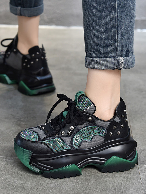 Niche Design Colorblock Leather Thick Bottom Shoes