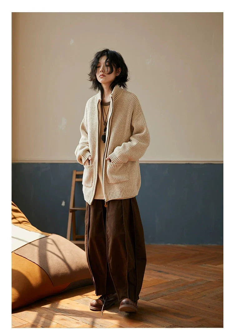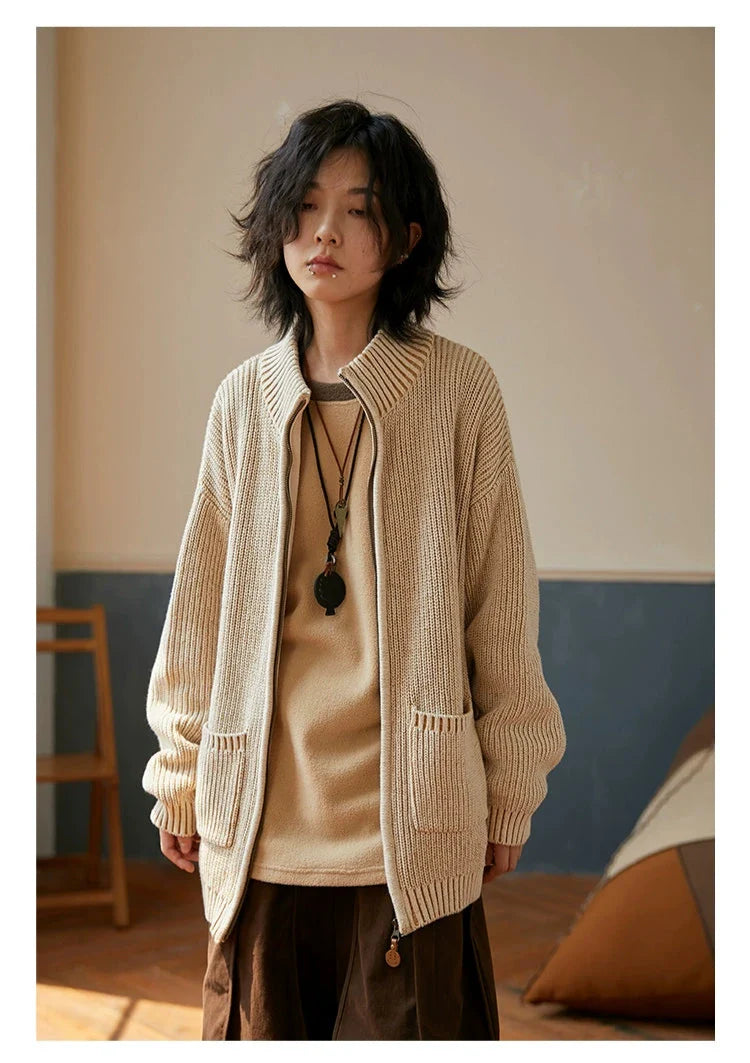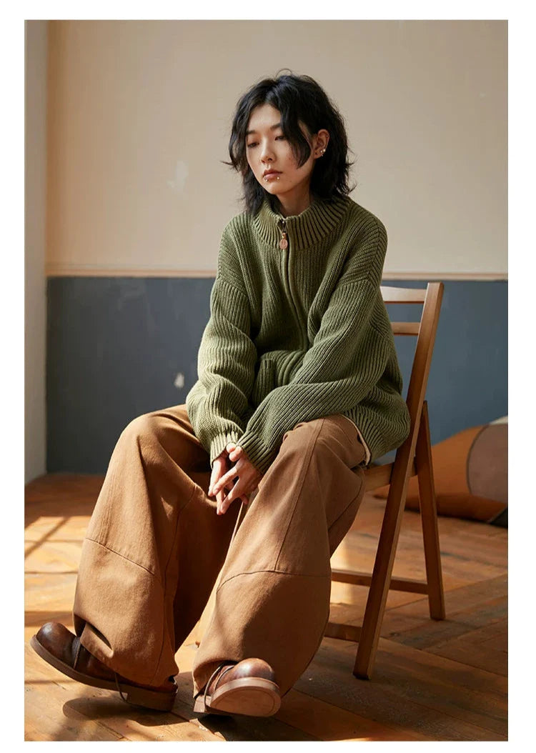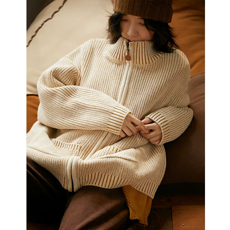 This trendy ribbed turtleneck zip-up sweater jacket is a must-have for the season. Made with yarn that has a high cotton content. it offers medium thickness but ample warmth. Versatile enough to be worn as an autumn jacket or as a winter inner layer. it's perfect for both outerwear and layering.