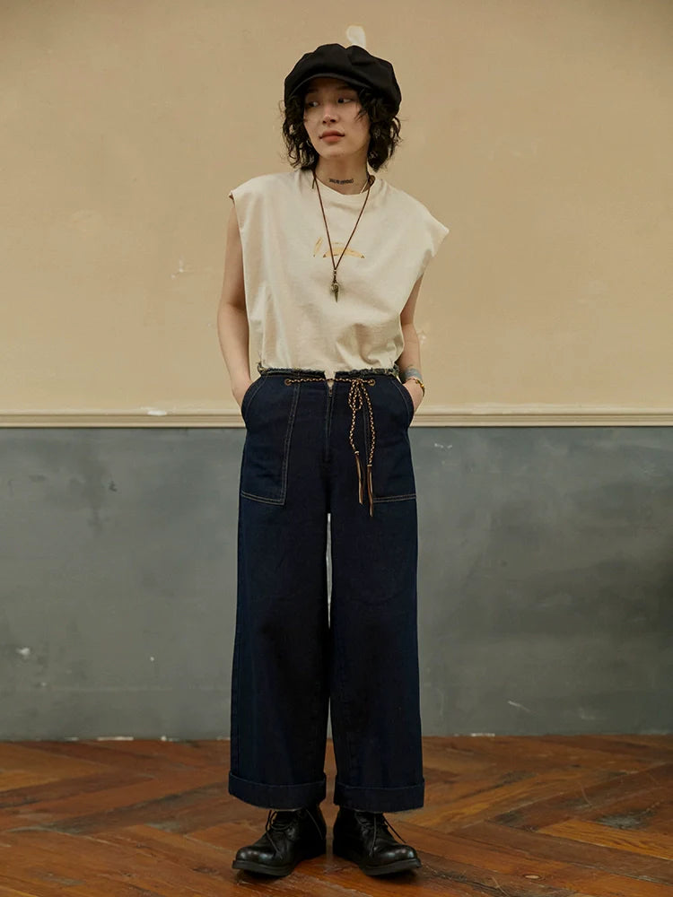 This casual and natural sleeveless tank top features a classic round neck design that maintains its shape even after extended wear. The slightly wider shoulder design perfectly conceals any shoulder fullness. Available in refreshing and cool misty purple-blue and an easy-to-match. sophisticated milk white color.