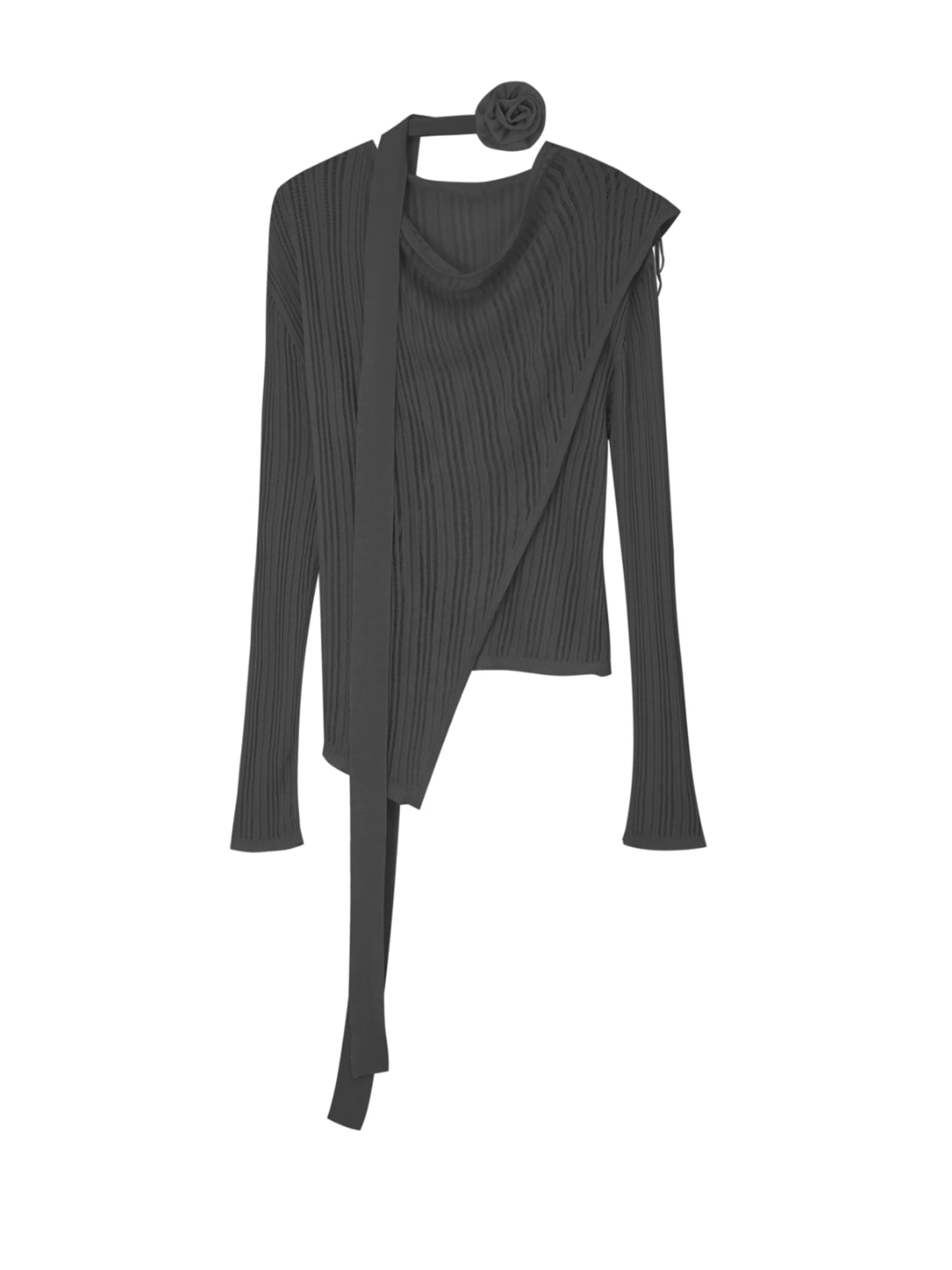 Of Akiva Asymmetrical Ribbed Wrap Sweater