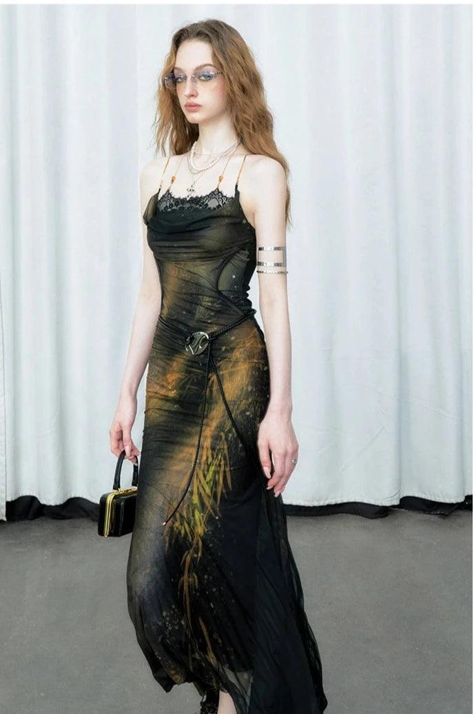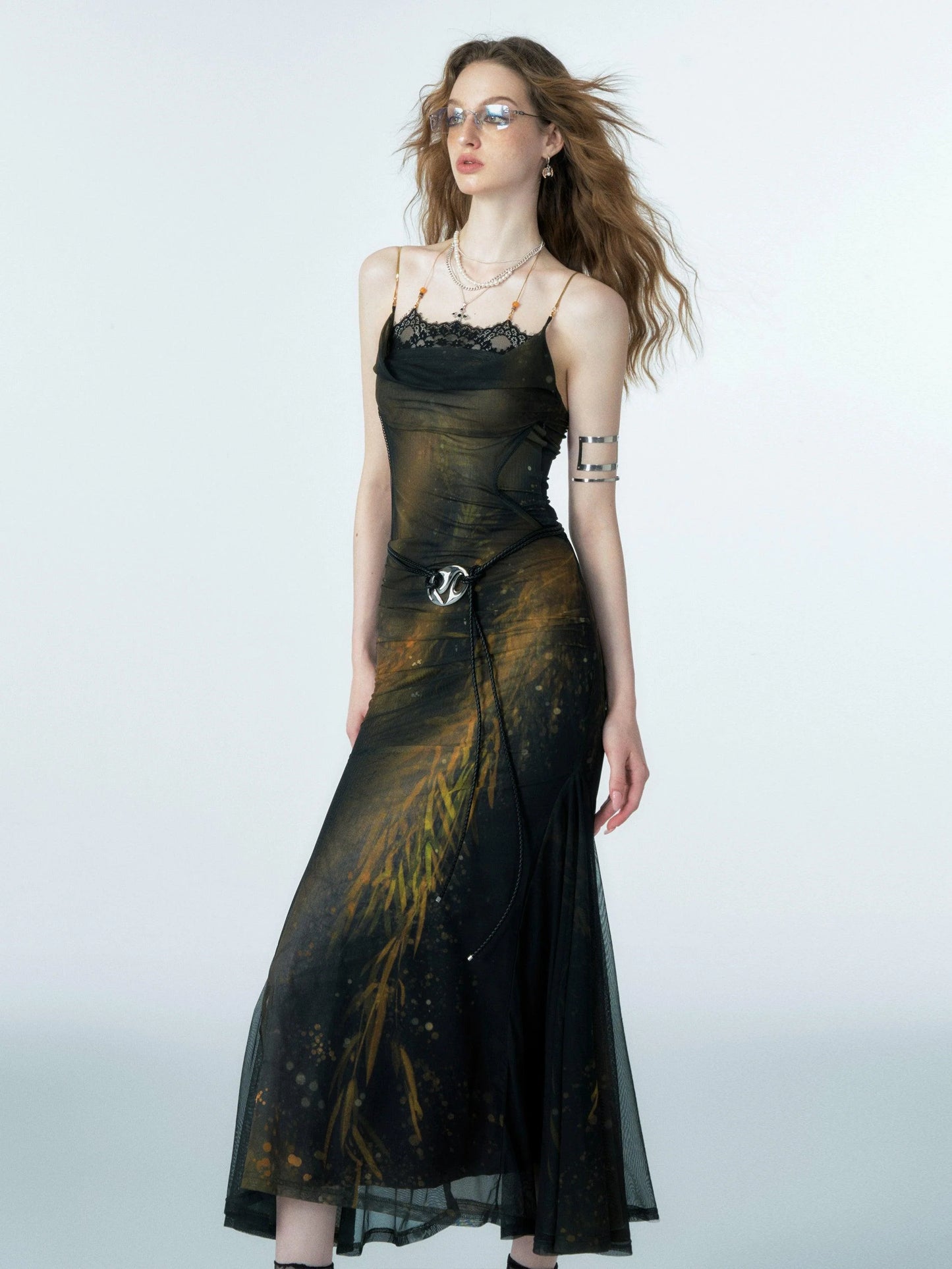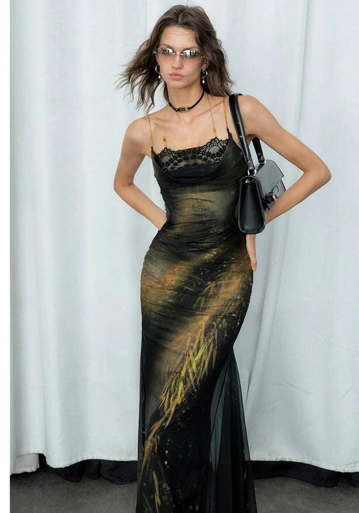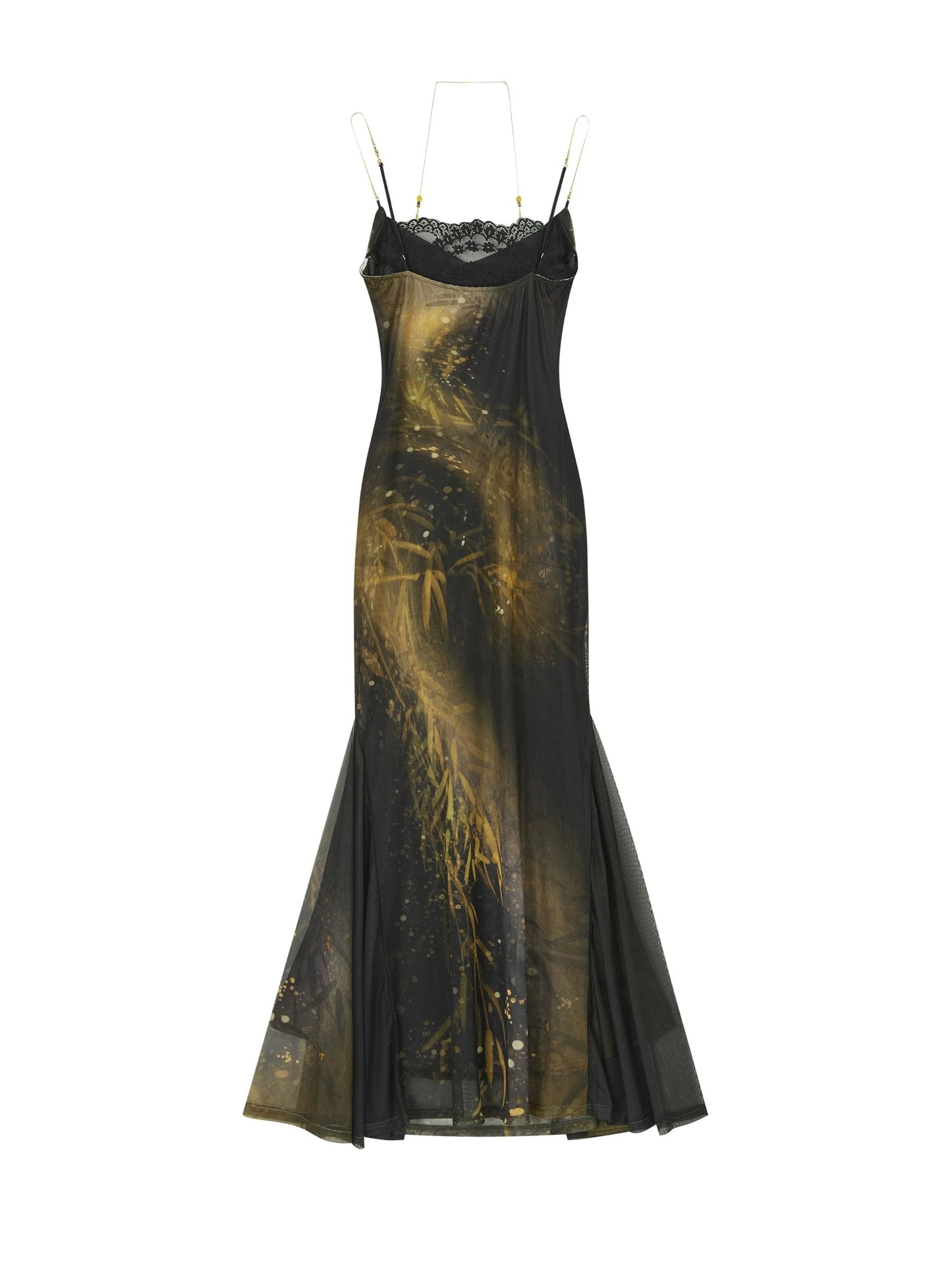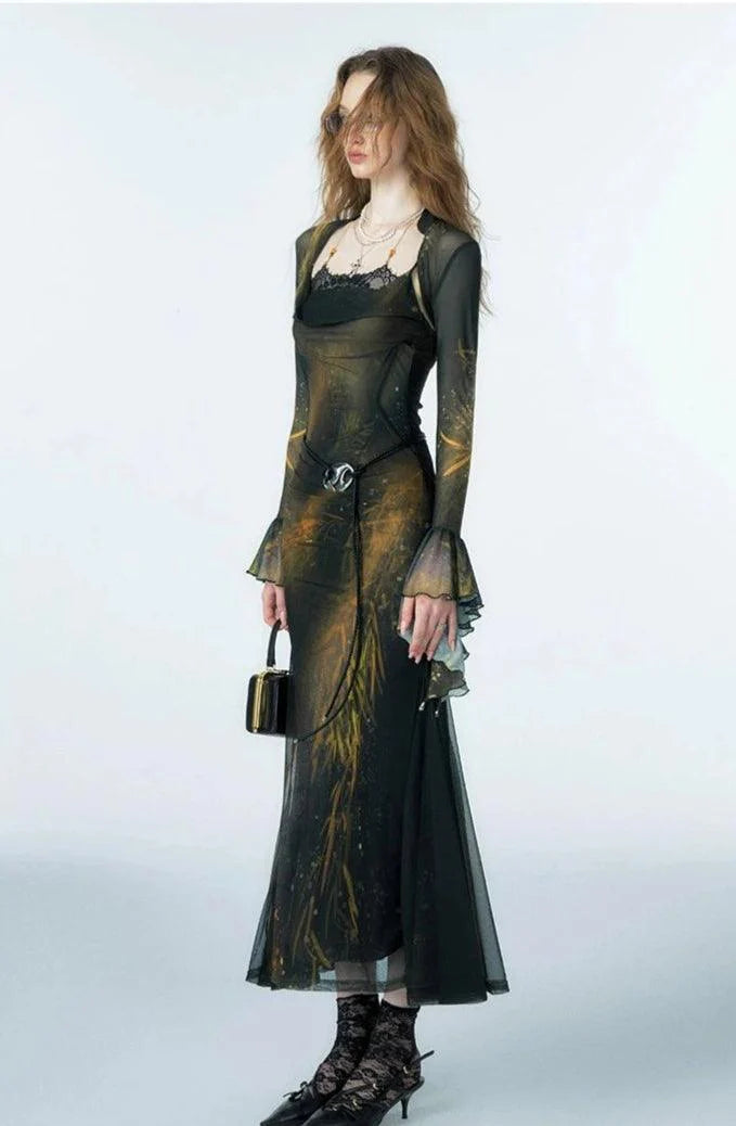 Of Akiva Celestial Print Evening Wear Set - Women'S Galactic Mermaid Gown With Matching Bell Sleeve Bolero