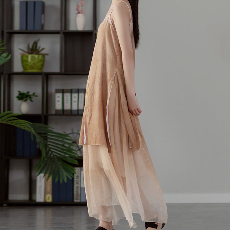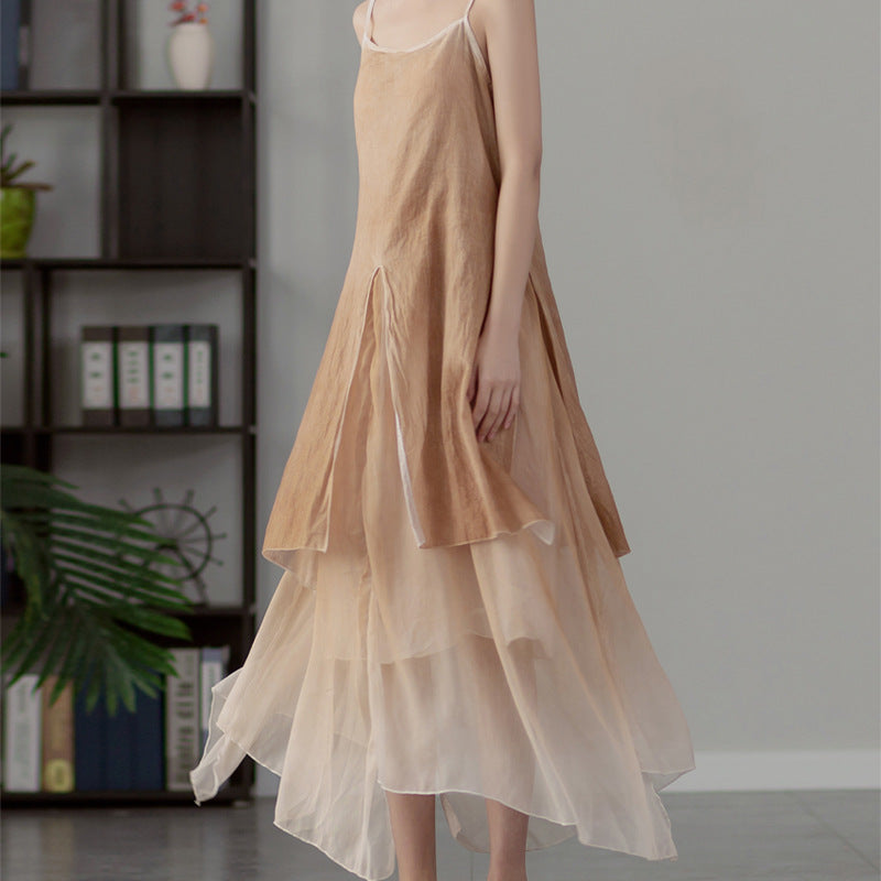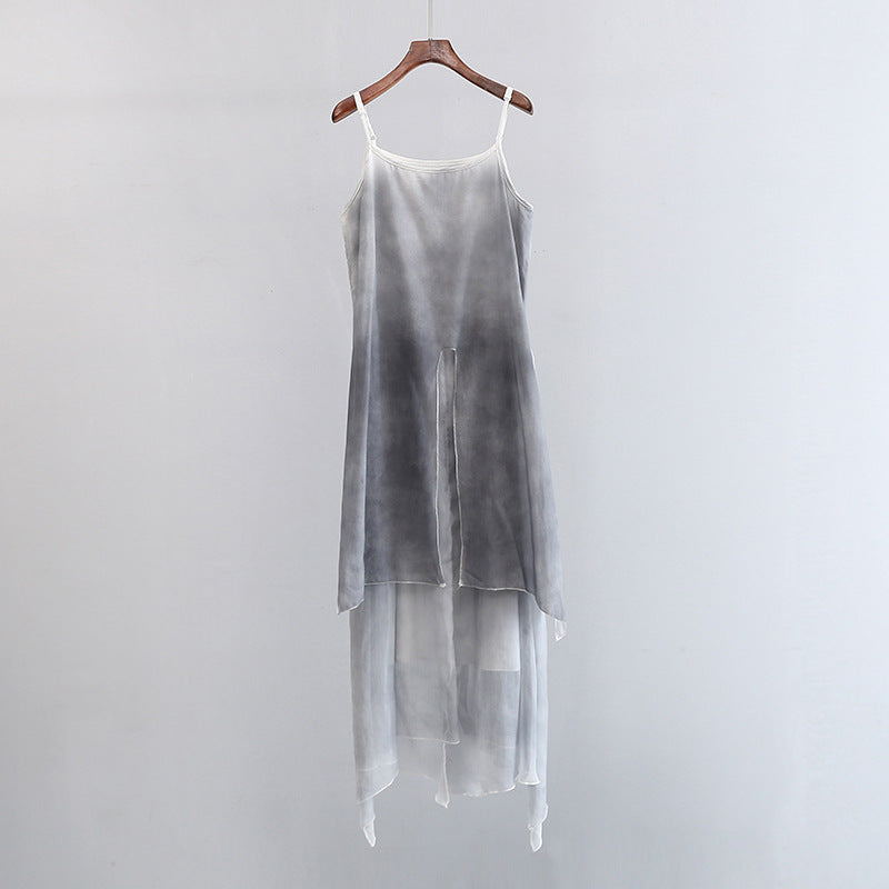 Of Akiva Ethereal Watercolor Silk Maxi Dress - Women'S Spaghetti Strap Body-Con Evening Gown