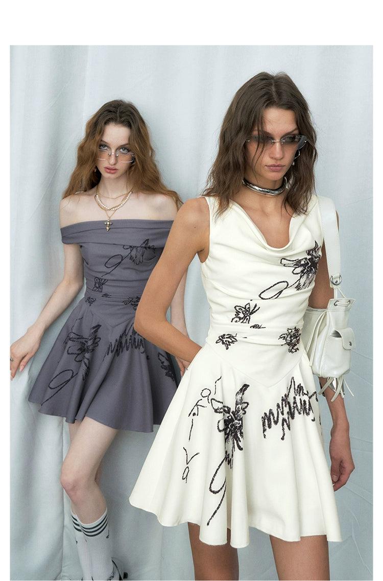 Features a flowing neckline design with a body-hugging. flared silhouette that accentuates the waist and enhances proportions. Versatile wear: can be worn with a flowing neckline or as an off-shoulder style.