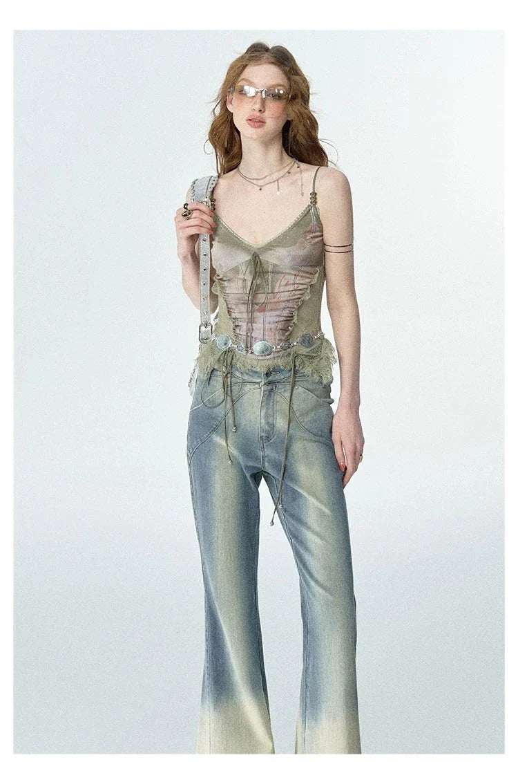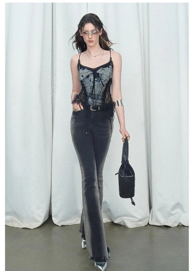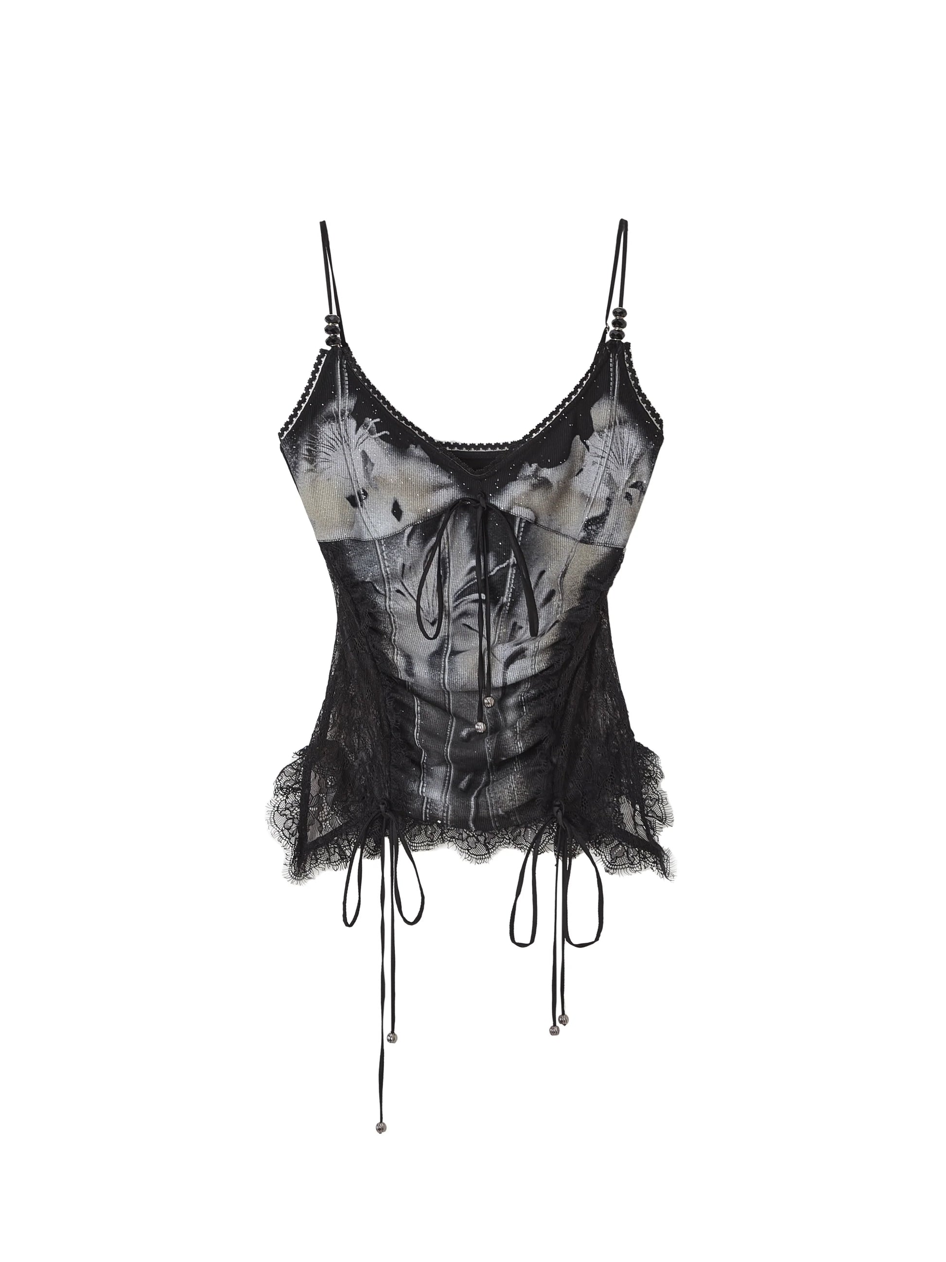 This garment features lace inserts along the princess seams on both the front and back panels. This design element creates a visual contrast that enhances the body's silhouette and adds a rich. layered look to the piece.The strategic placement of the lace not only flatters the figure but also contributes to a more sophisticated and multidimensional appearance.