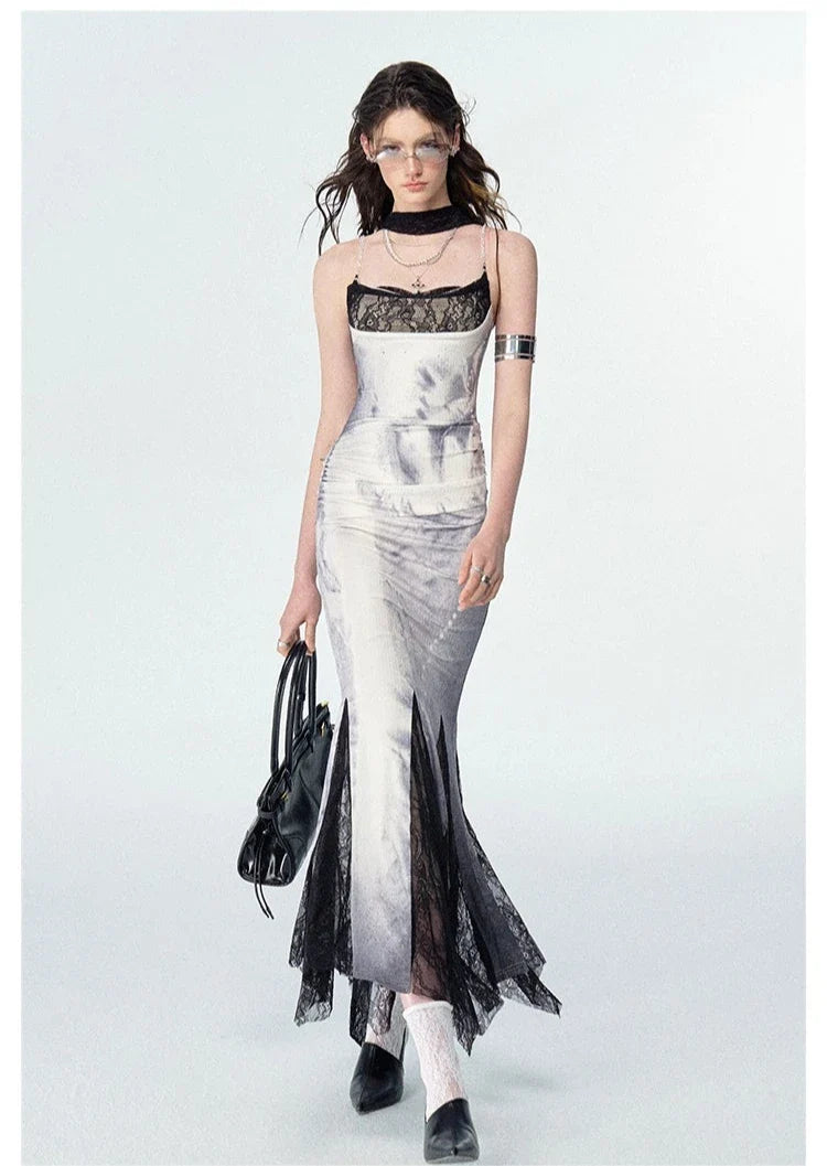This dress features a chic fishtail skirt design that beautifully accentuates the leg contours. The knee area is generously cut. allowing for easy movement without any sense of restriction. making it both stylish and comfortable.This thoughtful detail helps to flatter the tummy area while simultaneously emphasizing the waistline. creating a sleek and flattering silhouette.