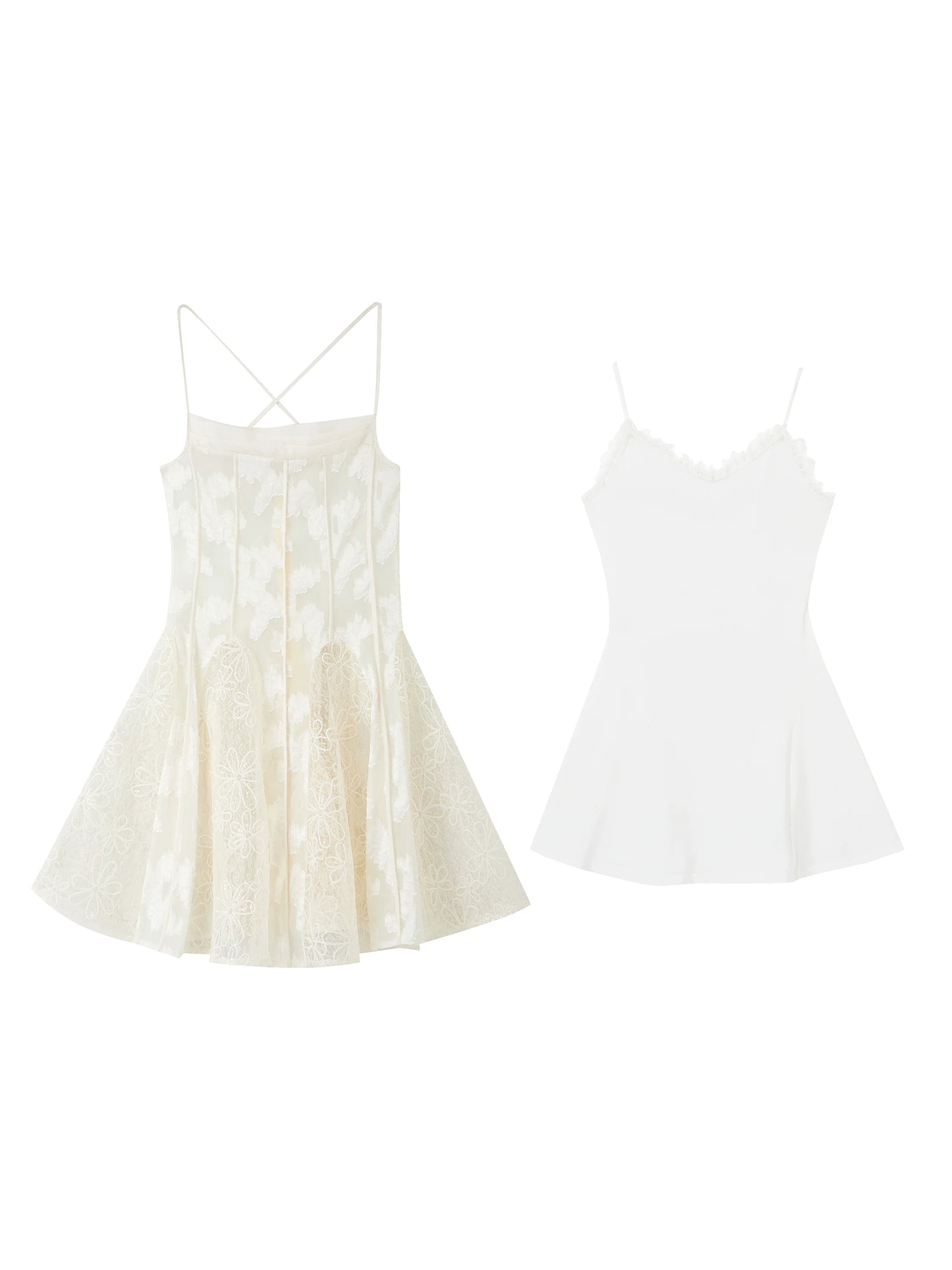 This two-piece dress features an asymmetrical neckline design. showcasing different collar shapes that elegantly reveal the shoulders. neck. and collarbone. This thoughtful design ensures a flattering amount of skin exposure while effectively concealing any side bust areas.