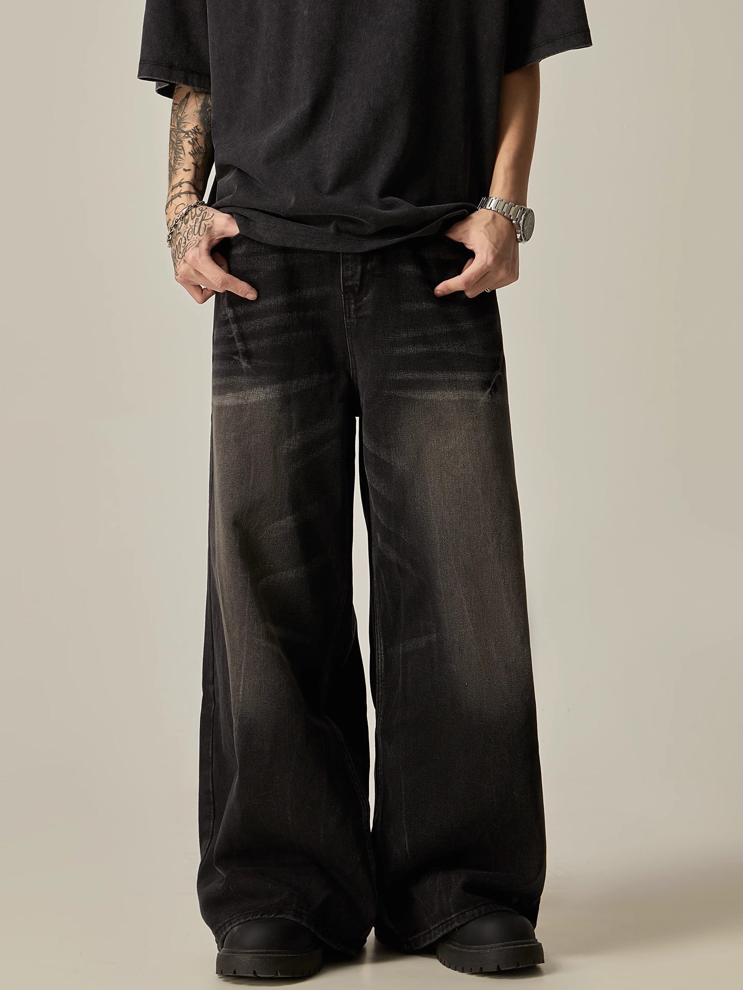 Featuring an ombre fade design and ultra-wide leg cut. these vintage denim jeans are perfect for adding a touch of unique style to any outfit. With their retro charm and comfortable fit. these jeans are sure to become a staple in your wardrobe. Elevate your fashion game with these one-of-a-kind denim jeans.