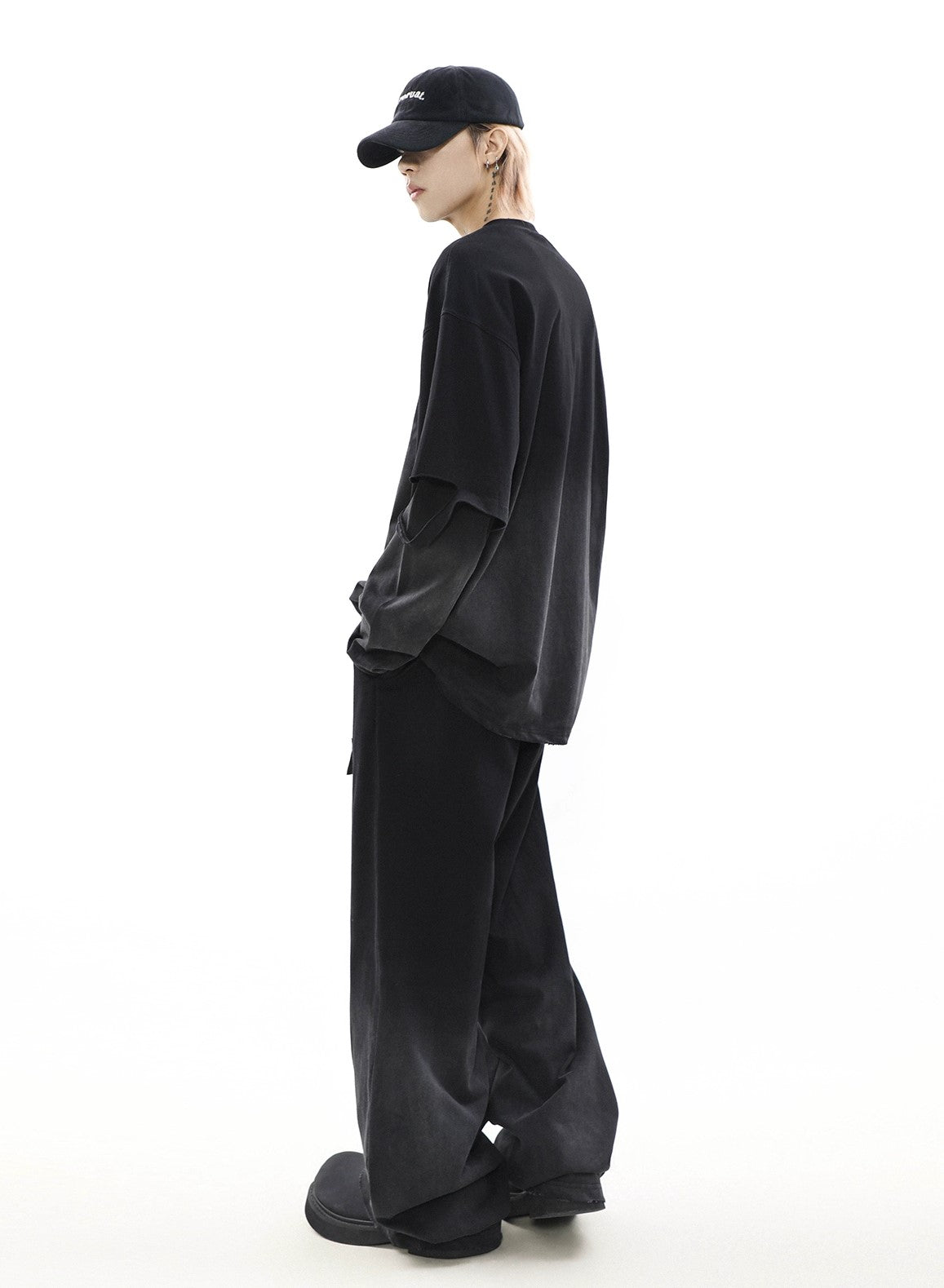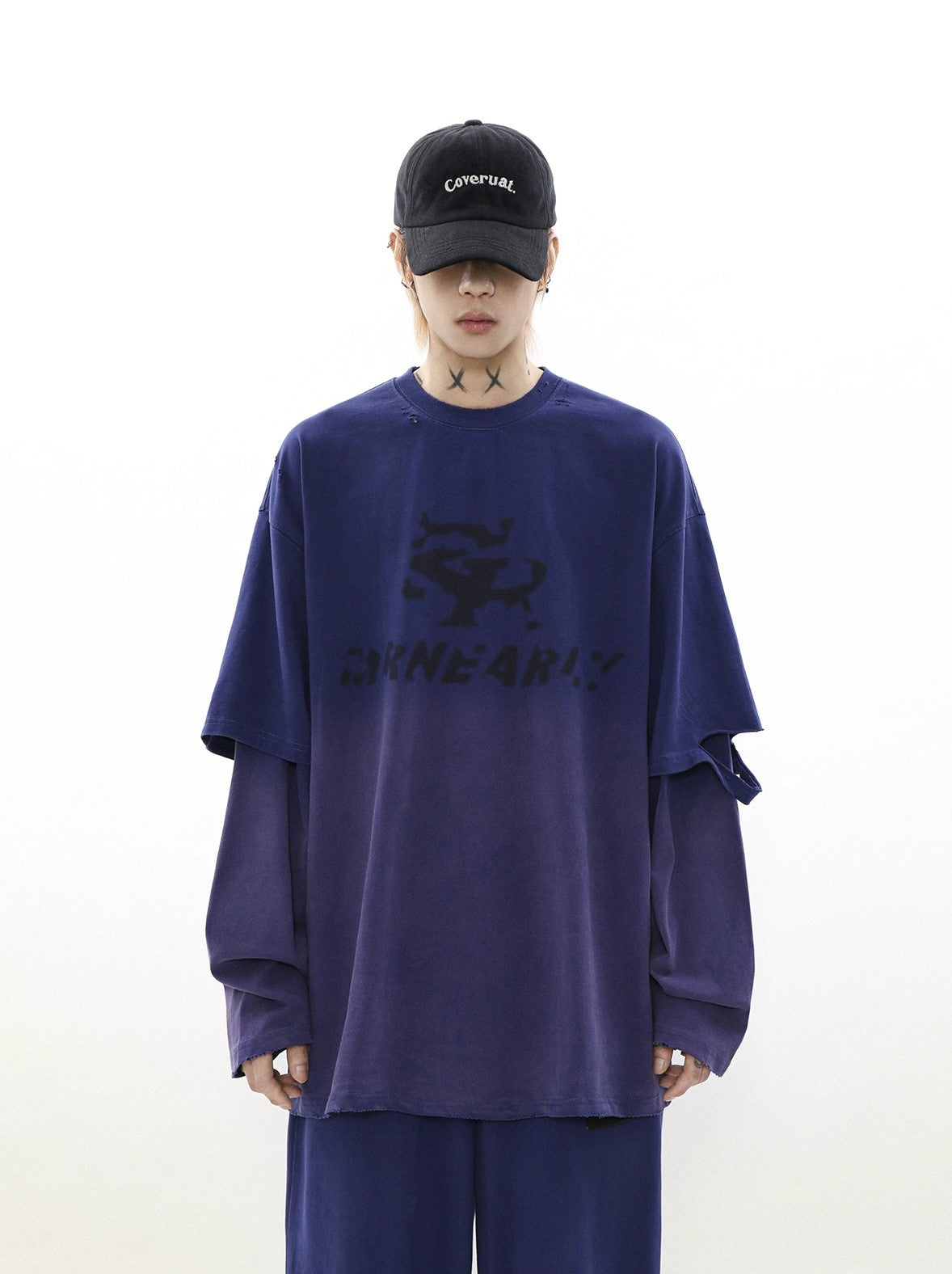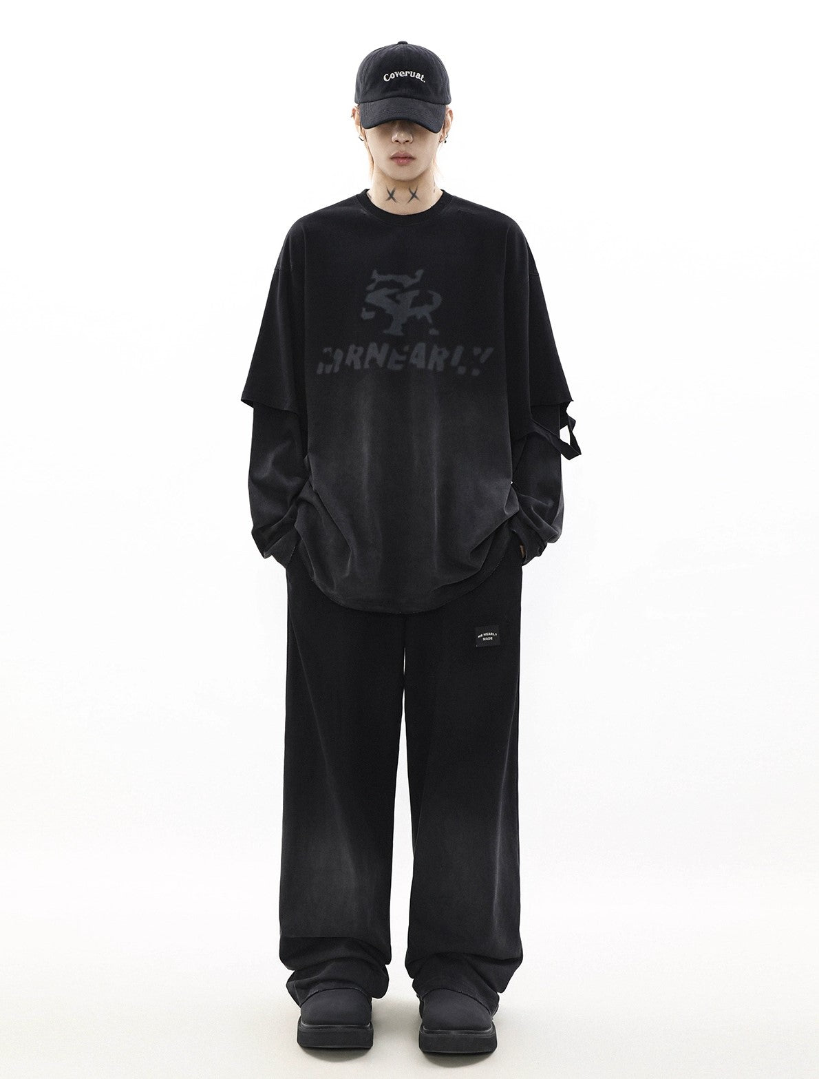 Oversize Damage Long-Sleeve T-Shirt & Wide-Leg Sweatpants Set