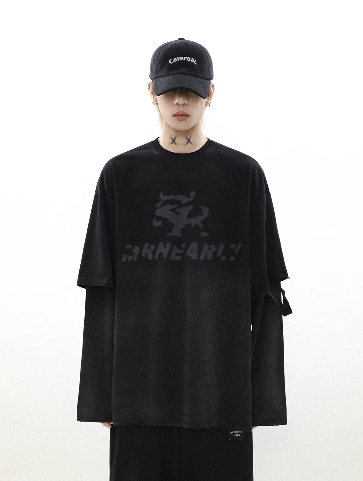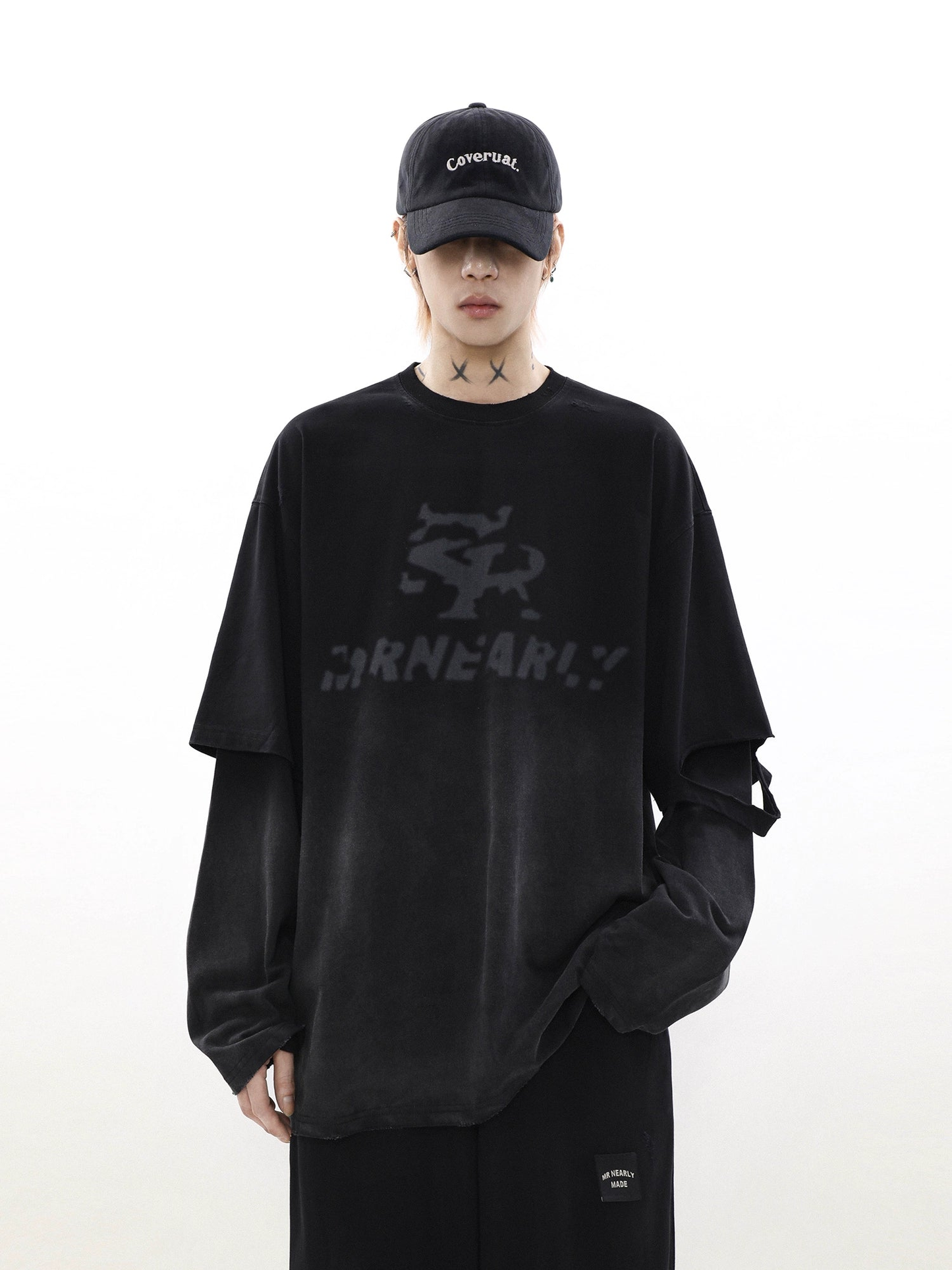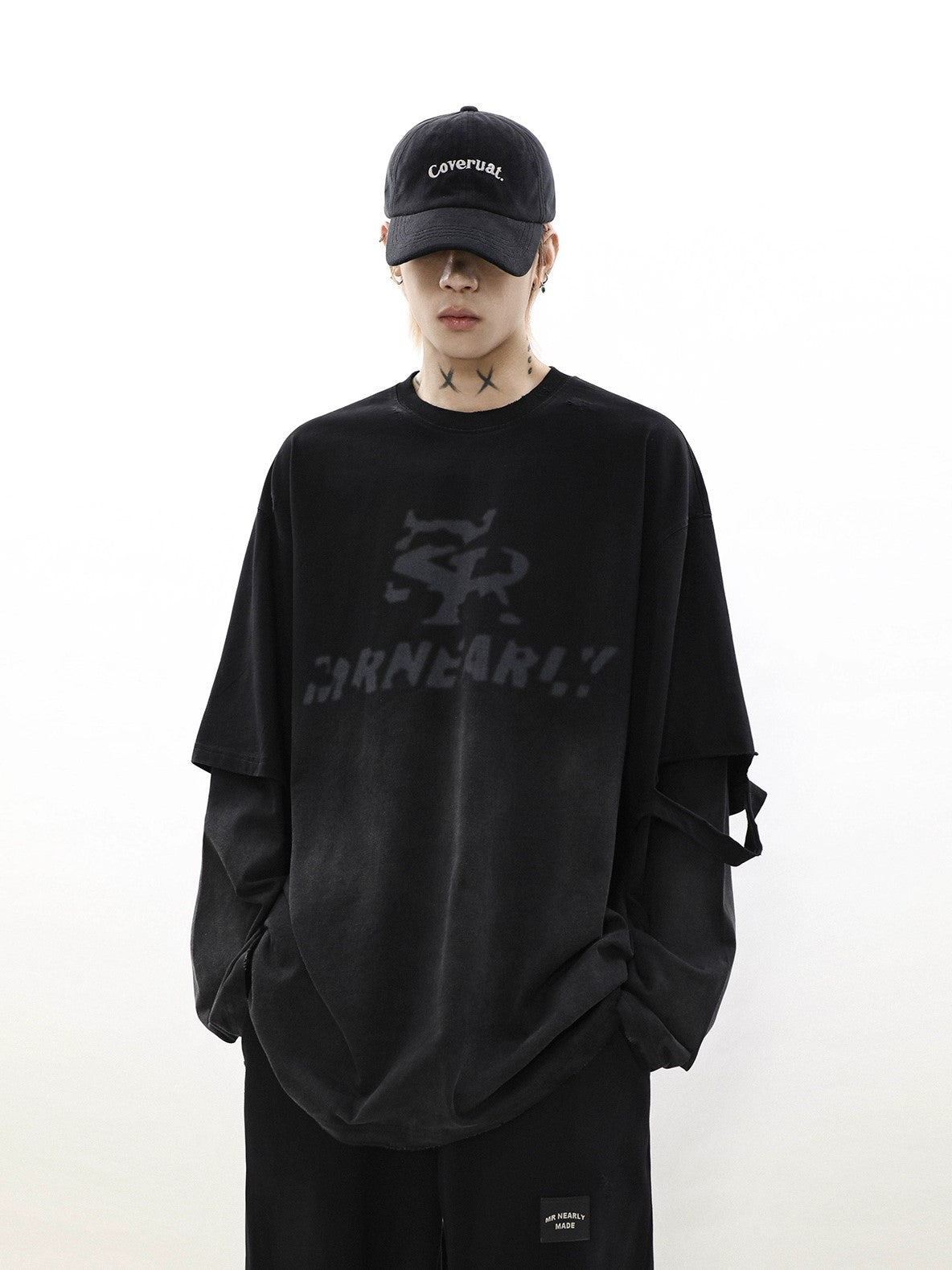 Oversize Damage Long-Sleeve T-Shirt & Wide-Leg Sweatpants Set