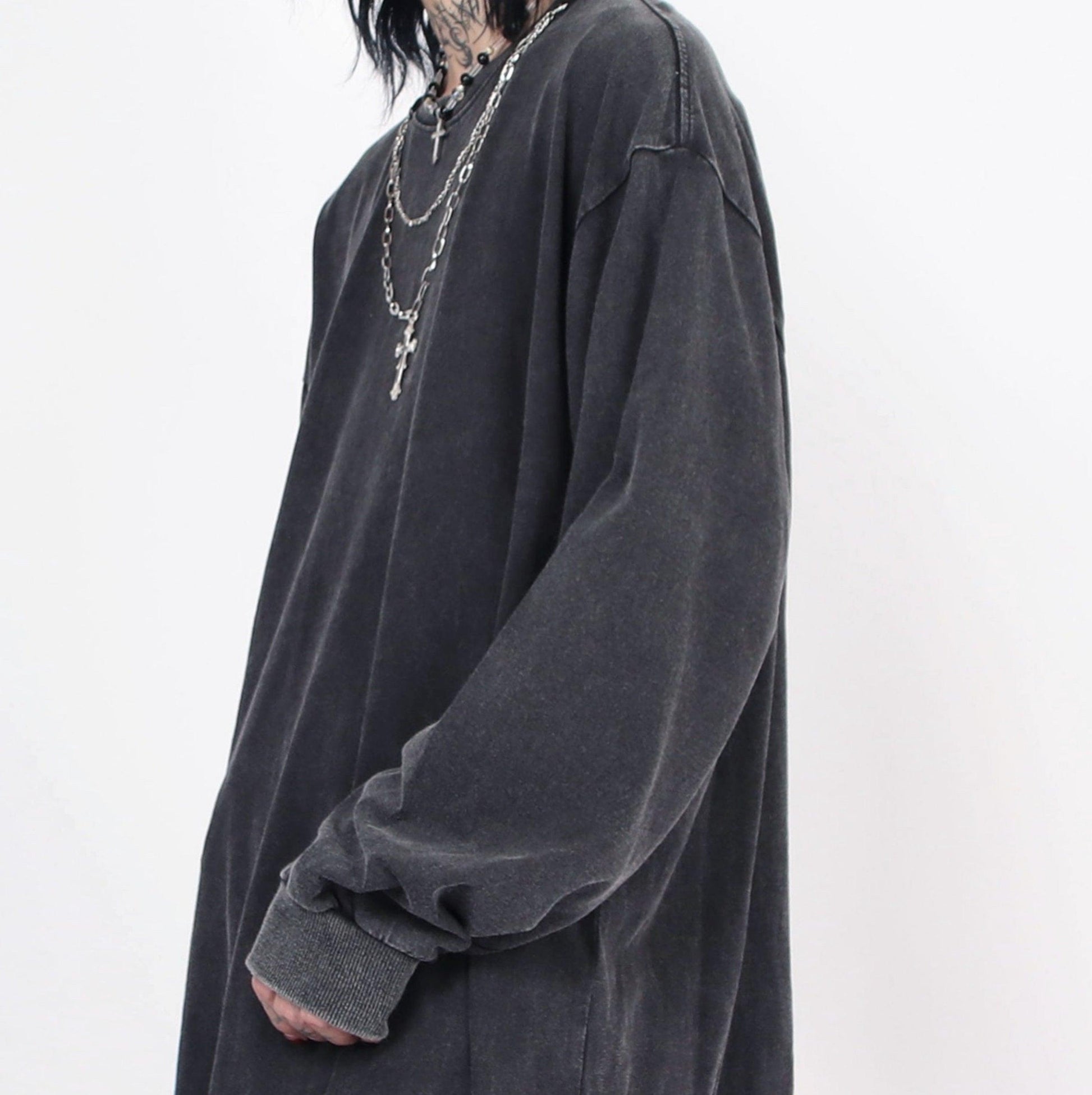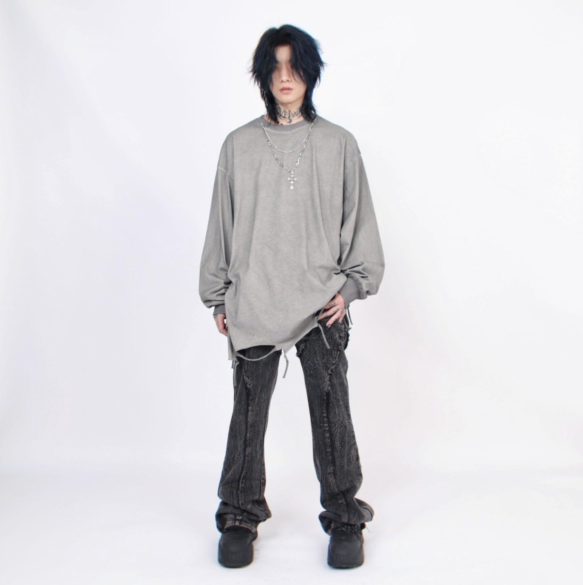 This distressed white long-sleeve tee comes with a stylish chain cross necklace. adding an edgy touch to your outfit. Made with high-quality materials. it offers both comfort and durability. Elevate your wardrobe with this unique piece that combines fashion and functionality.