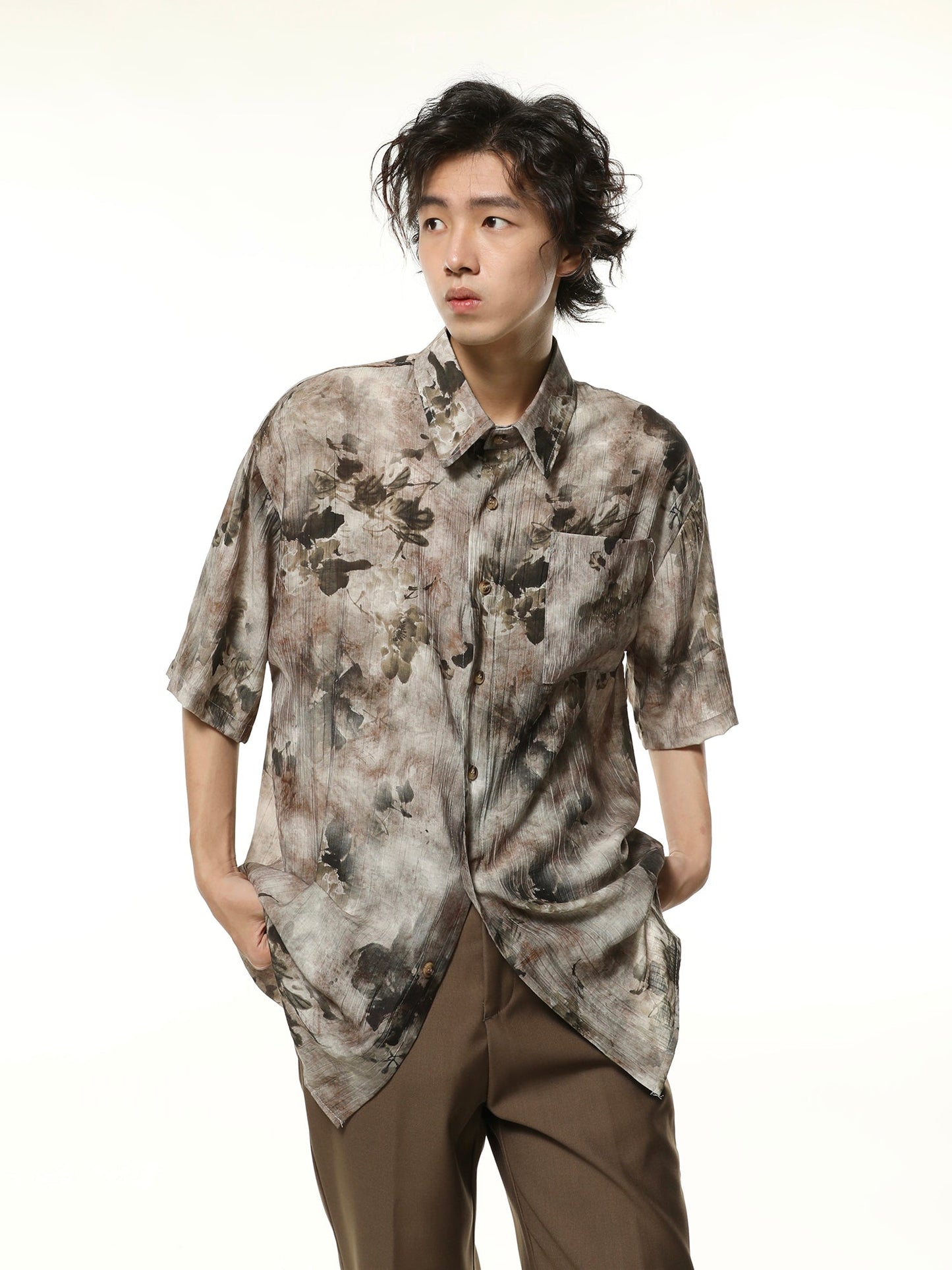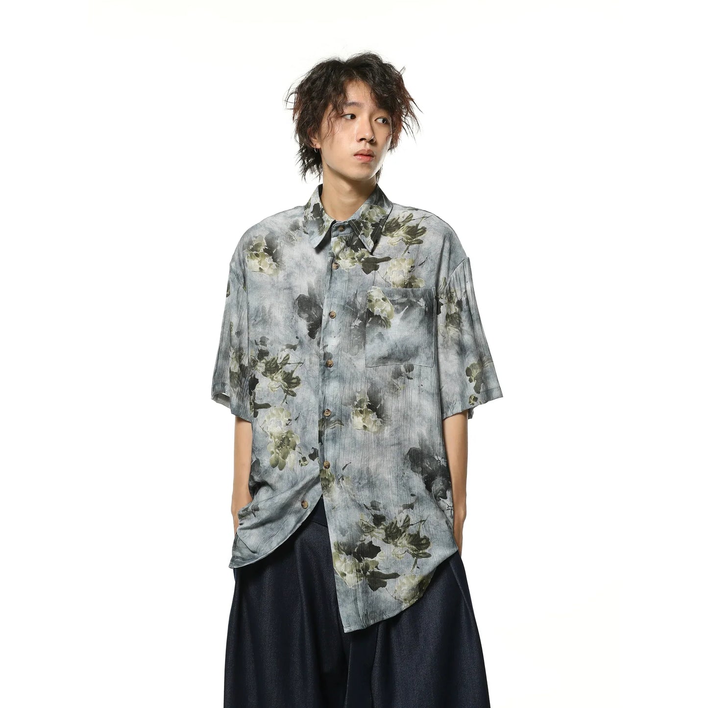 Introducing our Oversized Floral Print Short-Sleeve Button-Up Shirt. perfect for adding a touch of sophistication to any outfit. Crafted with a bold floral print. this shirt exudes style and elegance. Its short-sleeve design offers maximum comfort and breathability. making it ideal for any occasion. Elevate your wardrobe with this must-have piece.