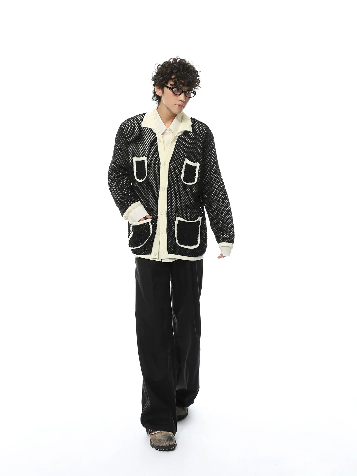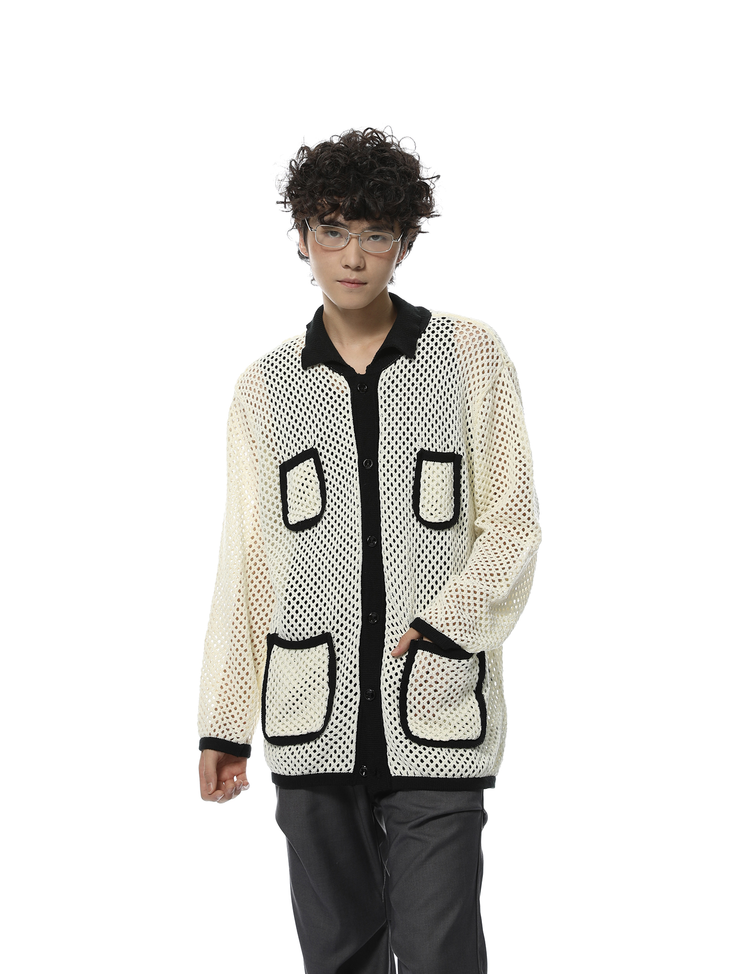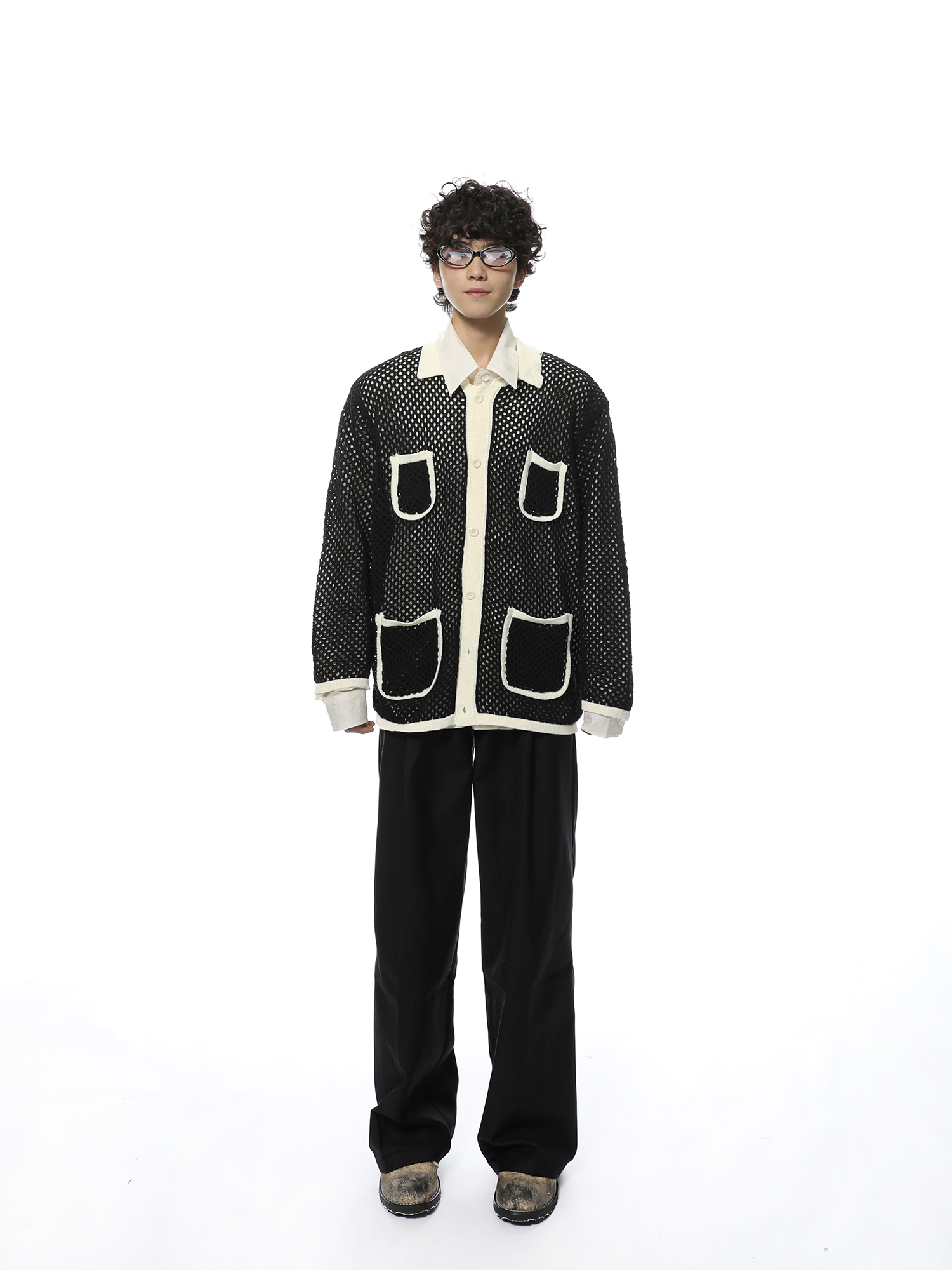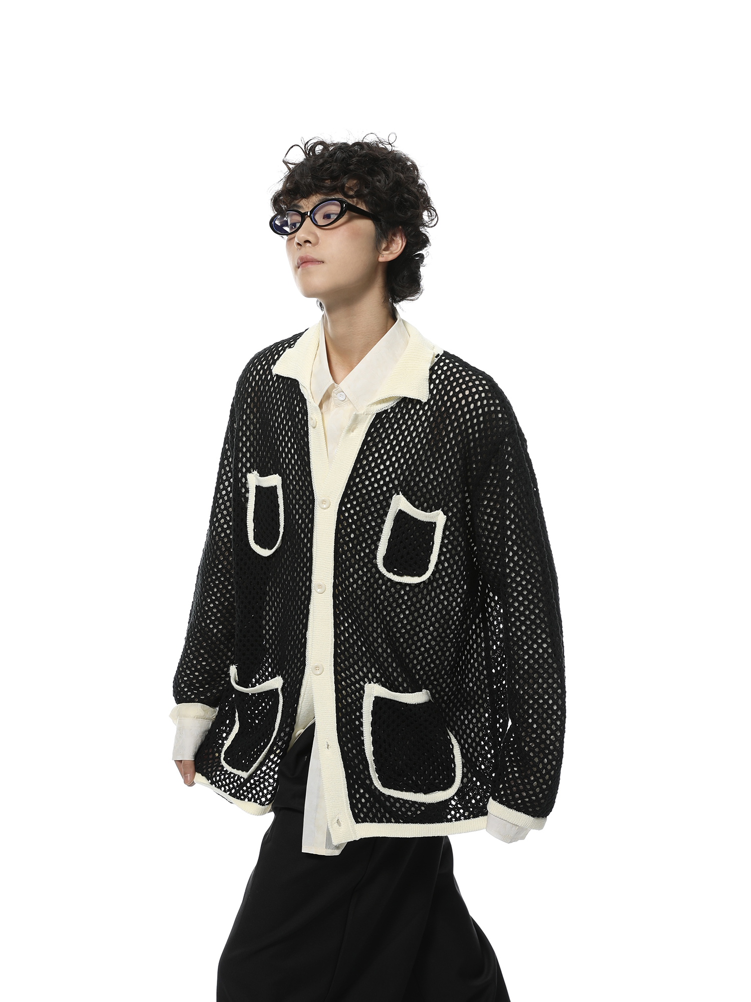 Elevate your style with our Oversized Mesh Cardigan. Made from high-quality materials. this cardigan features a unique oversized fit and contrast pockets. adding a modern touch to any outfit. The breathable mesh fabric ensures comfort and ventilation. making it perfect for any season. Stay chic and cozy with this must-have piece.