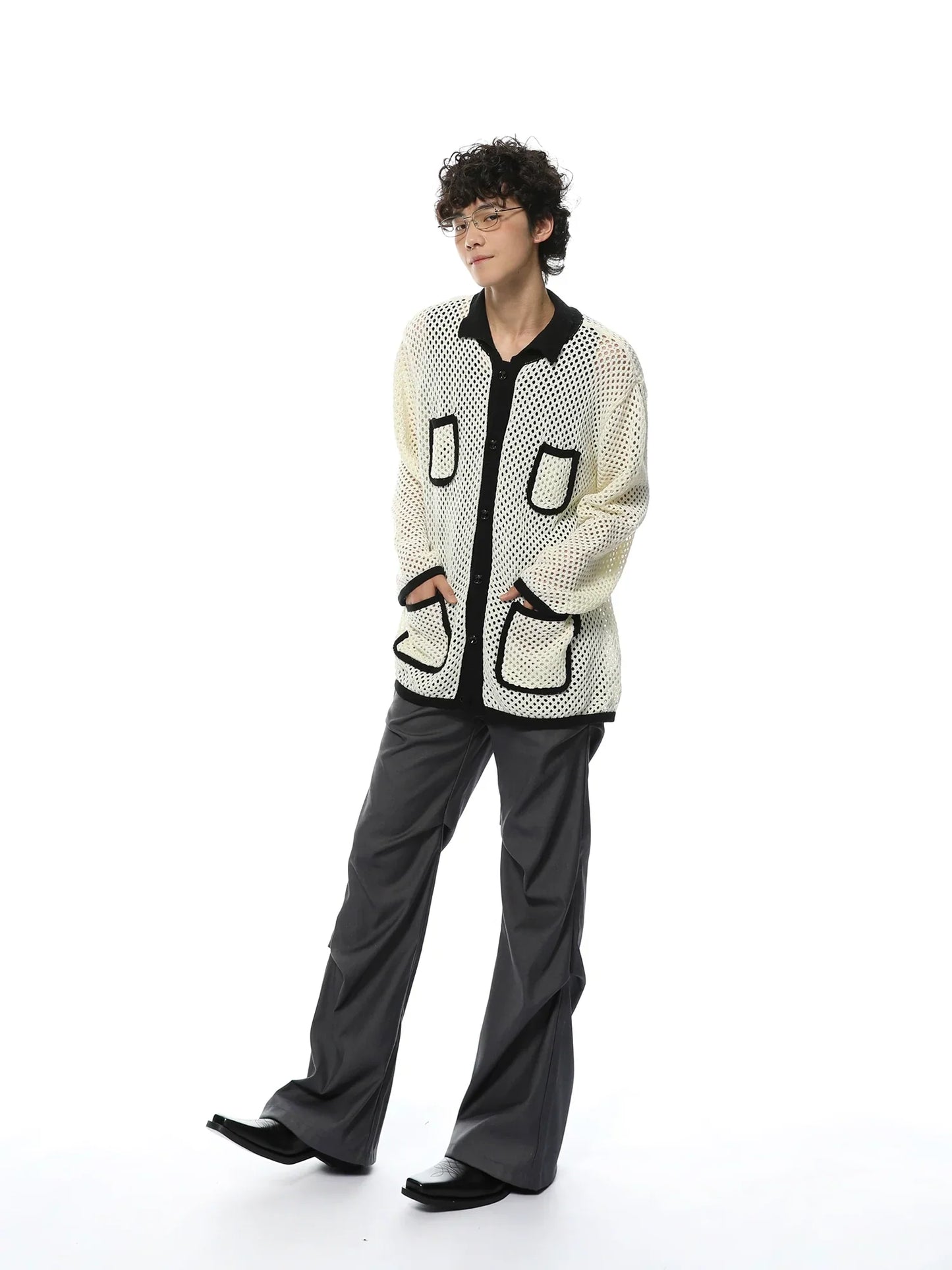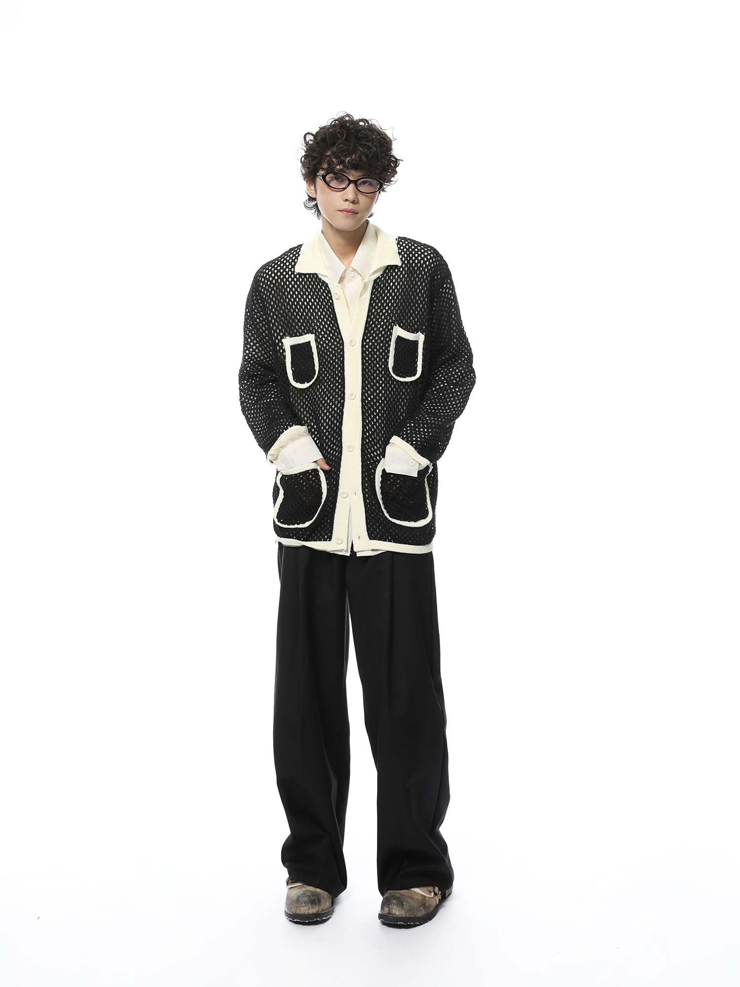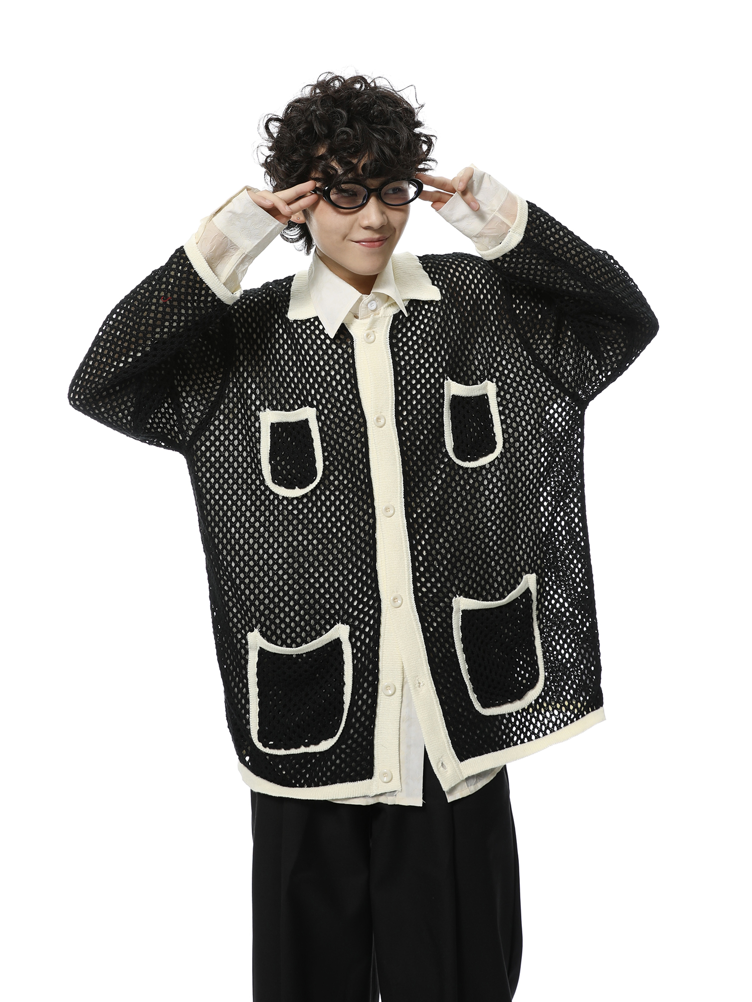 Elevate your style with our Oversized Mesh Cardigan. Made from high-quality materials. this cardigan features a unique oversized fit and contrast pockets. adding a modern touch to any outfit. The breathable mesh fabric ensures comfort and ventilation. making it perfect for any season. Stay chic and cozy with this must-have piece.