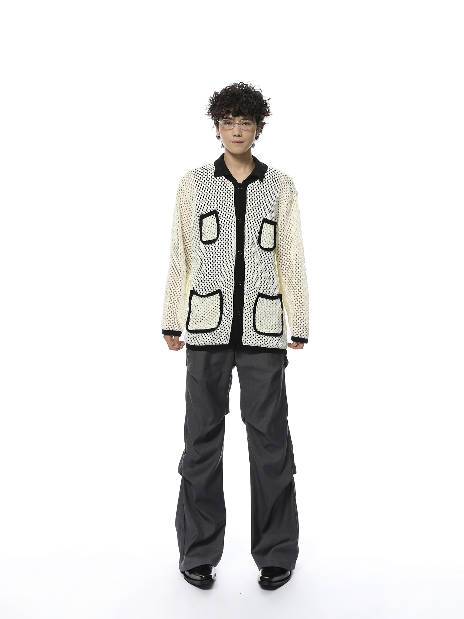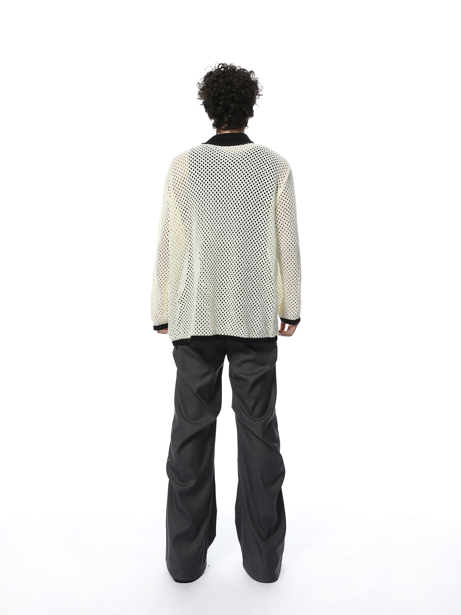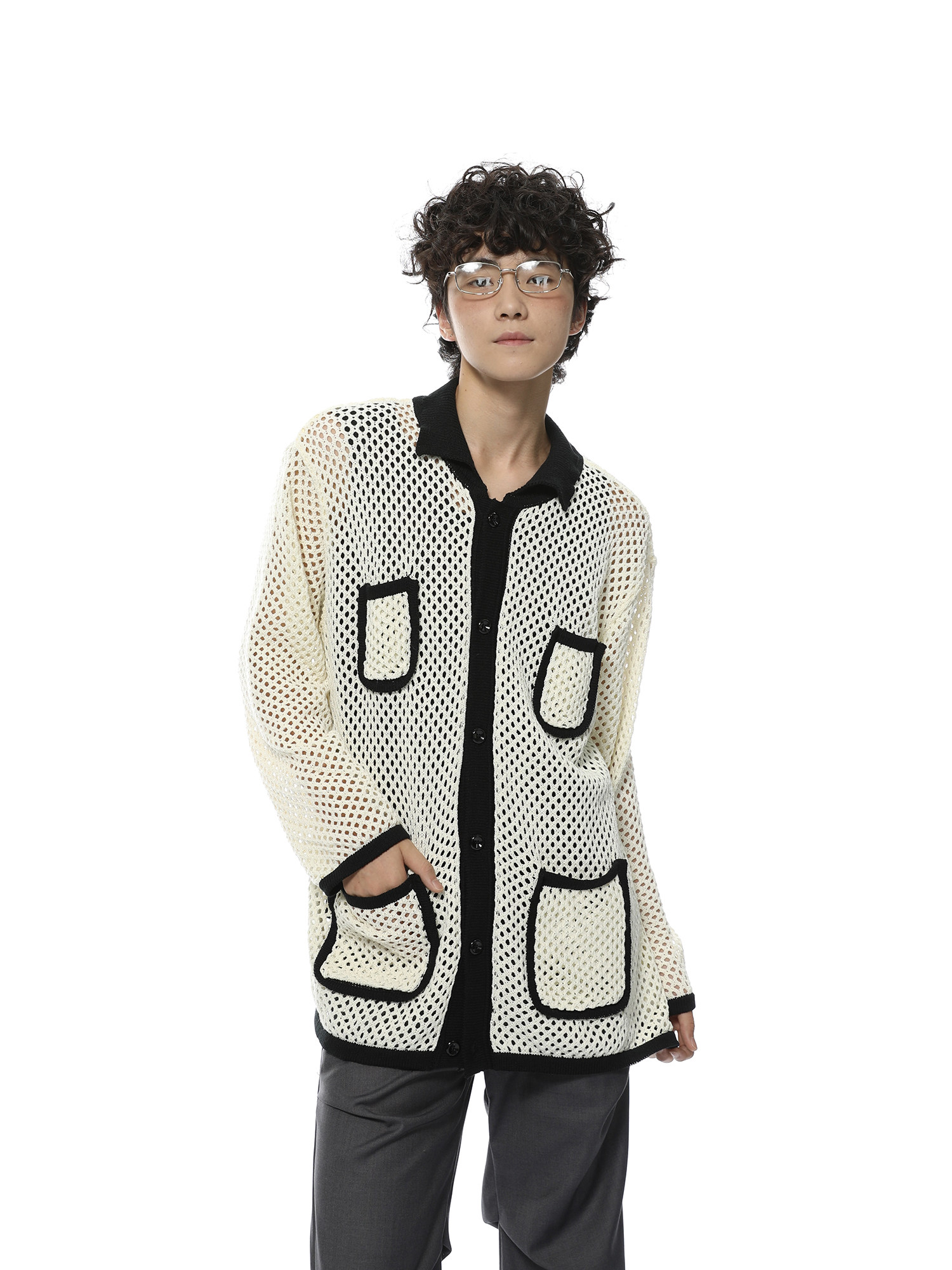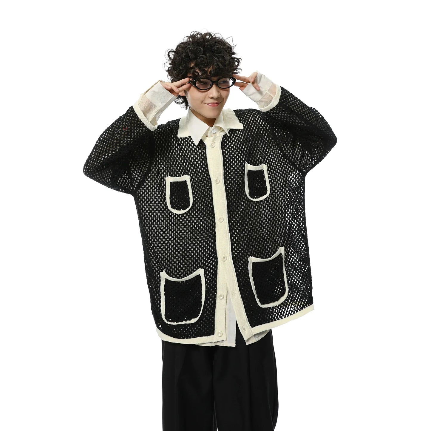 Elevate your style with our Oversized Mesh Cardigan. Made from high-quality materials. this cardigan features a unique oversized fit and contrast pockets. adding a modern touch to any outfit. The breathable mesh fabric ensures comfort and ventilation. making it perfect for any season. Stay chic and cozy with this must-have piece.