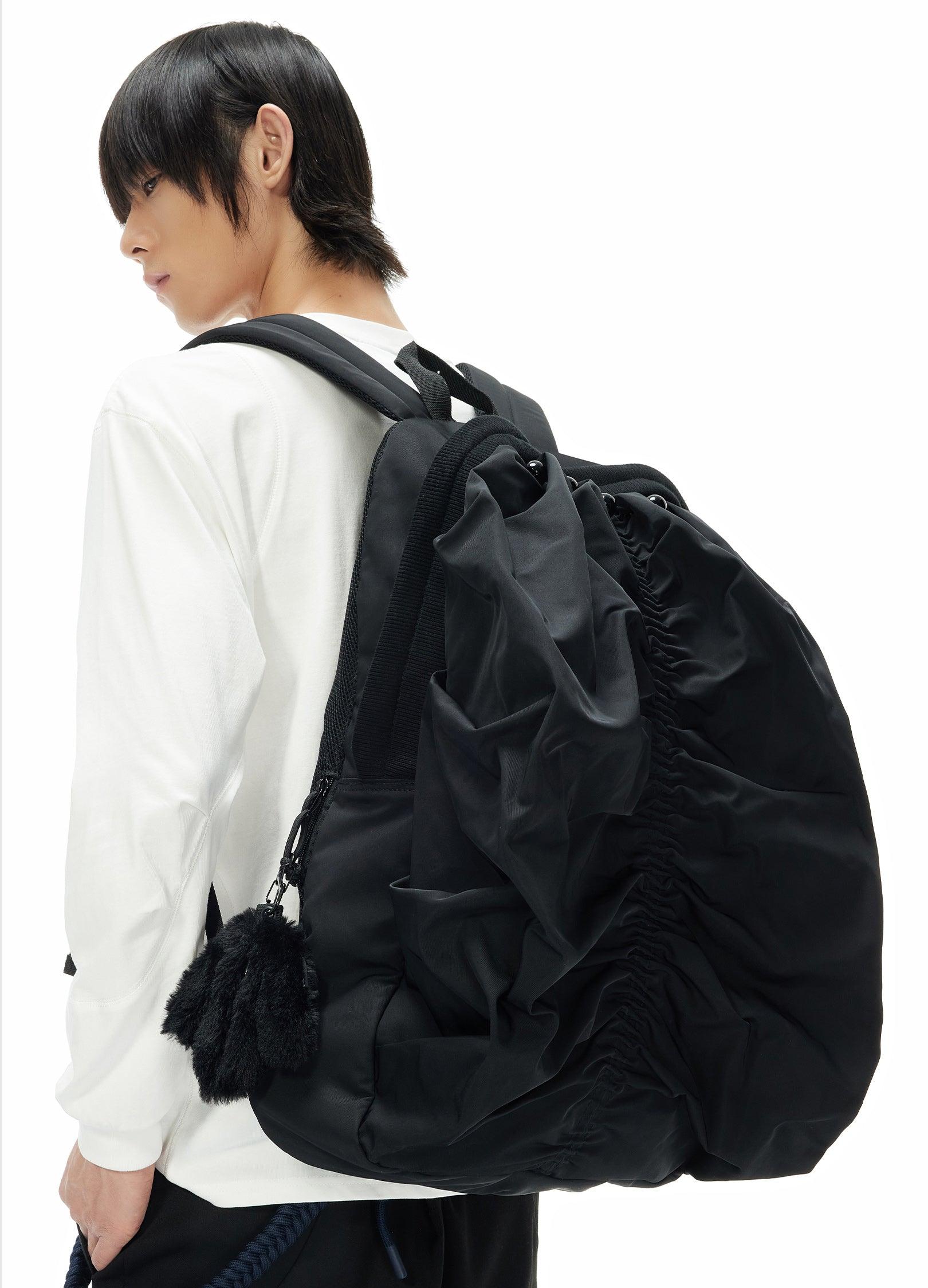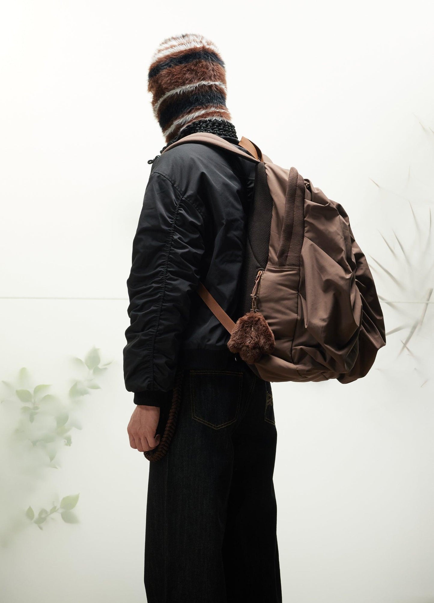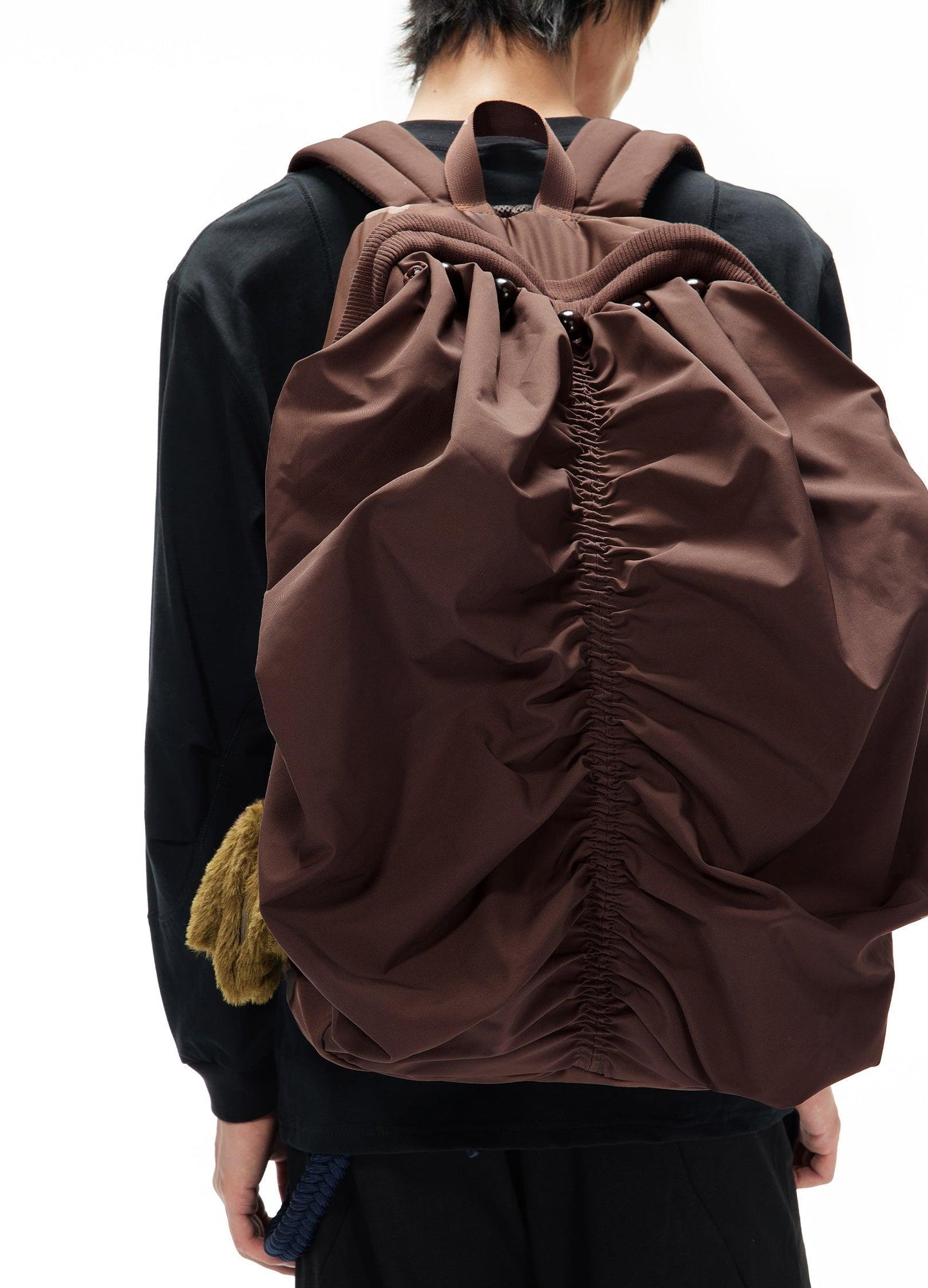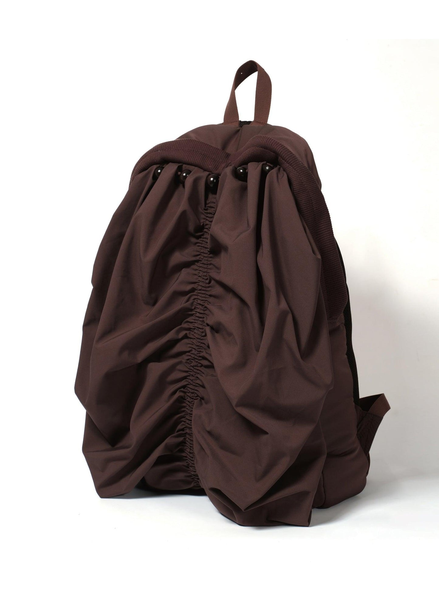Oversized Pleated Backpack with Beaded Accent - Elevate your style with this fashionable backpack featuring black beads on top and a pleated. drapey fabric front. Designed for functionality. it includes a carry handle. thick adjustable shoulder straps. and an additional back compartment at the interior. The two-way zipper closure ensures security. and the IN TERRIS logo adds a touch of sophistication. Available in Black and Brown. this backpack is made from durable polyester and polyester fiber.