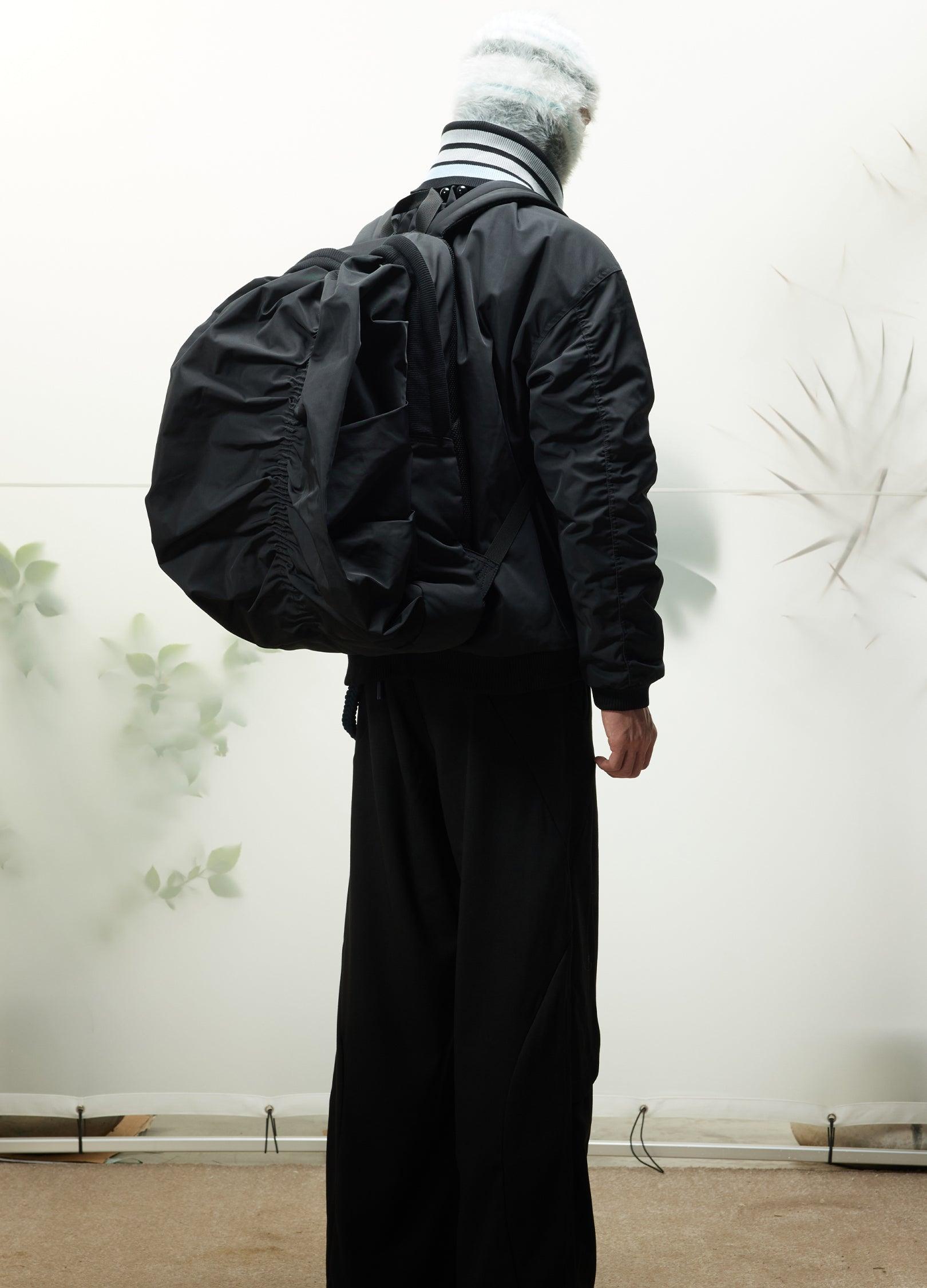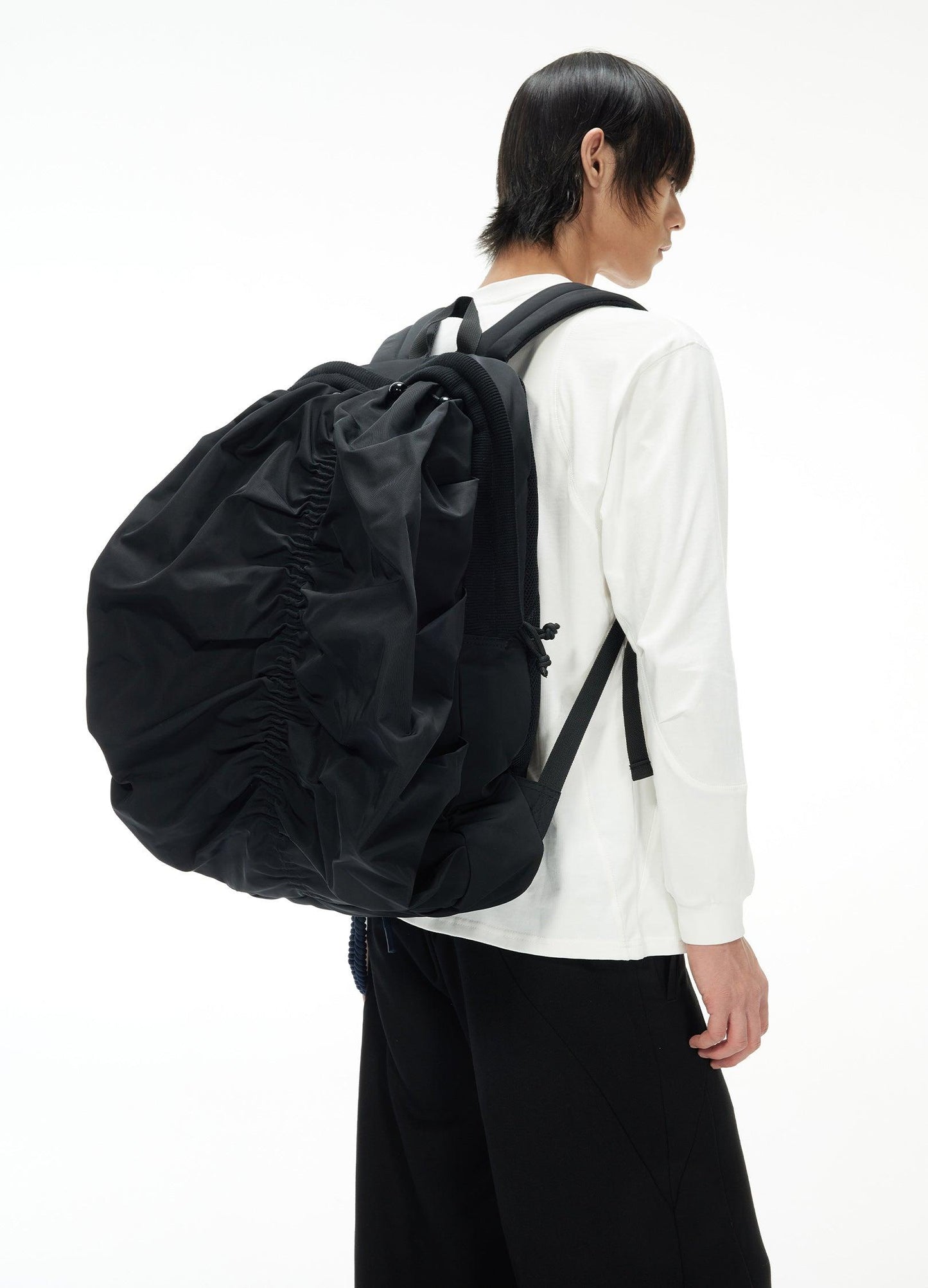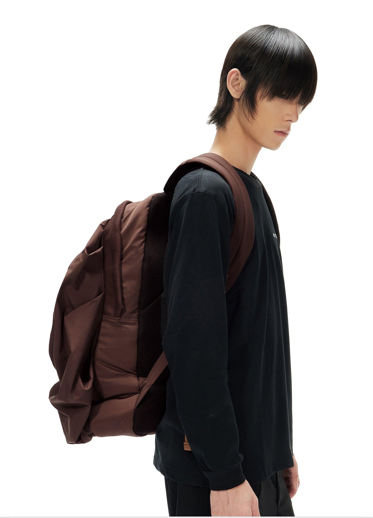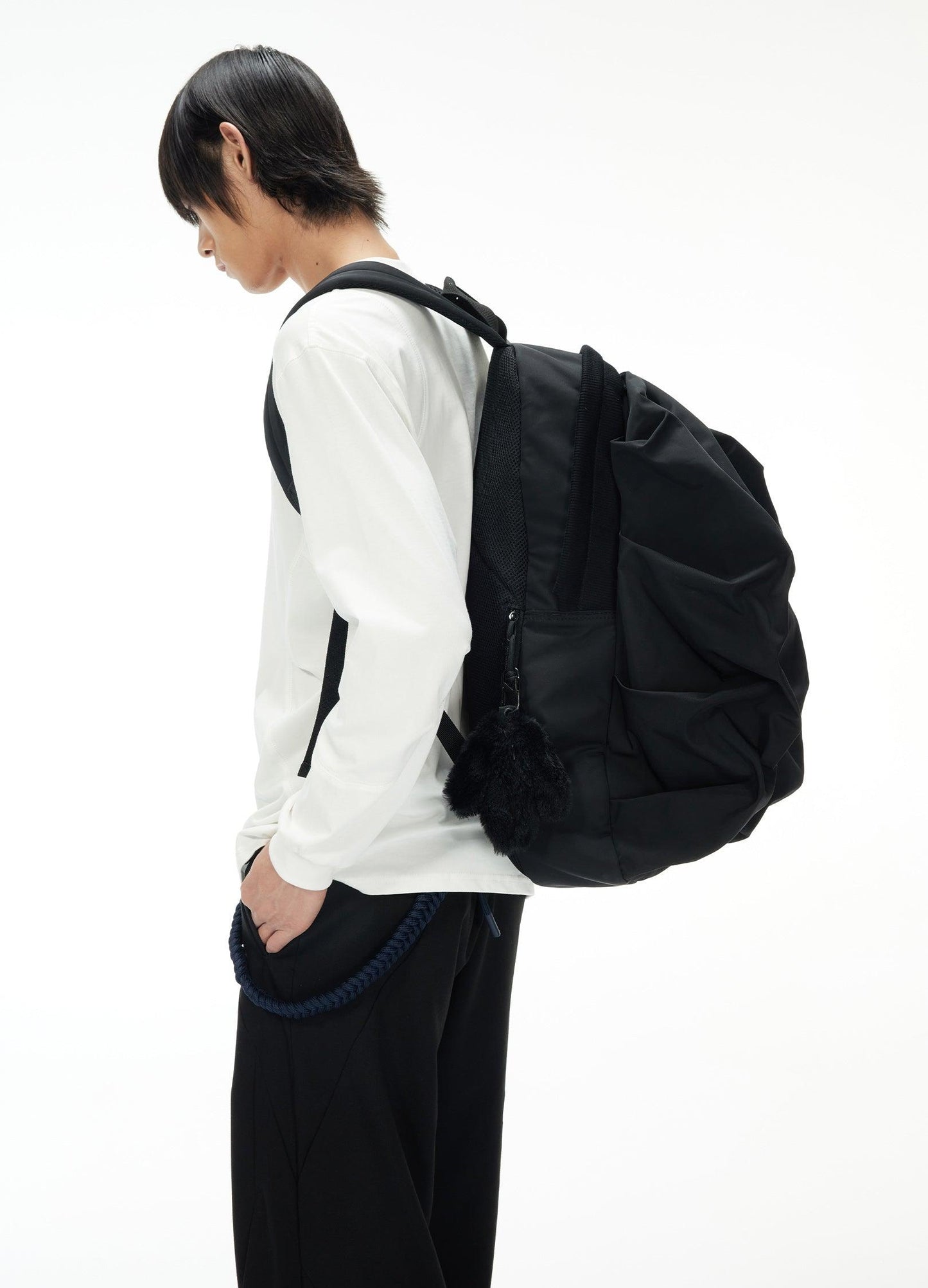 Oversized Pleated Backpack with Beaded Accent - Elevate your style with this fashionable backpack featuring black beads on top and a pleated. drapey fabric front. Designed for functionality. it includes a carry handle. thick adjustable shoulder straps. and an additional back compartment at the interior. The two-way zipper closure ensures security. and the IN TERRIS logo adds a touch of sophistication. Available in Black and Brown. this backpack is made from durable polyester and polyester fiber.