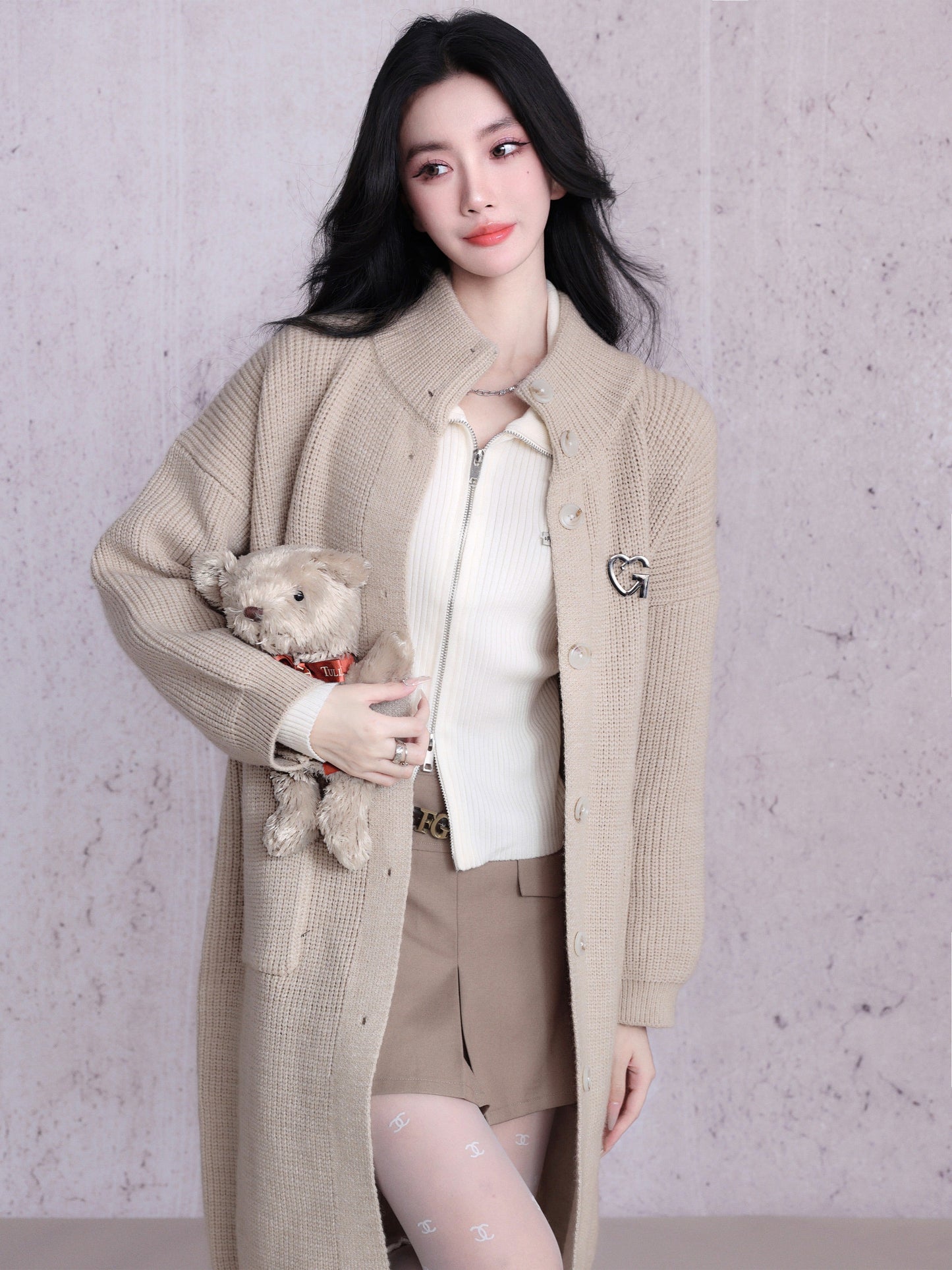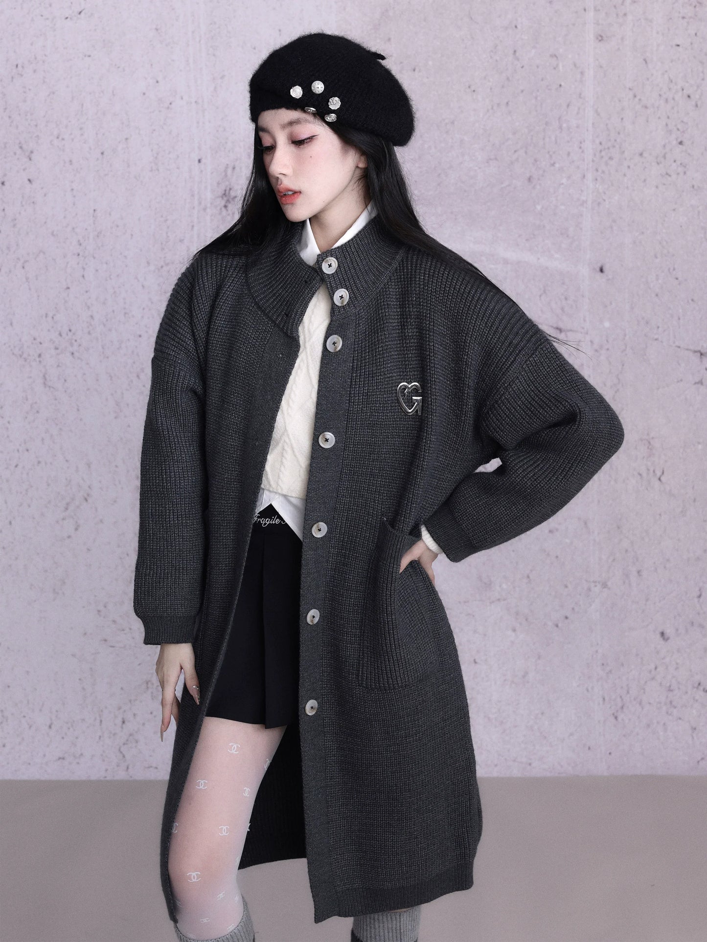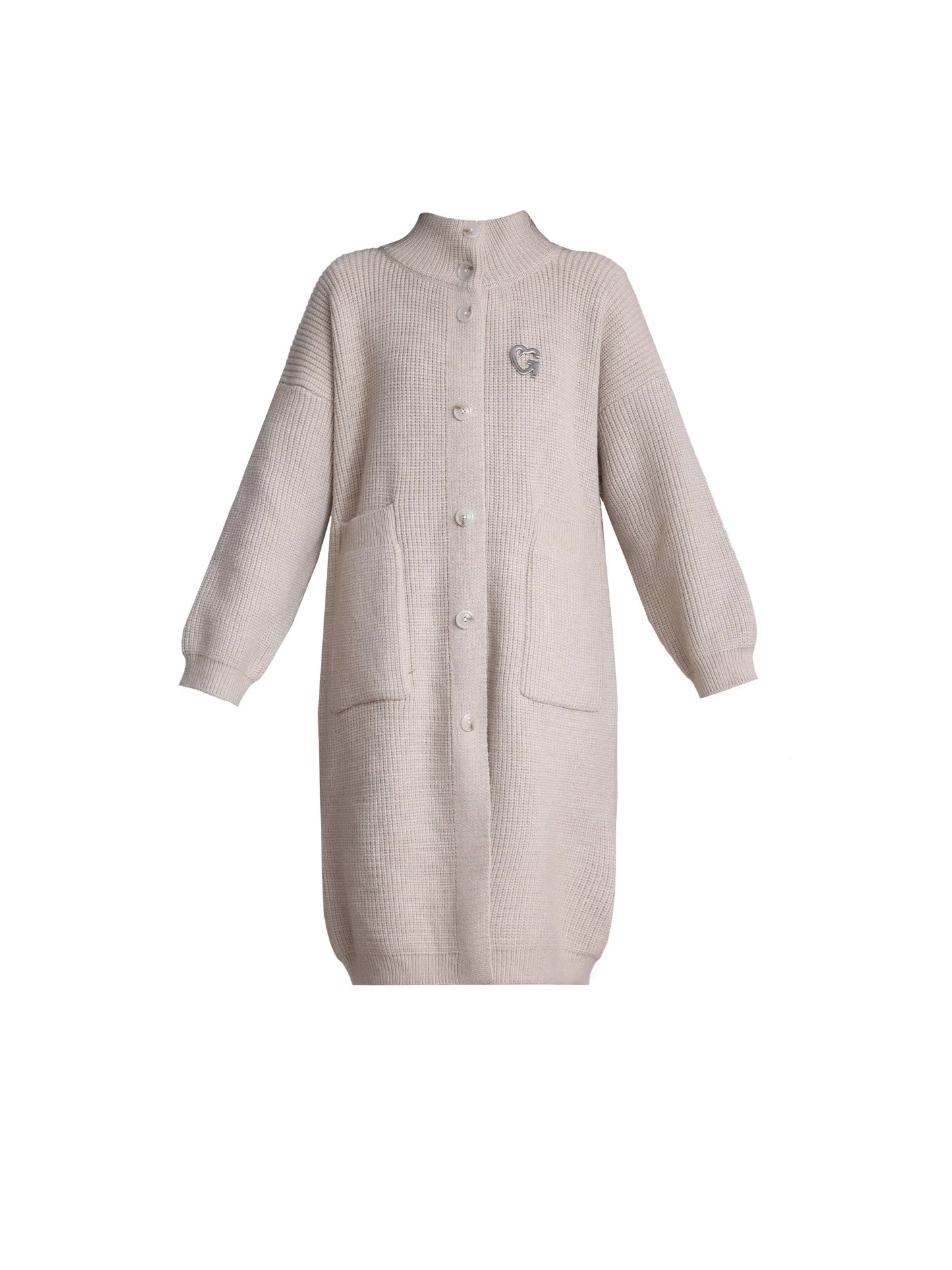 Expertly crafted for both style and comfort. the Oversized Ribbed Knit Cardigan Coat boasts a long button-down design in a versatile beige and black colorway. With a cozy ribbed knit texture and oversized fit. this sweater is the perfect addition to any cold-weather wardrobe.
