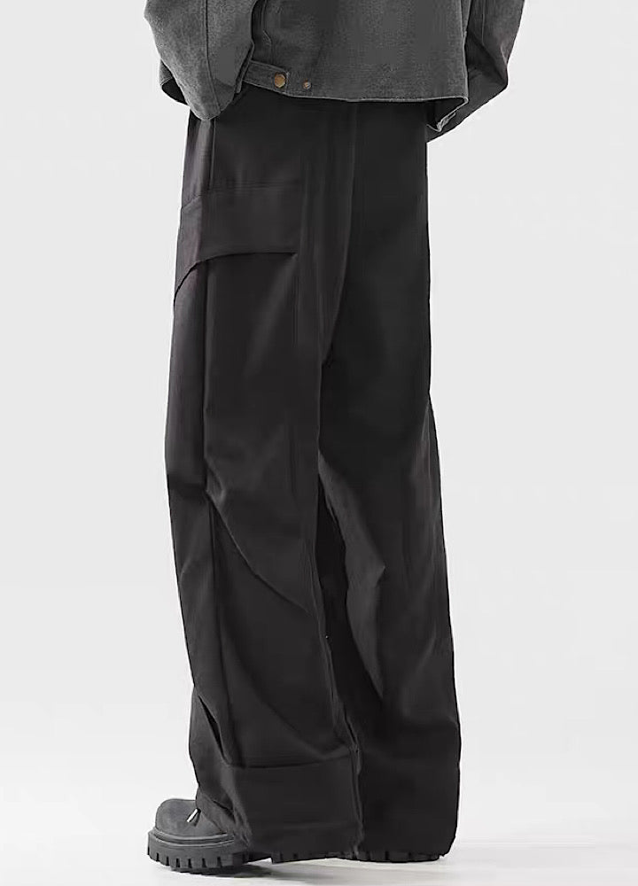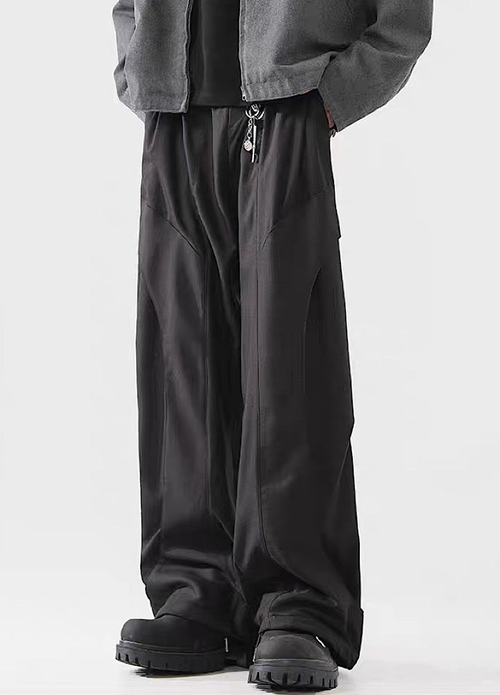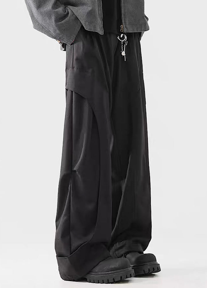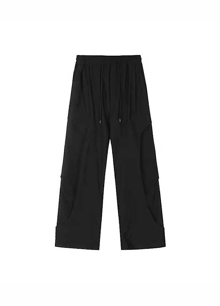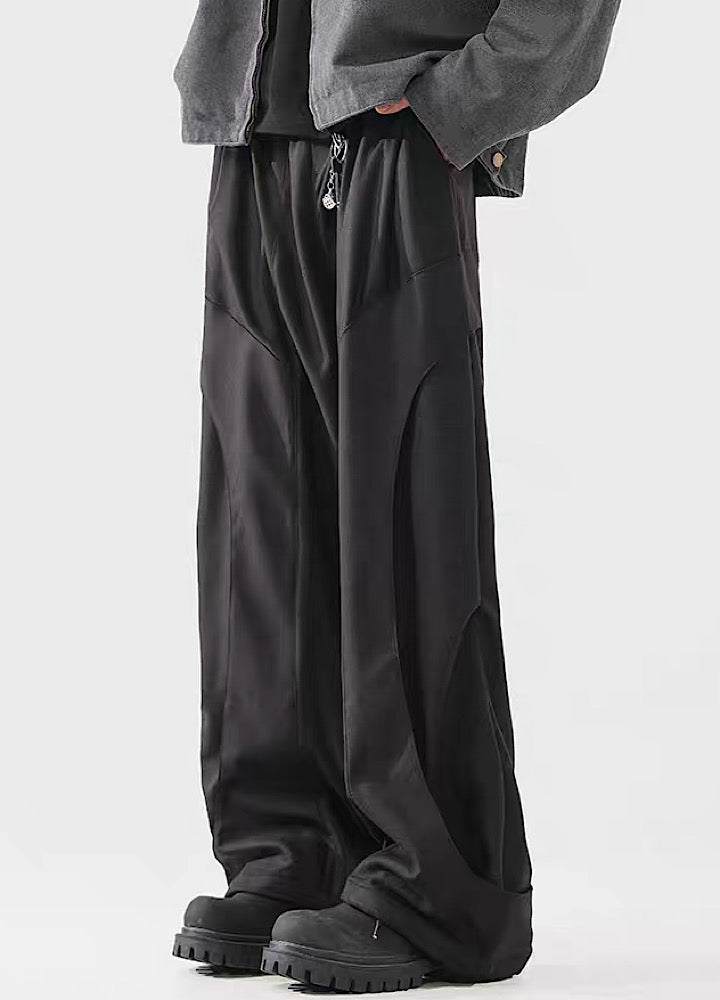 Elevate your urban style with these Black Panel Wide-Leg Utility Pants. The distinct panel detailing adds a contemporary edge. while the wide-leg silhouette provides comfort and freedom of movement. Featuring a drawstring waist and practical zippered pockets. these pants combine style with everyday utility.