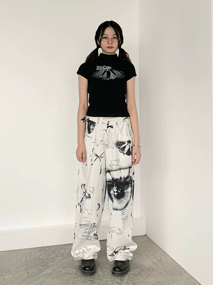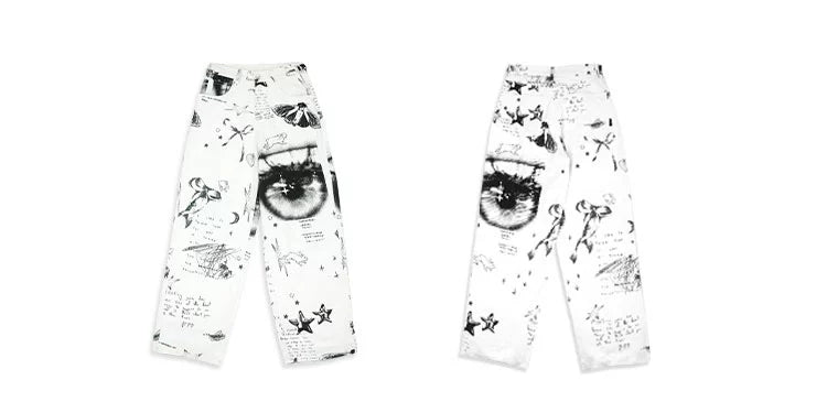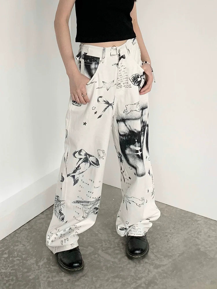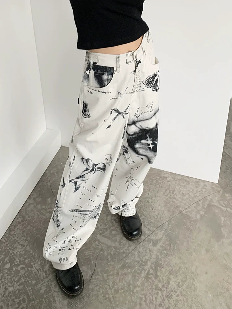 Patchwork Black & White Print Straight-Leg Pants