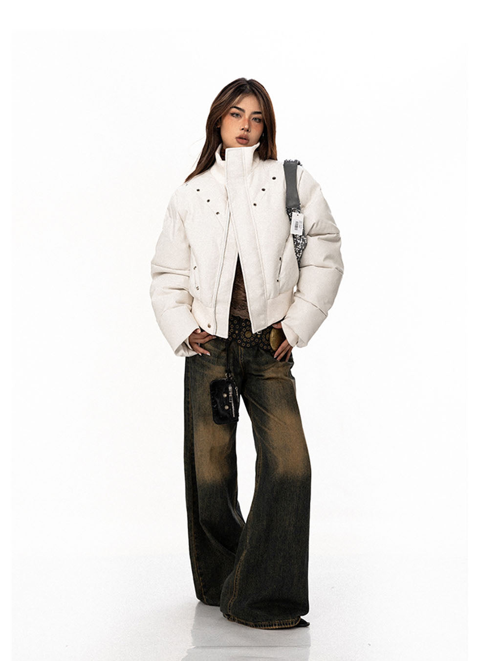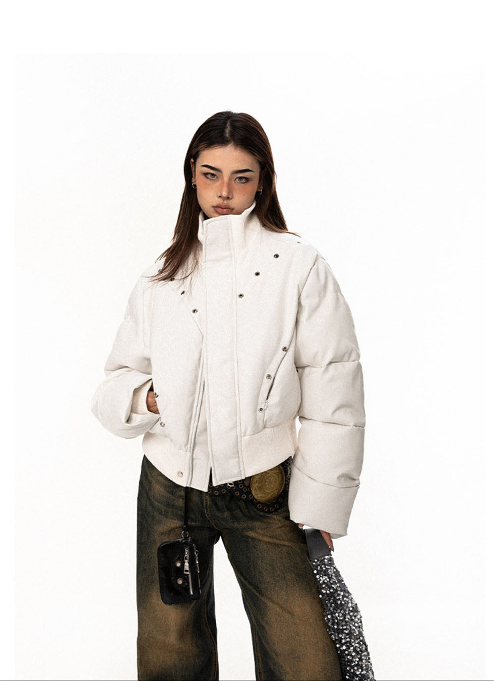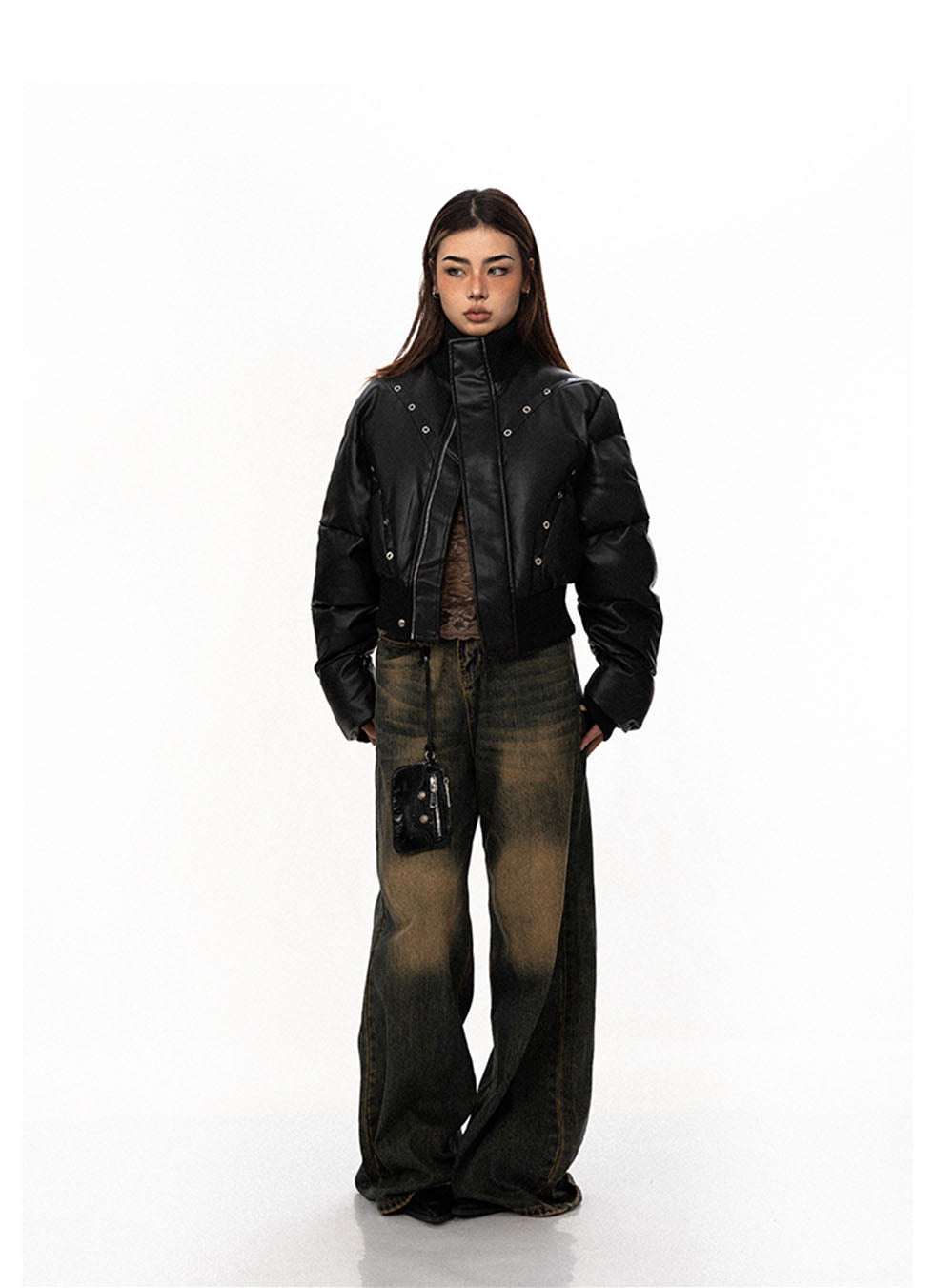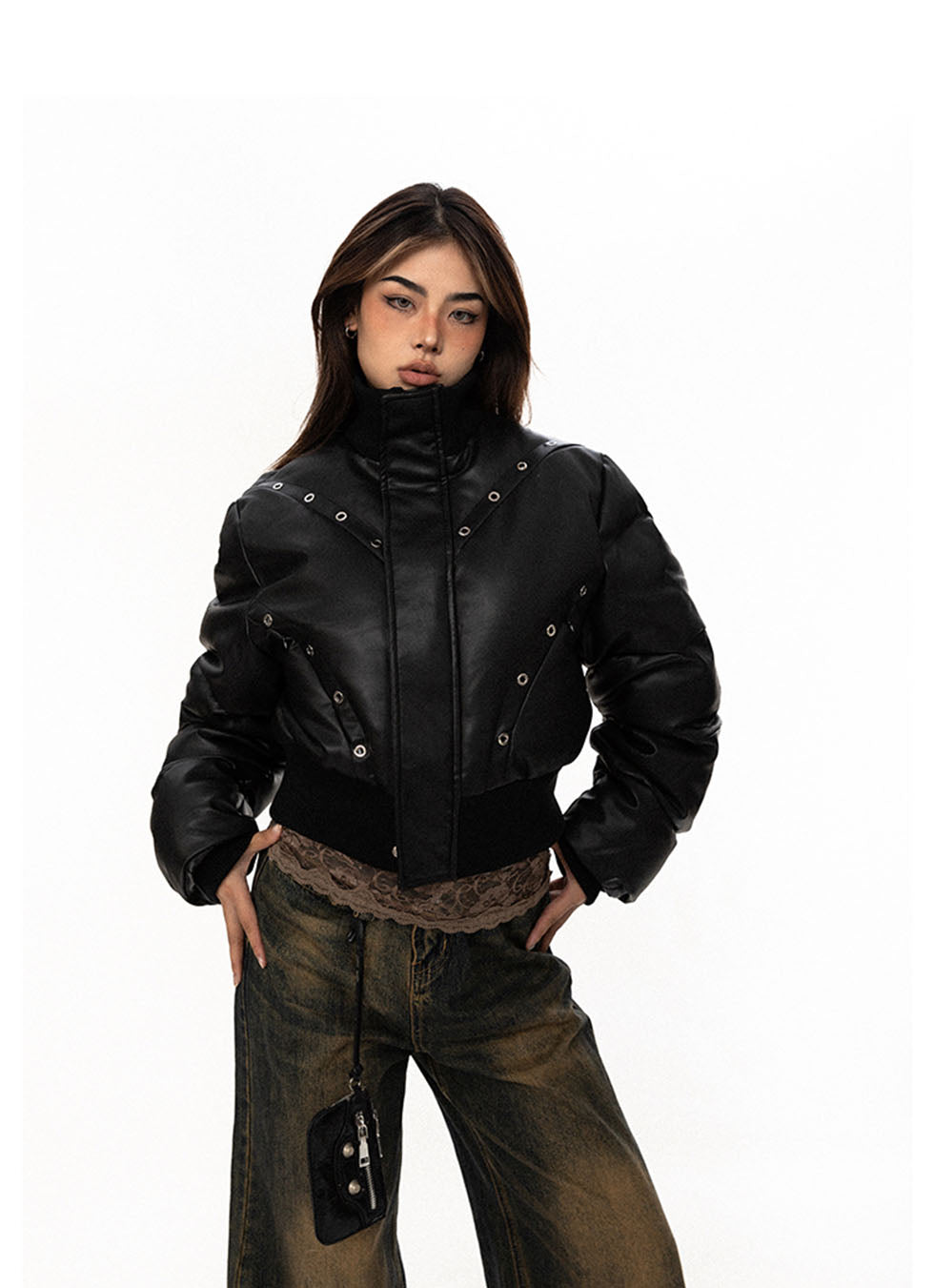 Perforated Eyelet Short Pu Leather Jacket