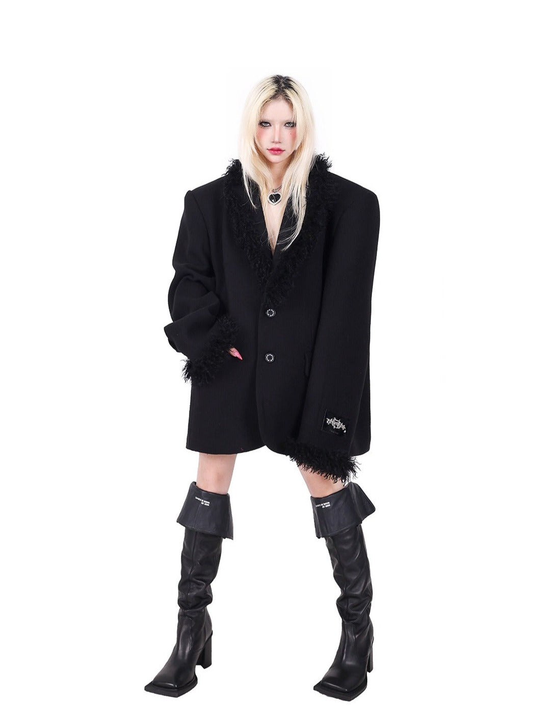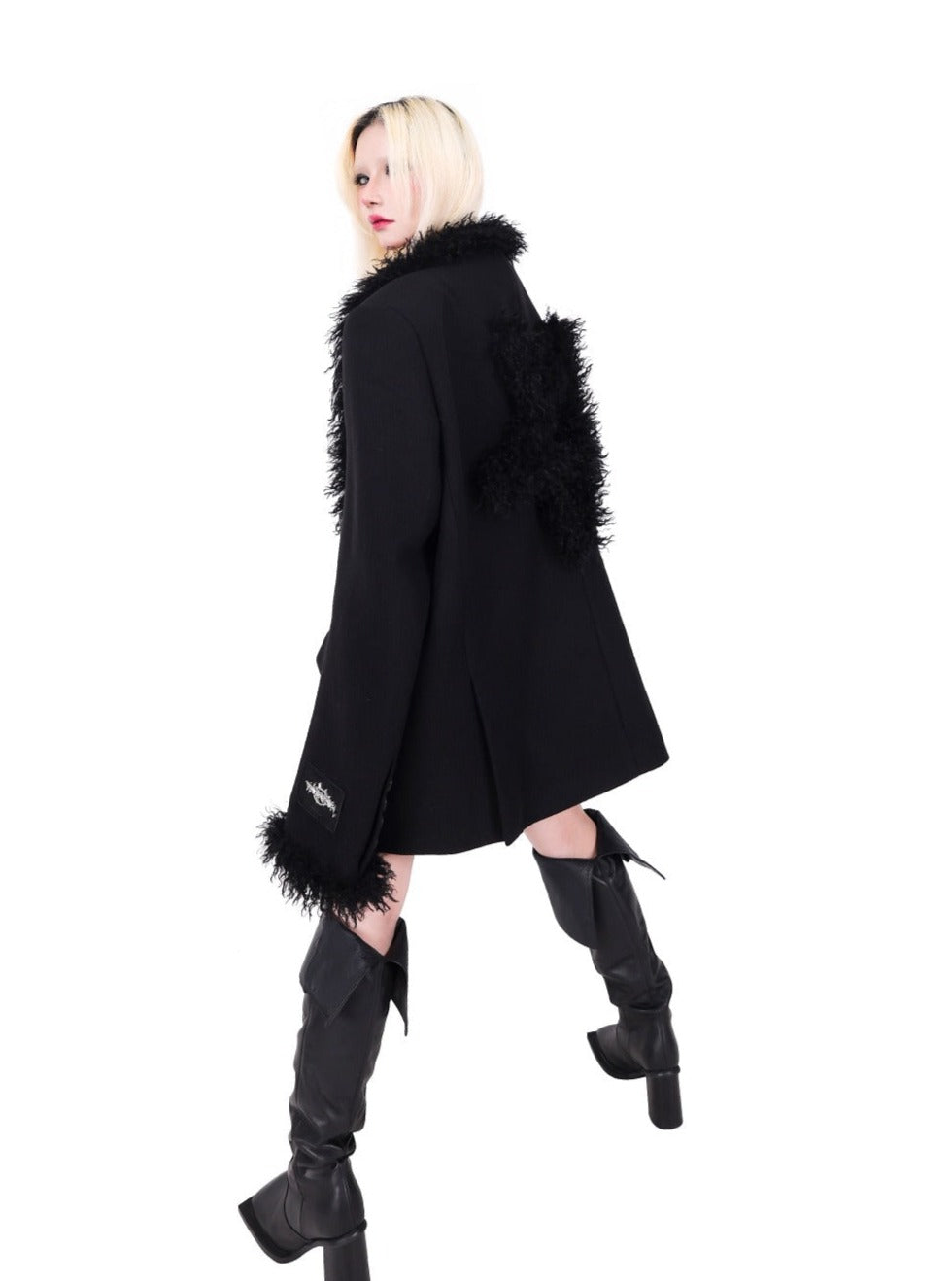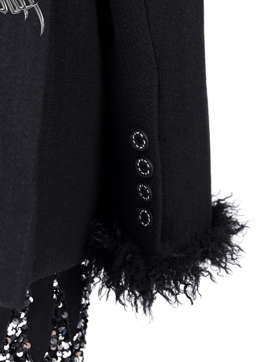PINKSPINK Faux Fur Trim Blazer - Black