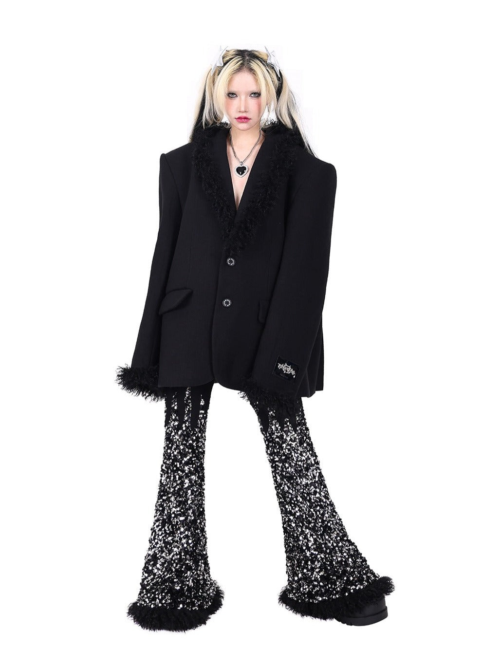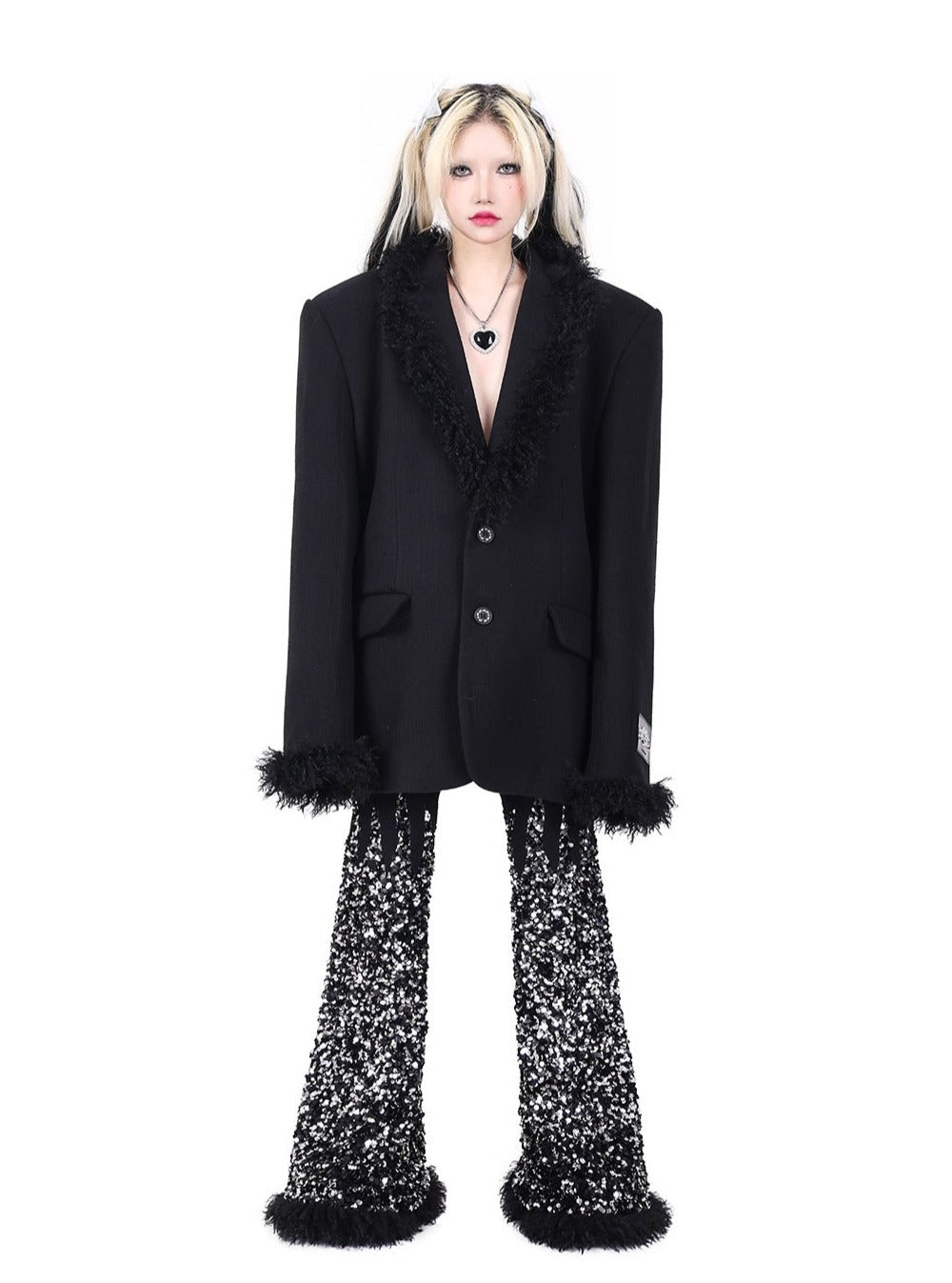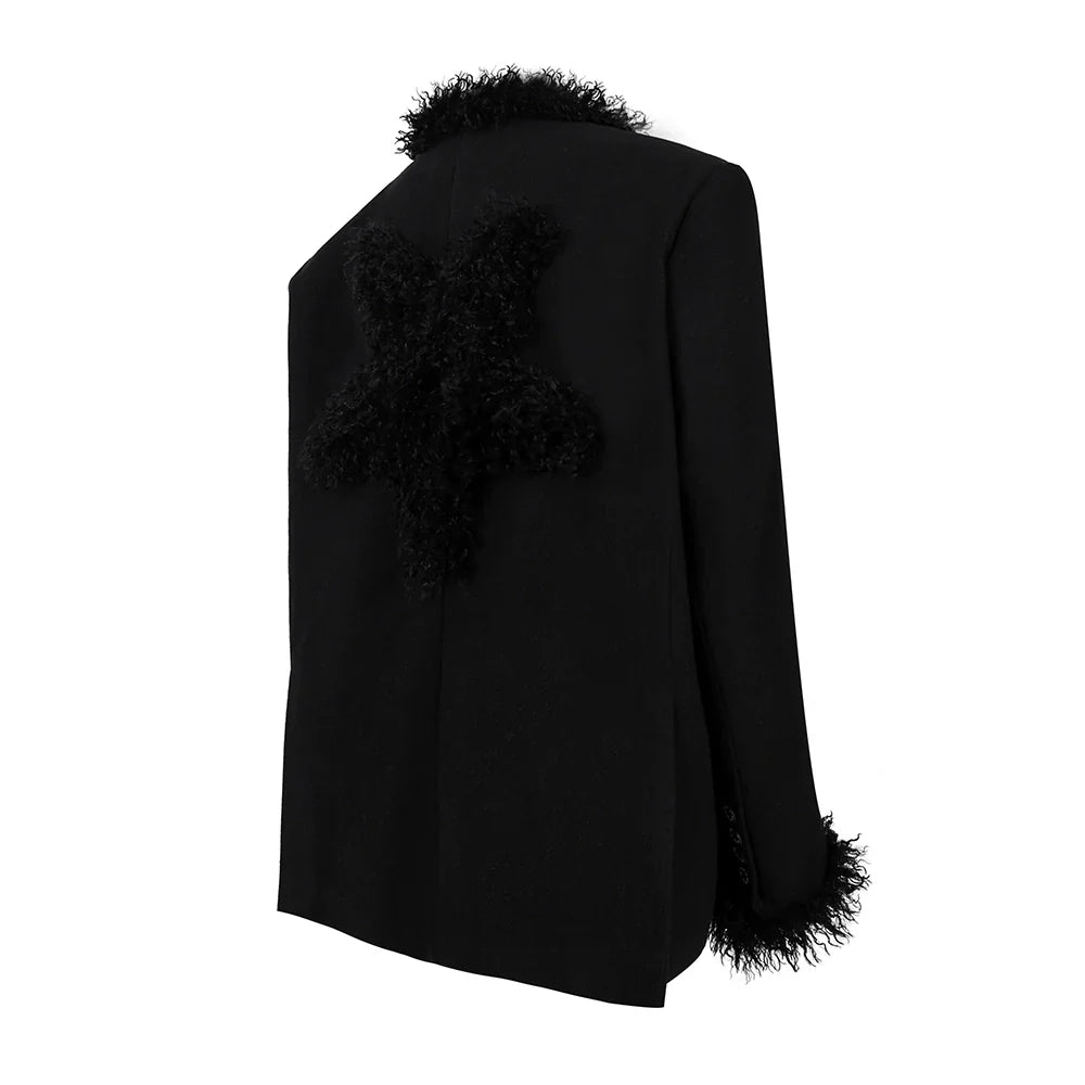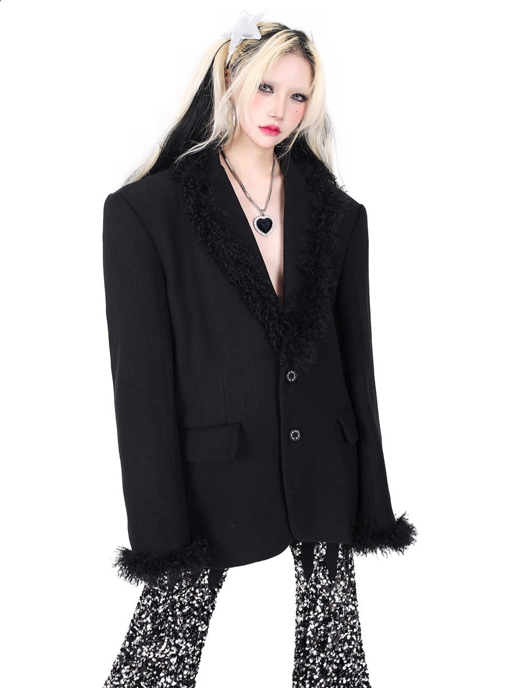 PINKSPINK Faux Fur Trim Blazer - Black