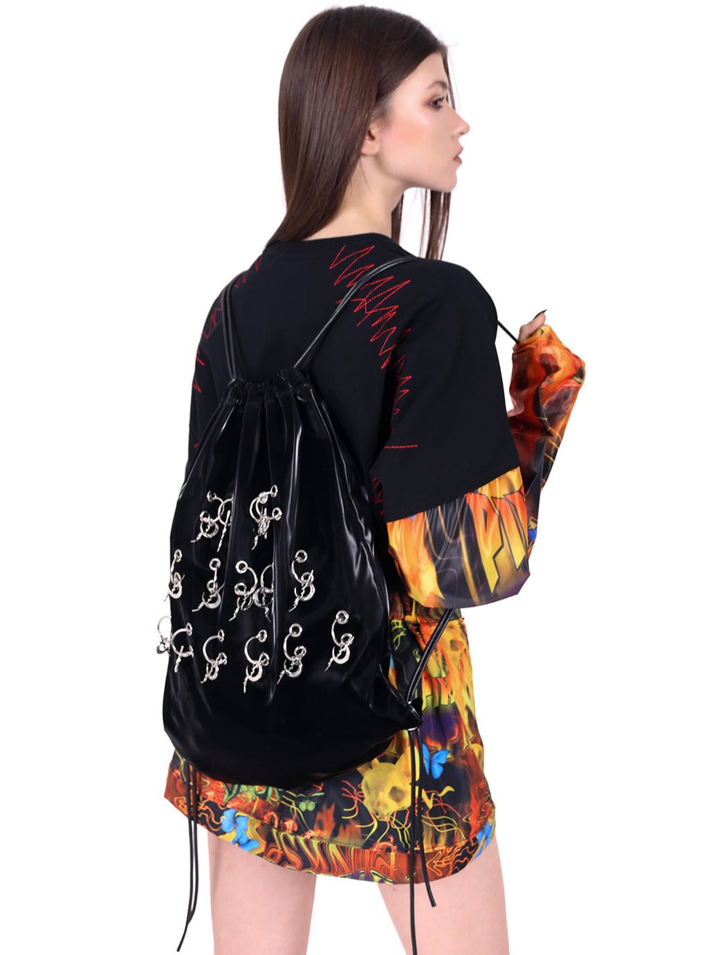 PINKSPINK Flames Metal Logo Long Sleeve Tee - Black and Flame Print