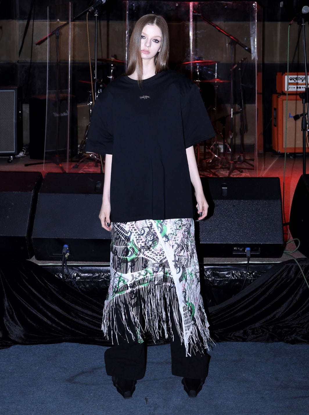 Classic oversized t-shirt in solid black. Features a relaxed. boxy fit for a comfortable and streetwear-inspired silhouette. Small. subtle brand logo printed in white on the upper chest. Short sleeves with a slightly dropped shoulder for a casual look. Crew neckline with a clean finish.Â