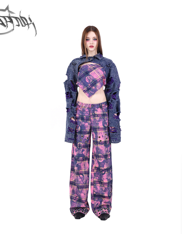 PINKSPINK Mystic Plaid Cargo Pants - Purple and Pink
