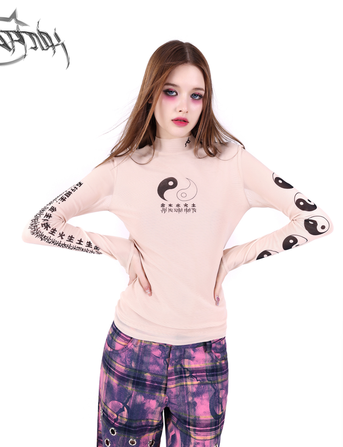 Whimsical two-piece pajama set featuring an all-over print of mystical cats and moons in shades of purple and pink. The long-sleeved top has a relaxed fit with a ruffled hem. Matching wide-leg pants complete the cozy ensemble. Soft fabric ensures comfort for lounging or sleeping.