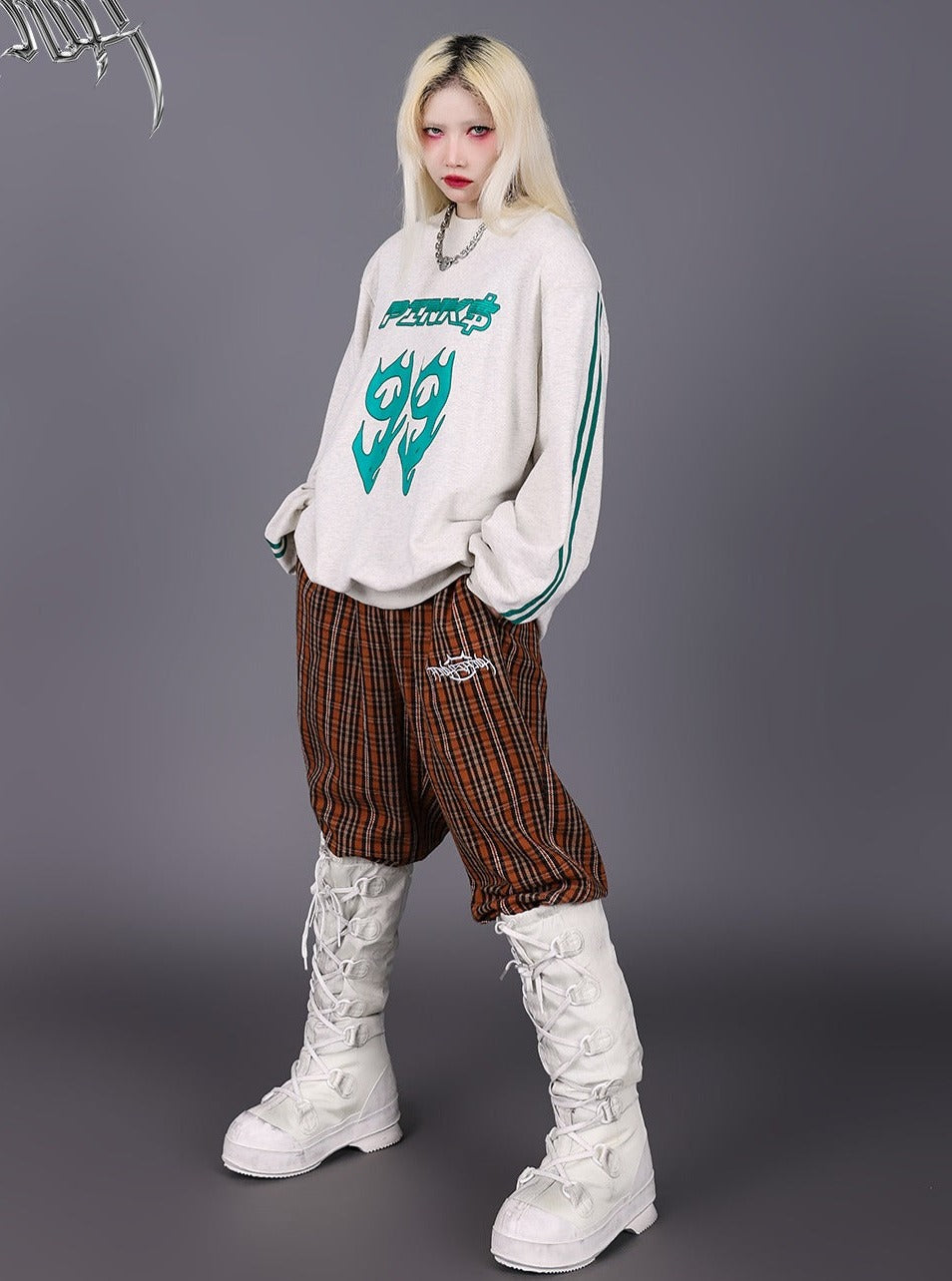 PINKSPINK Retro Plaid Wide-Leg Trousers - Brown Multi