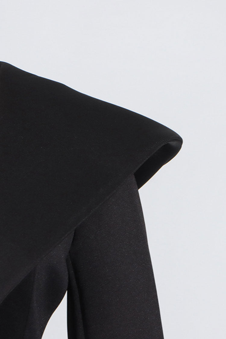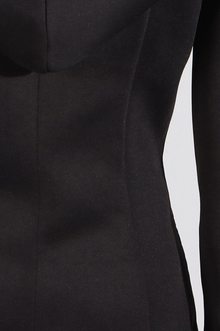 Offbeat little black dresses are a favorite among fashion-forward women. and this dynamic fishtail mini dress stands out with its oversized hood detailing and spread foldover collar. The plunging neckline and long sleeves create a striking high-street look. while the hidden front zipper cinches the waist for a flattering fitted silhouette. Diagonal darted seams bring a geometric twist. while the flared. flouncy skirt adds a playful flair. making it a perfect college outfit. Crafted from cozy polyester and cotton. this dramatic hooded mini dress from our boutique combines style and comfort effortlessly.