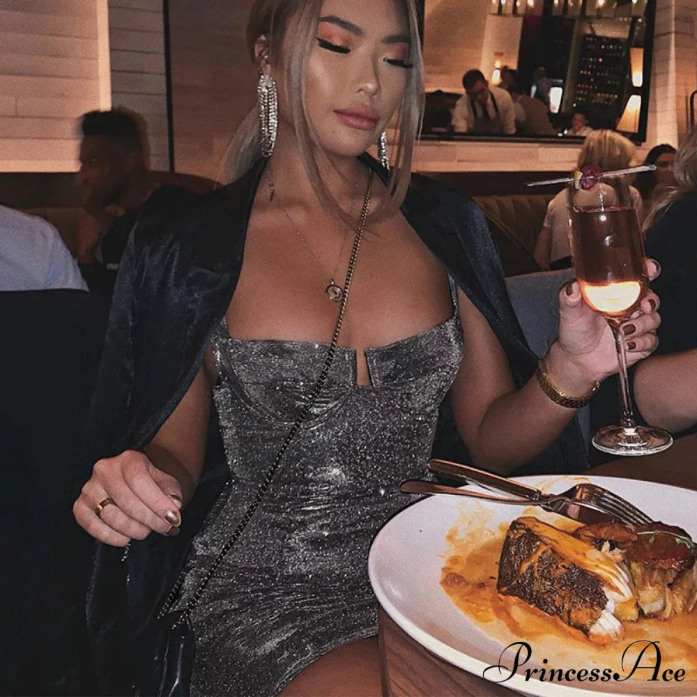 Sleeveless Evening Party Dazzling Gold Silver Sequins Dress