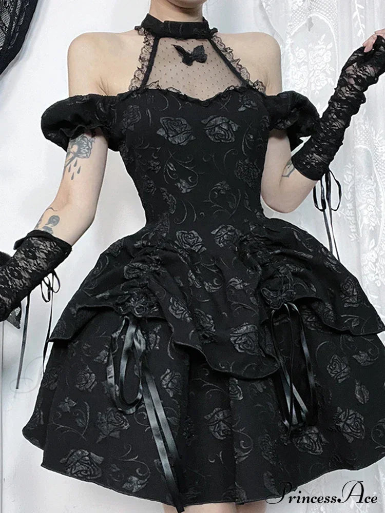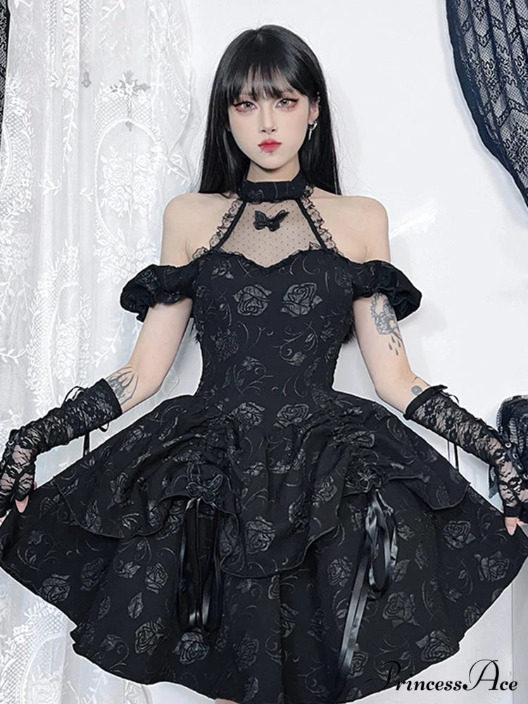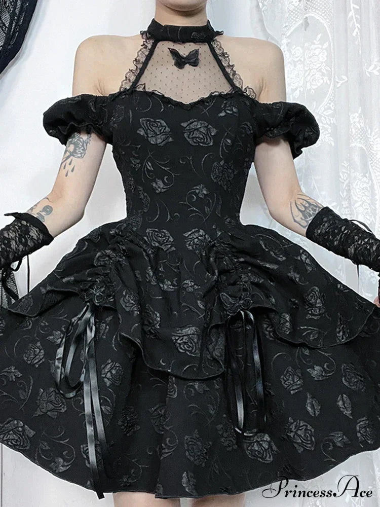 Sleeveless Halter Neck Bow Vintage Backless Cold Shoulder Print Lace Up A-Line Swing Dress