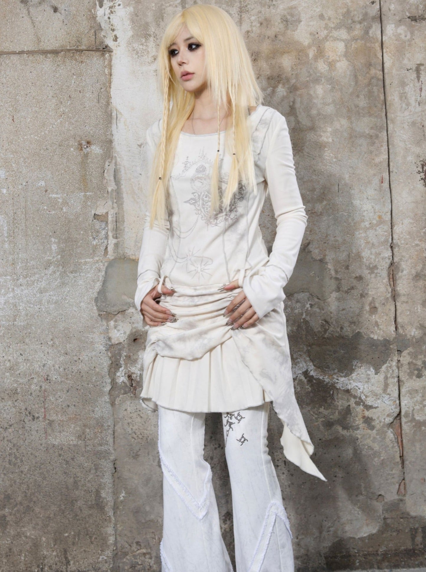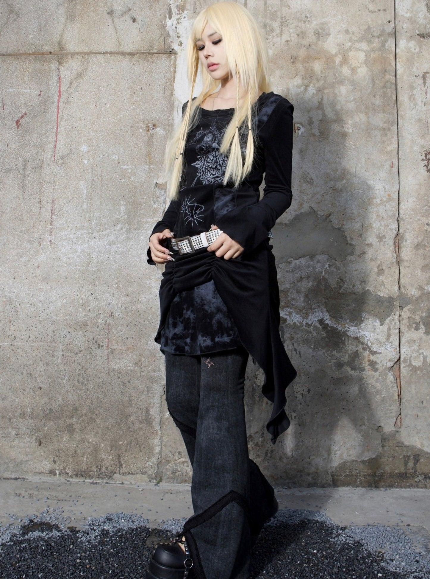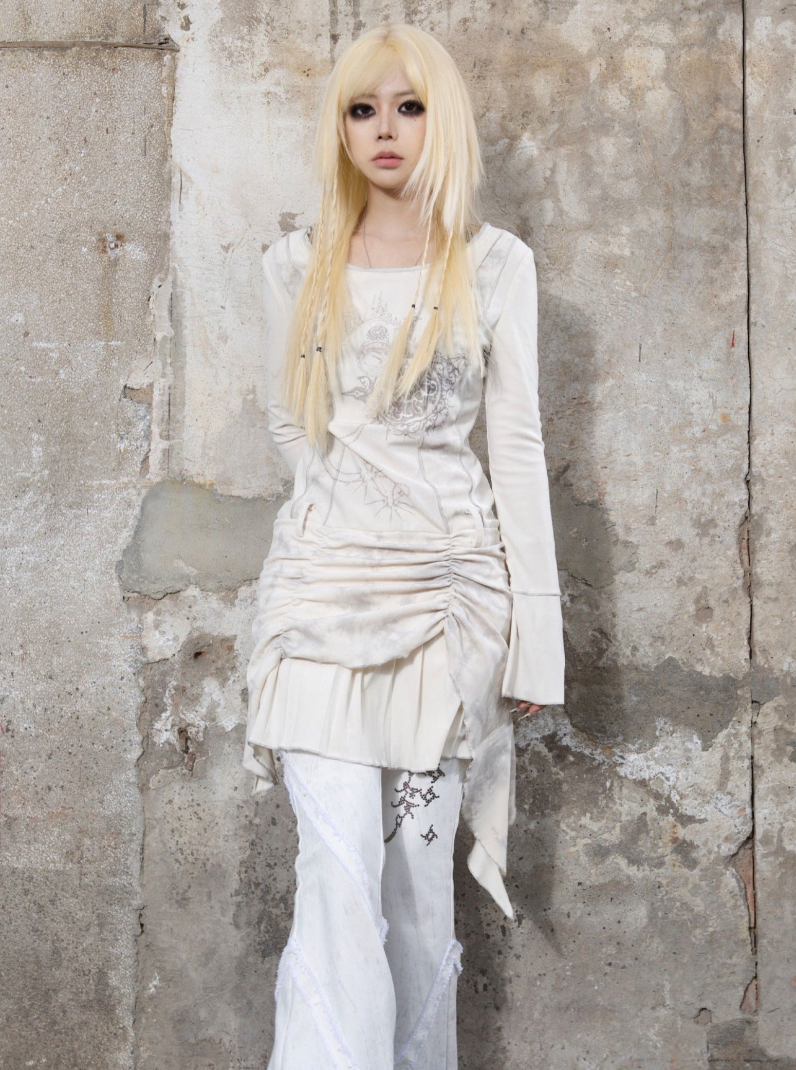 ARIADNAw Mystical Gothic Asymmetrical Tunic Dress - Black and White (Women's)