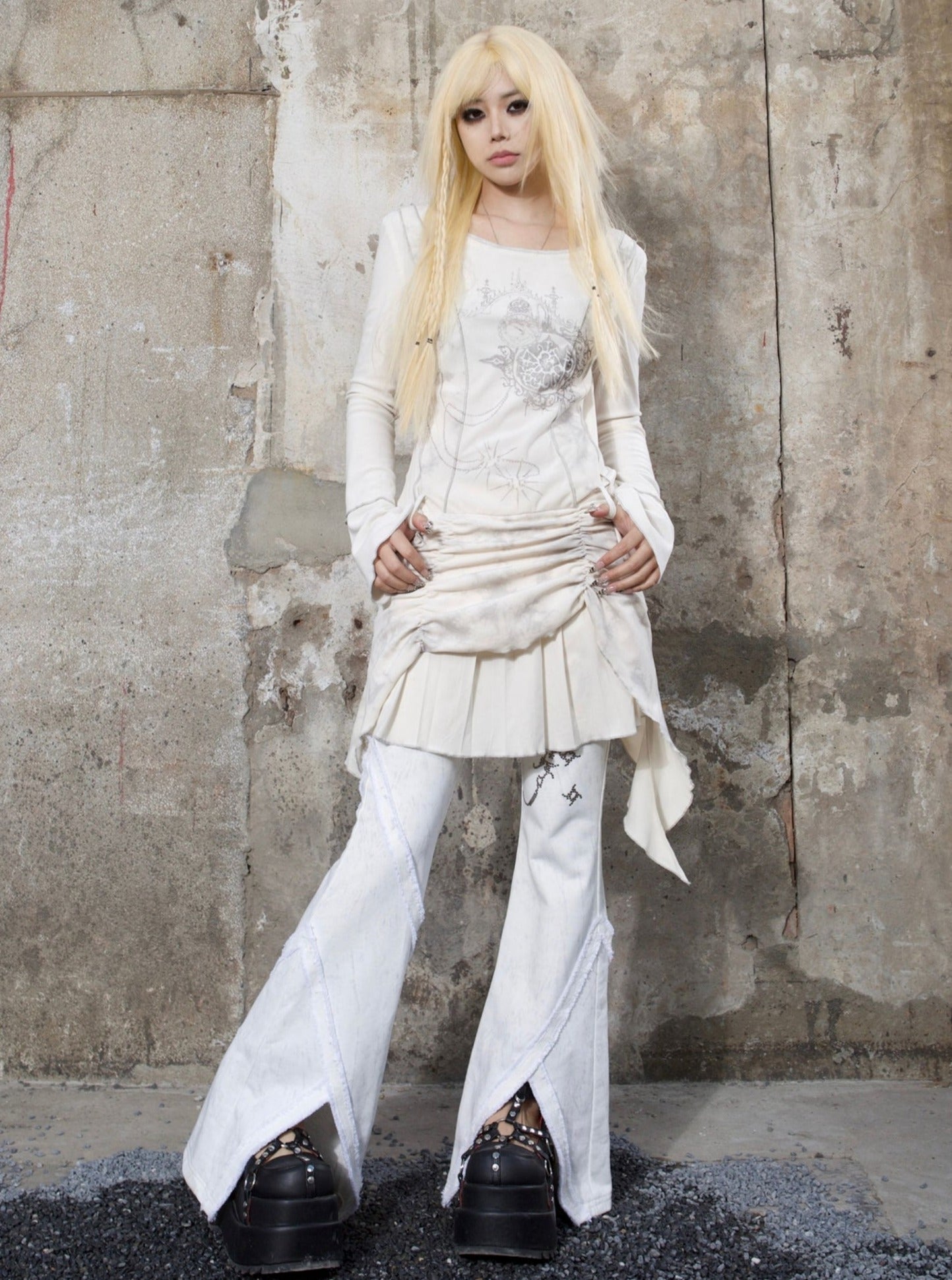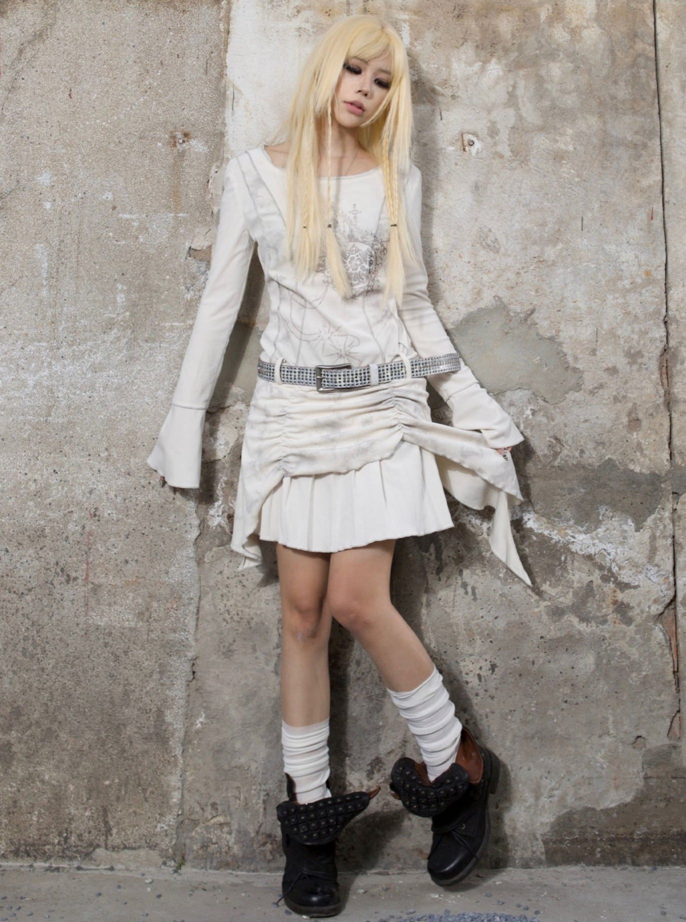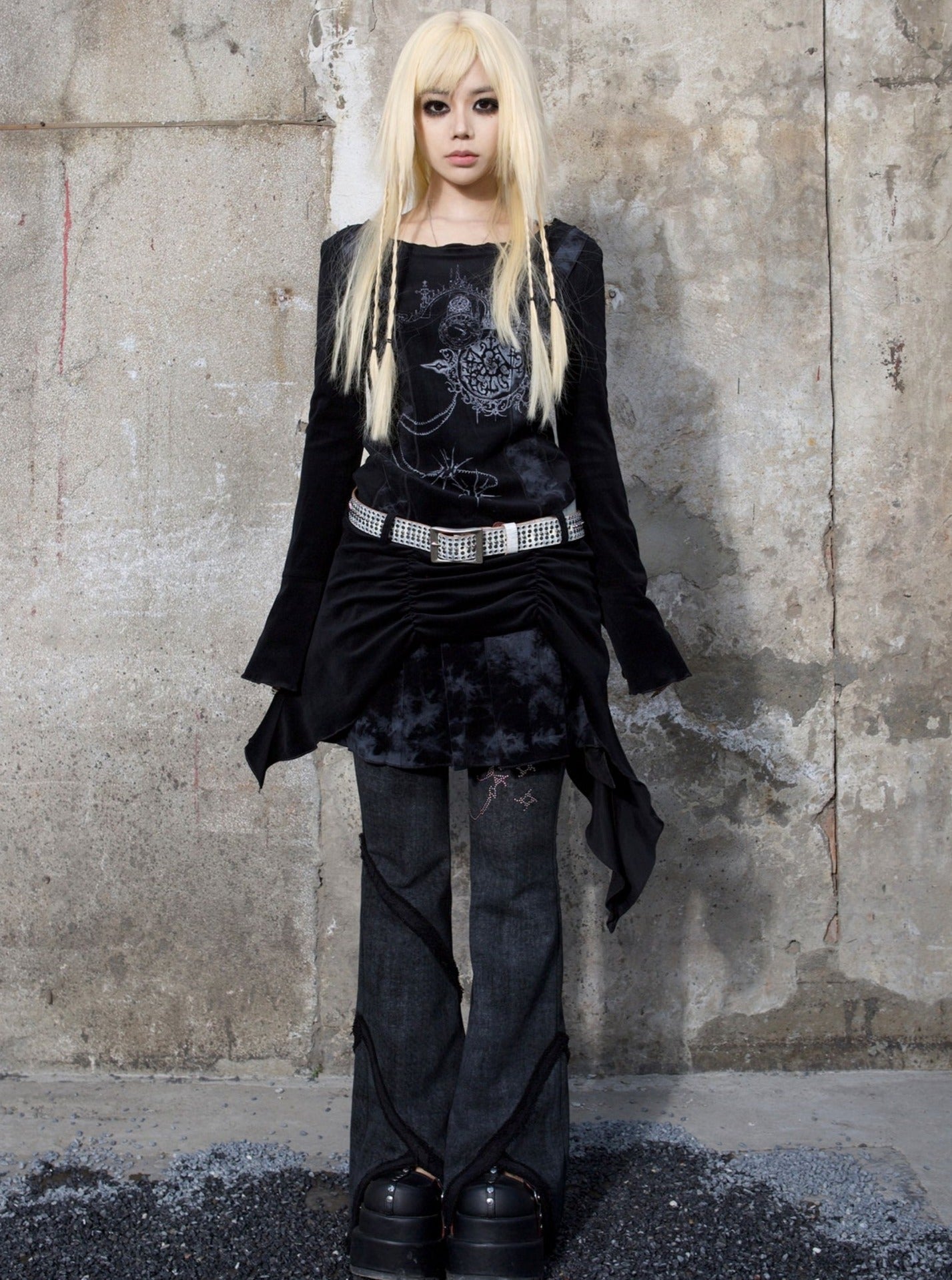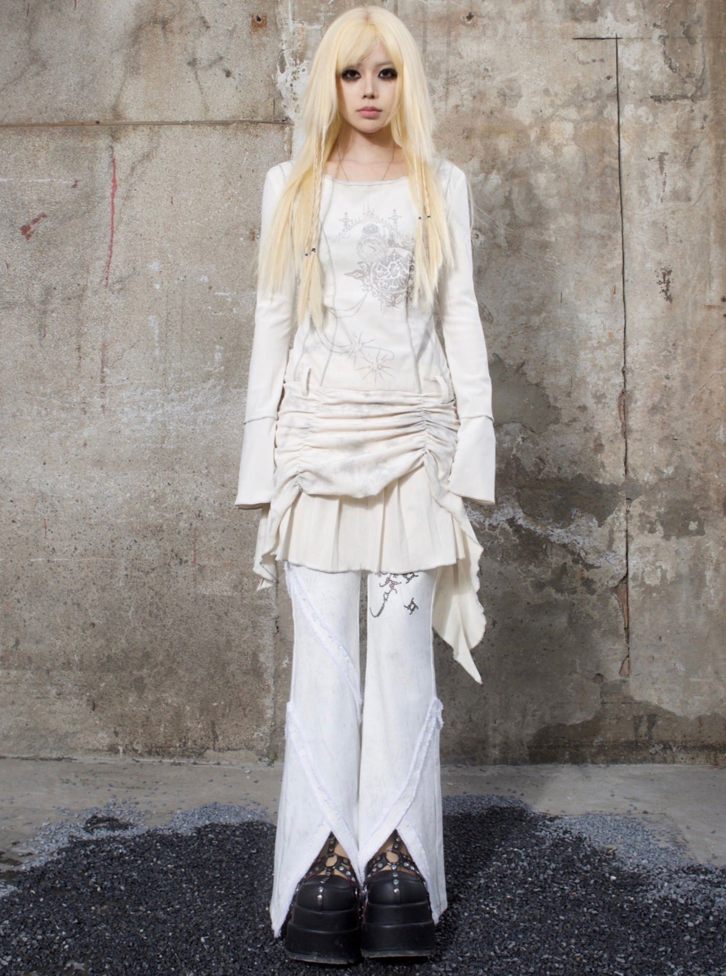 ARIADNAw Mystical Gothic Asymmetrical Tunic Dress - Black and White (Women's)