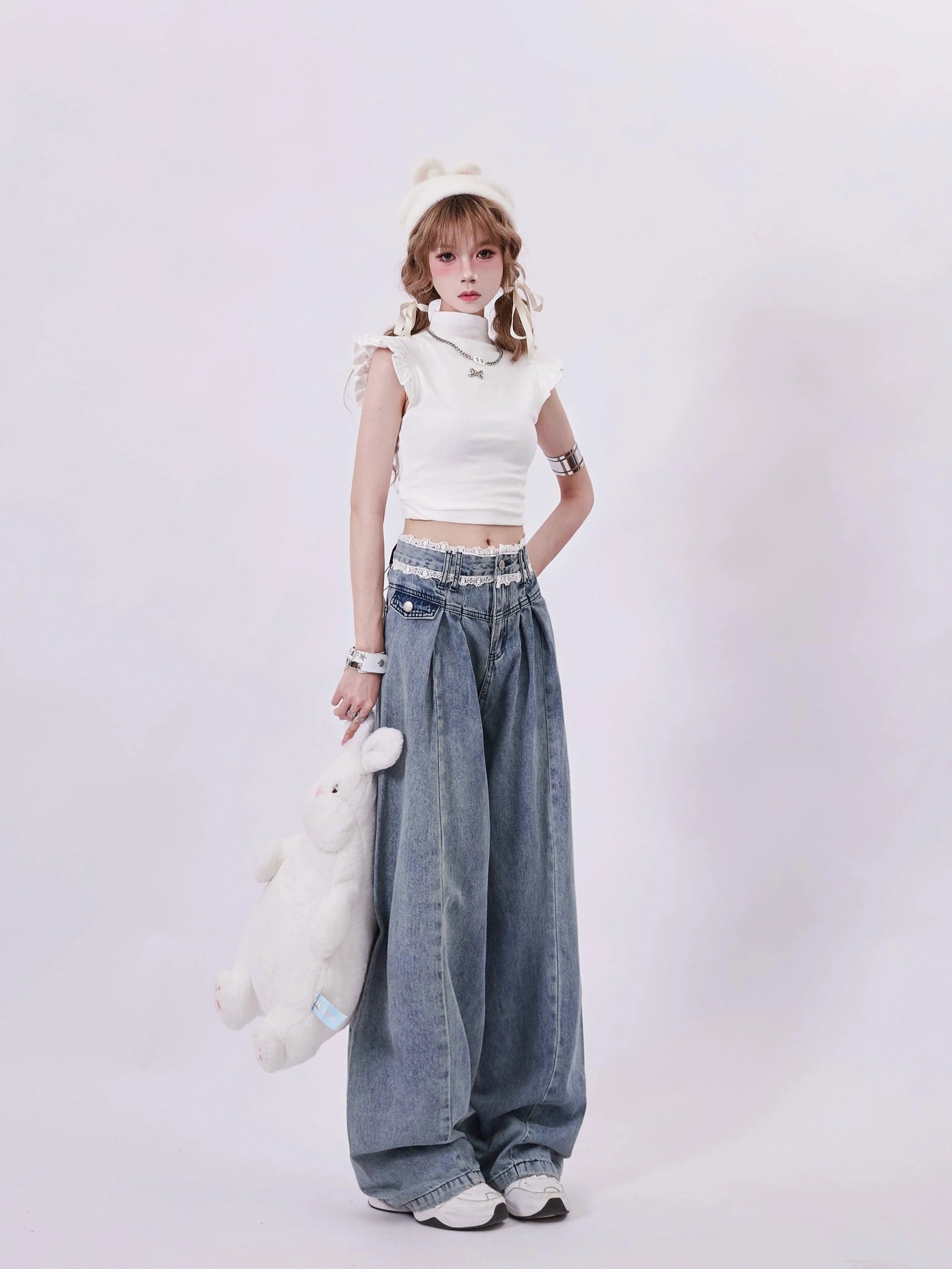 The Rayohopp High-Waisted Wide Leg Denim Jeans are vintage wash palazzo pants featuring a high waist. pleats. and a relaxed fit. These jeans combine the timeless appeal of vintage denim with the modern comfort of wide-leg palazzo pants. creating a stylish and versatile look. Perfect for casual or semi-formal wear. they are made from high-quality. durable fabric to ensure longevity and comfort..