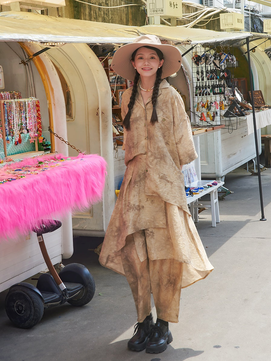 Retro Jacquard Loose Shirt & Skirt Pants Set