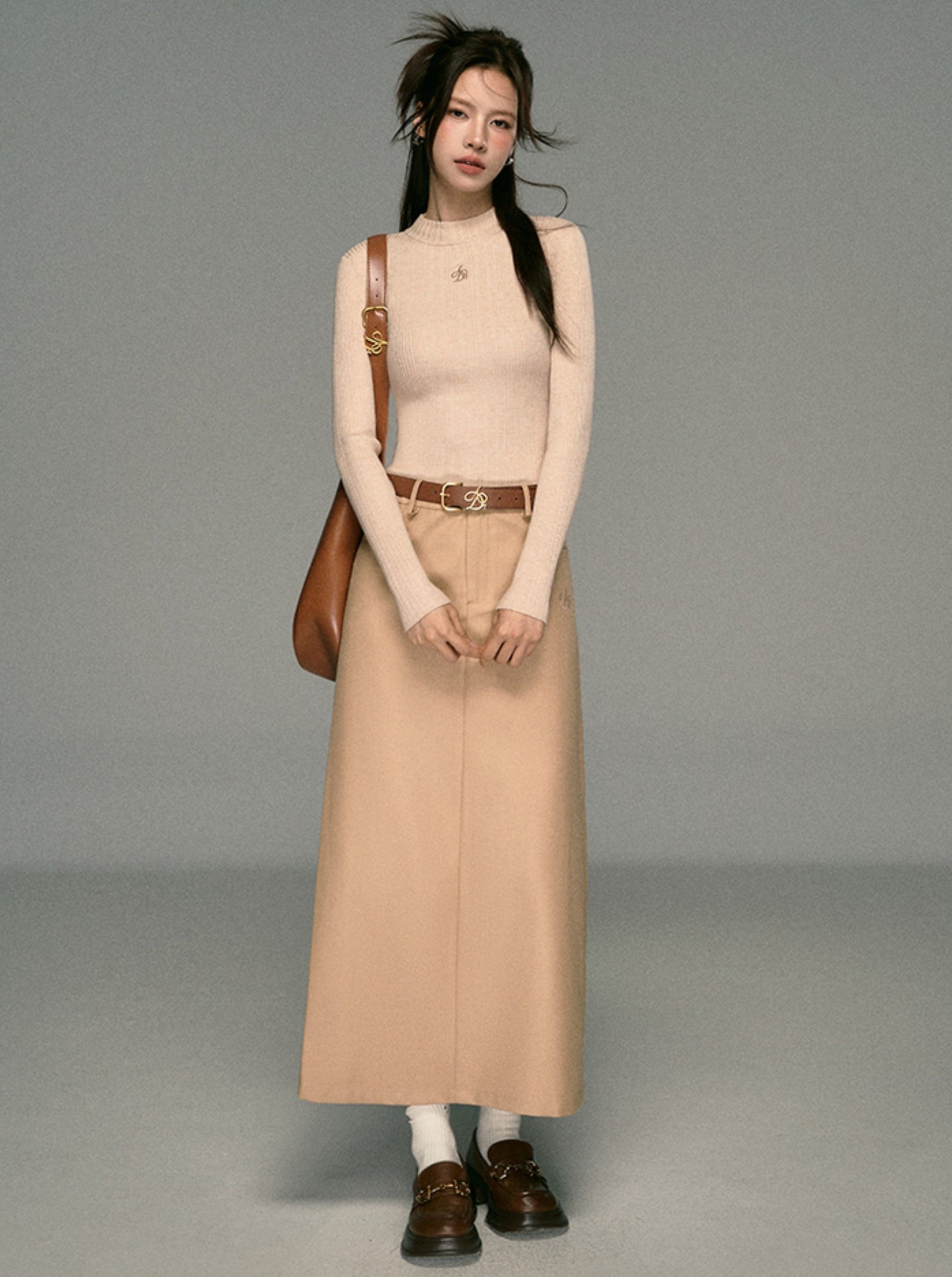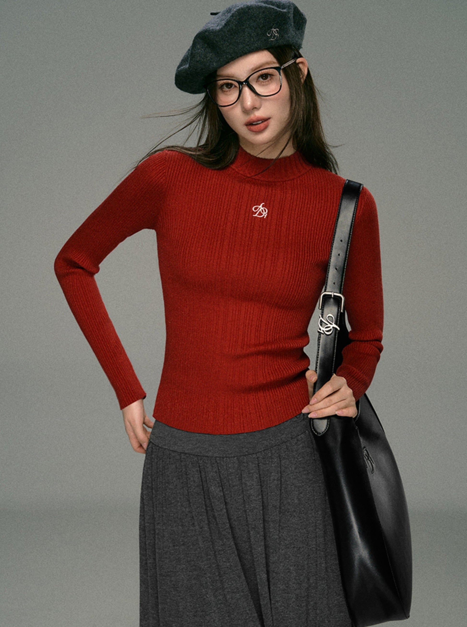 Ribbed Mock Neck Sweater - Fitted Long Sleeve Crop Top