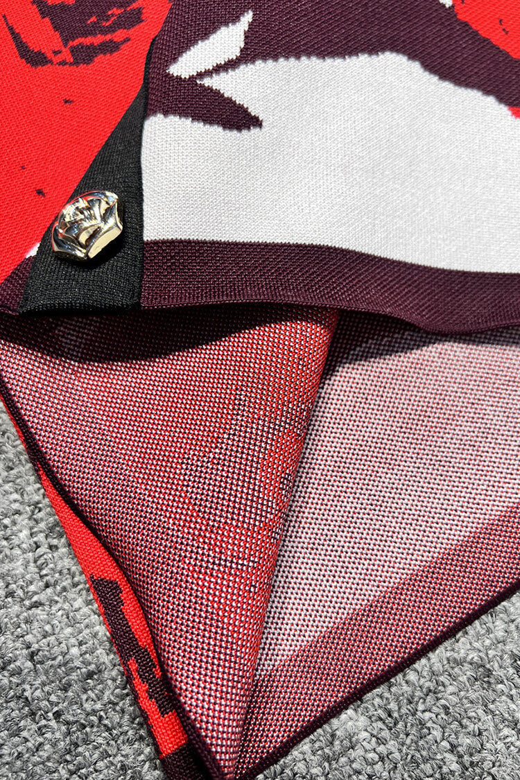 Get ready to paint the town red with our French-style bandage dresses. Crafted in a fiery red rose jacquard pattern. this bodycon midi dress in our boutique features a structured sweetheart neckline paneled with contrasting ribbed texture. gold-tone embossed flower button accents at the front. and a chic exposed metal zipper at the back. Perfect for date nights or hitting the dance floor. this sexy halter neck dress is all about that va-va-voom for women! Whether you're out with your besties or turning up the heat on a special night out. this luxury floral outfit will have you feeling fab and looking fierce. even in summer!