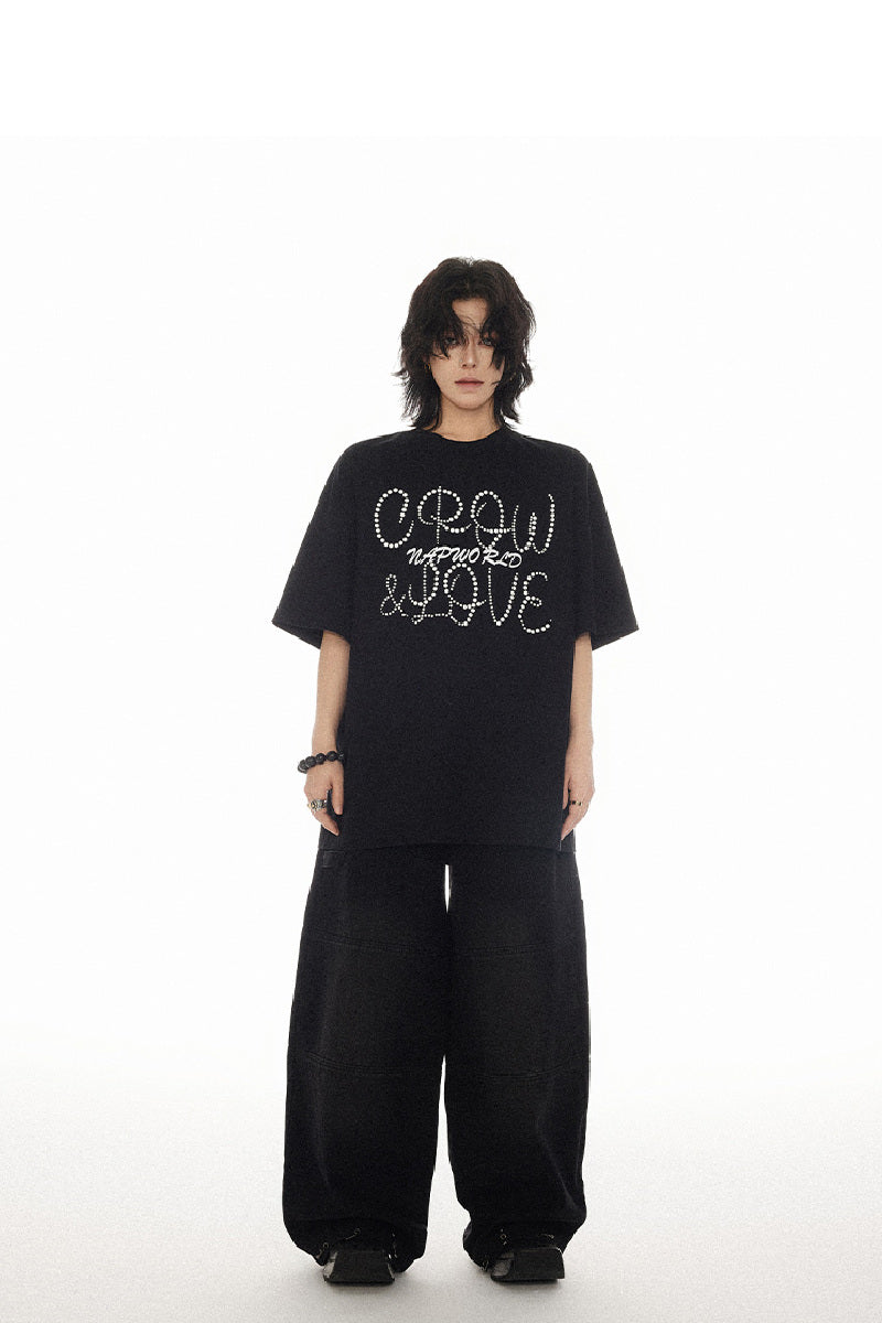 Rugged Distressed Denim Straight-Leg Jeans by Croworld is a must-have from their Spring/Summer '24 collection. These black jeans feature an oversized fit and are made from 97% cotton and 3% viscose. ensuring both comfort and durability. Limited stock available. Machine wash or hand wash with water under 40°C. no bleach. and iron reversed at low temperature. Flat to dry. Model wearing size Large. height 1.68m (5'5"). weight 53kg (117 lbs).