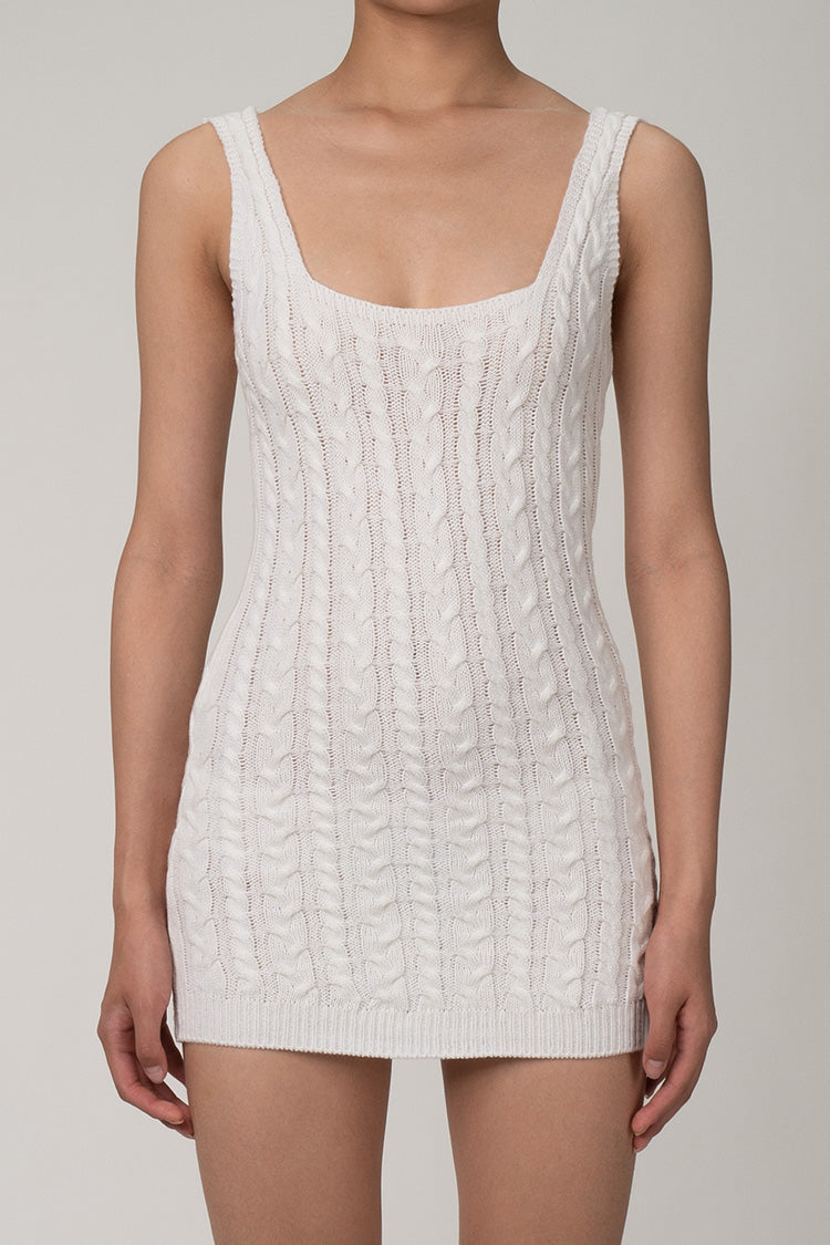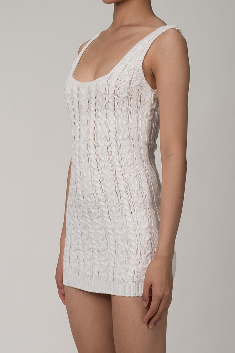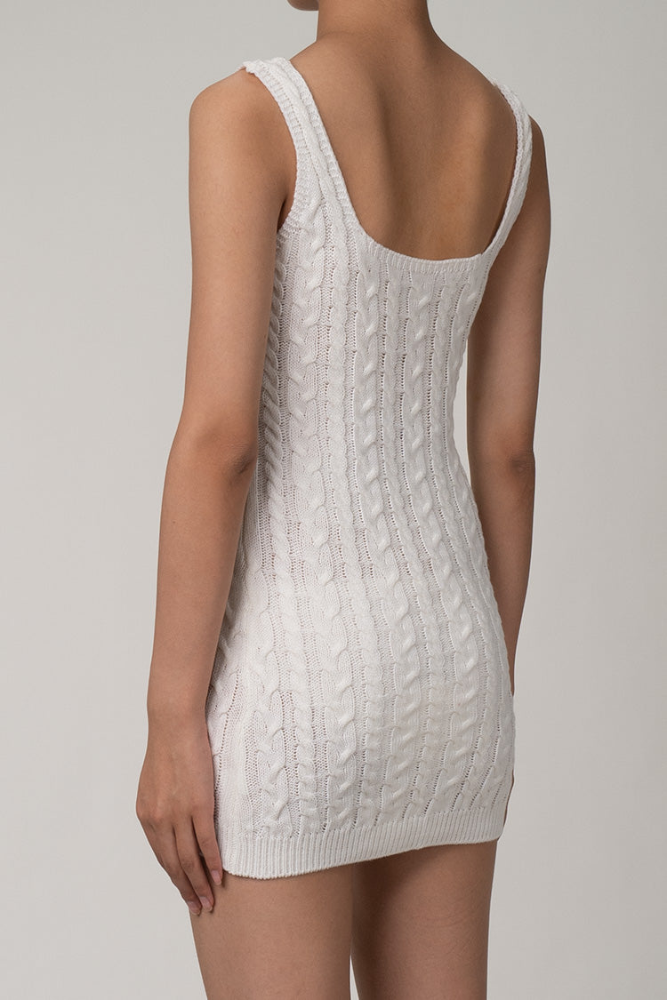 Sexy Cable Knit Sleeveless Mini Sweater Dress - White