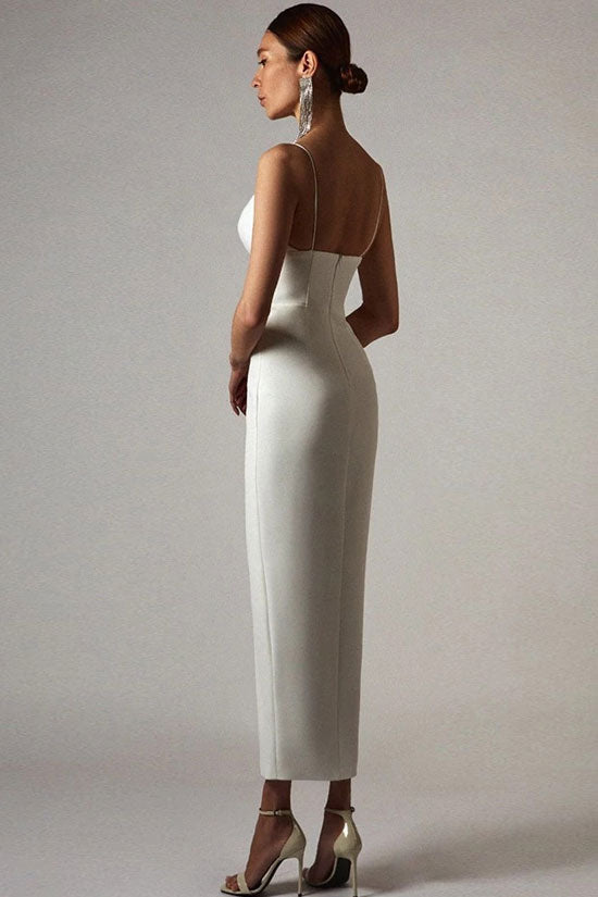 If you're looking to outfit your cocktail party in a versatile and universally minimal way this season. then cozy knitted sleeveless dresses in our boutique should definitely be on your radar. This minimal bandage midi dress. featuring a plunging neckline. adjustable slender shoulder straps. a stretchy slim-fit silhouette made of medium-thick knit fabric. a hidden zip closure at back. and a mid-length dress cut with a front slit for dance. is a stunning option for special events. Coming in three shades. it will complement all skin tones. making women glamorous. You truly cannot go wrong with an impossibly chic slip dress.