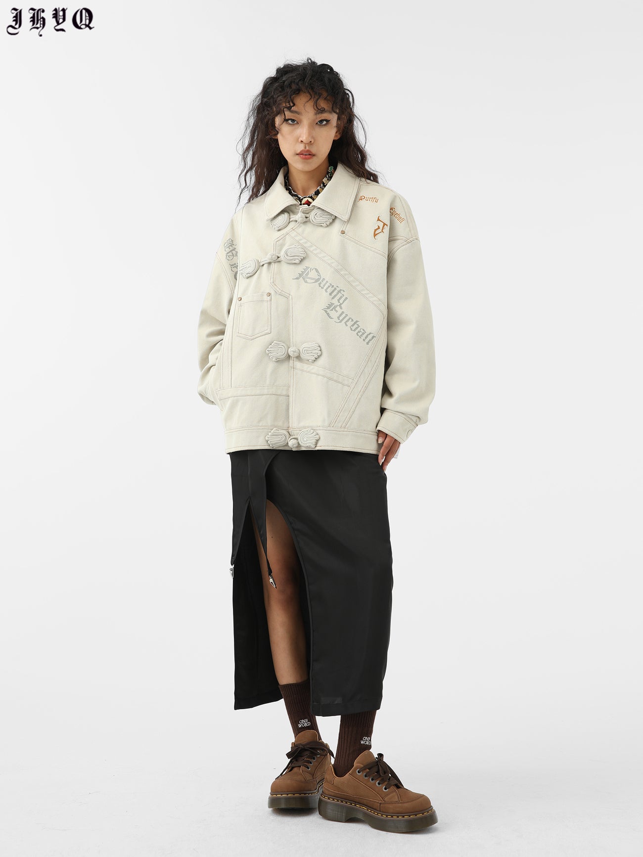 Short Jacket with Coil Buckle Lapel and Embroidery
