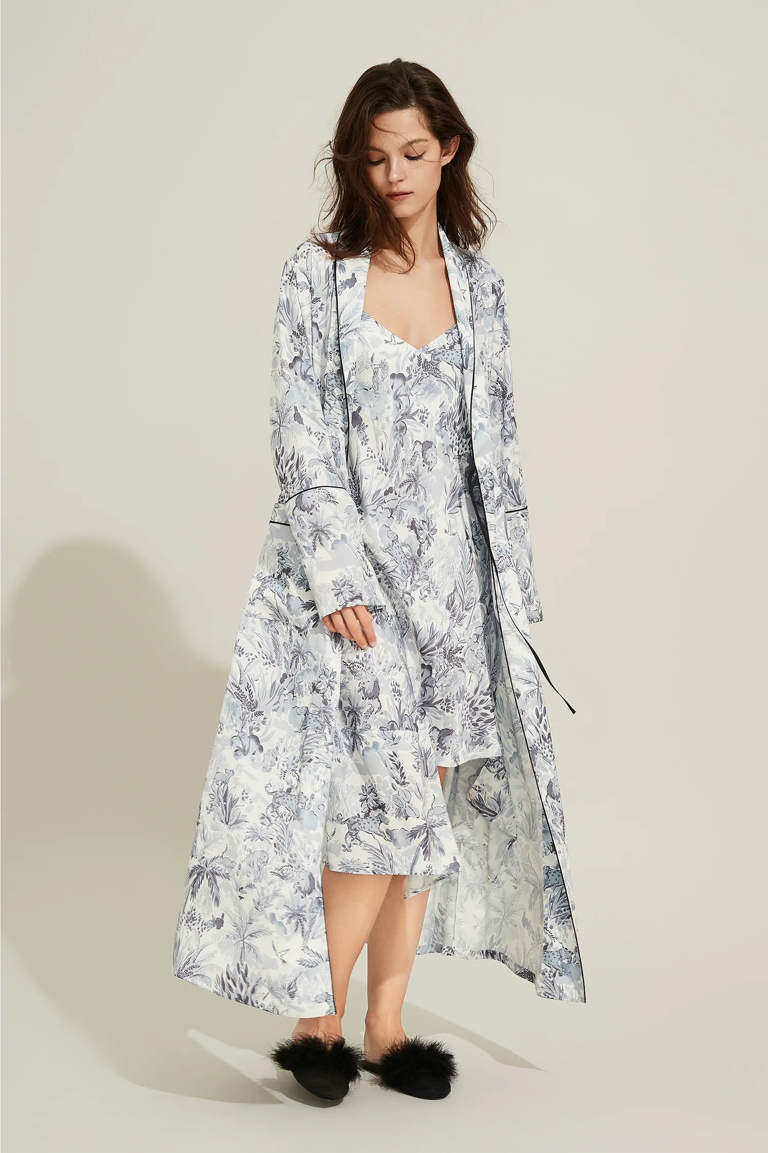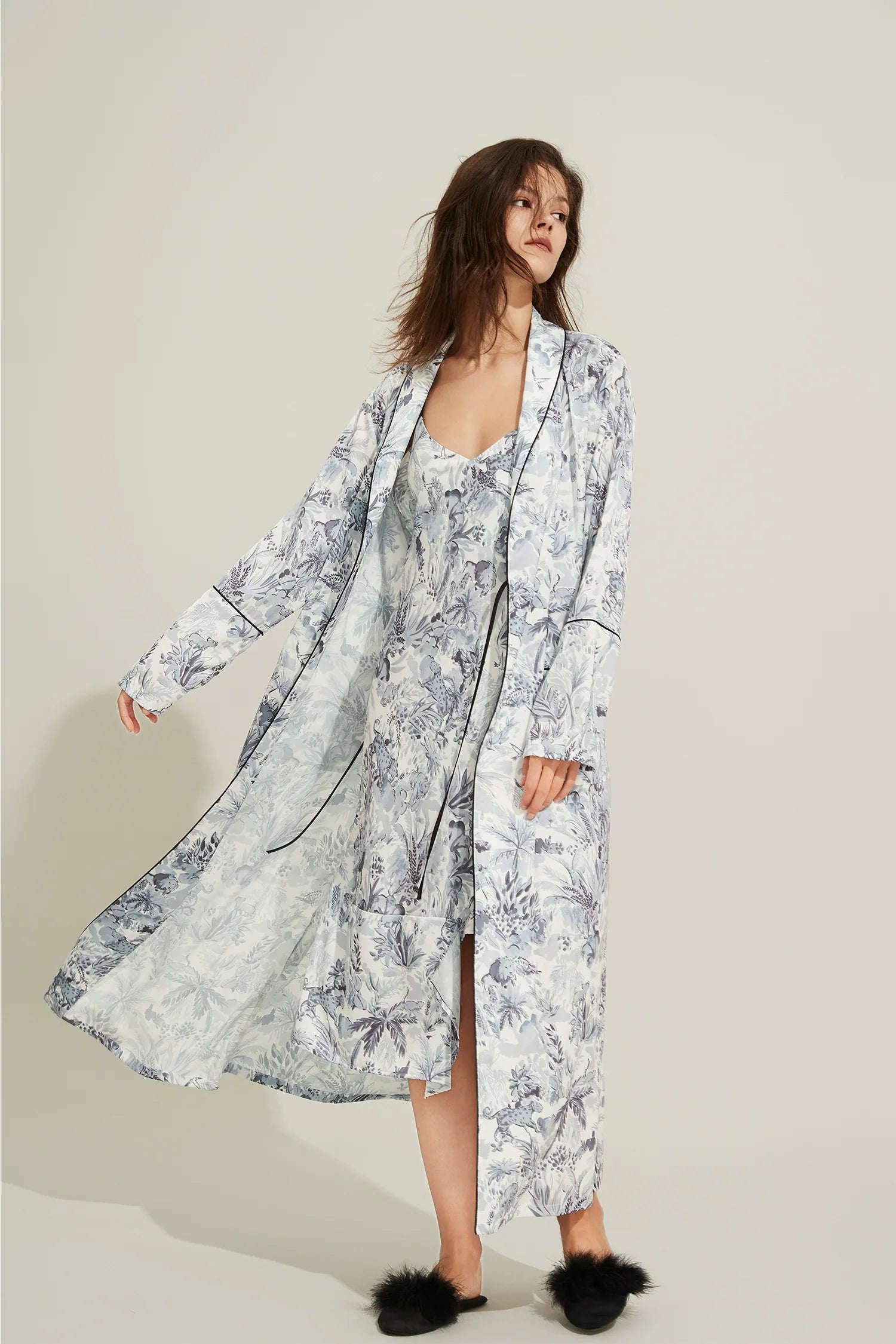 Silk Thin Long Robe With Tie Waist Sleepwear