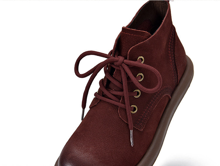 Simple Lace-up Leather Flat Shoes