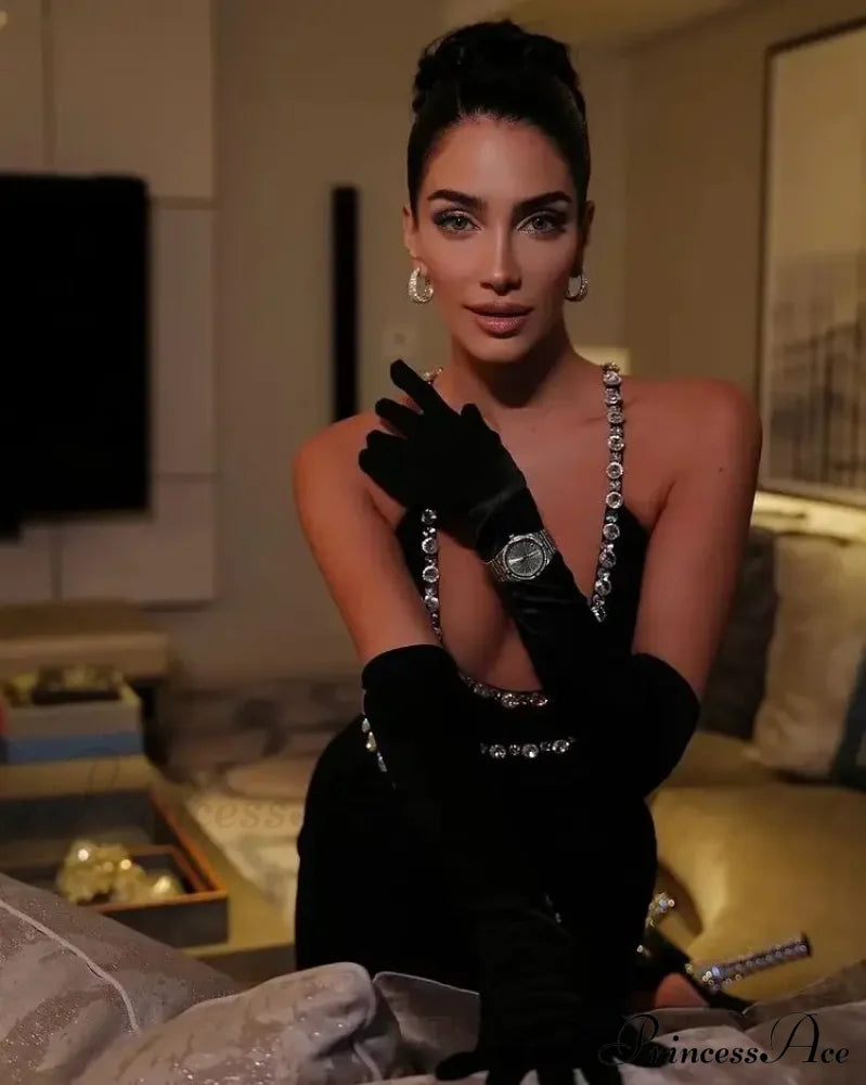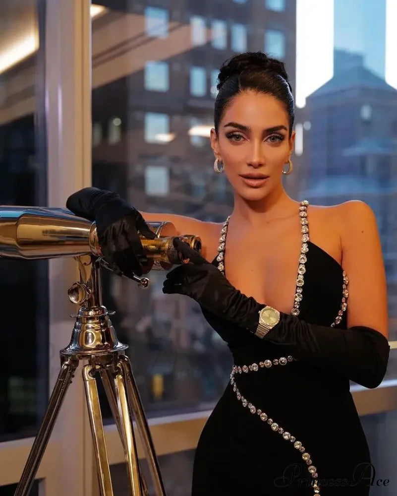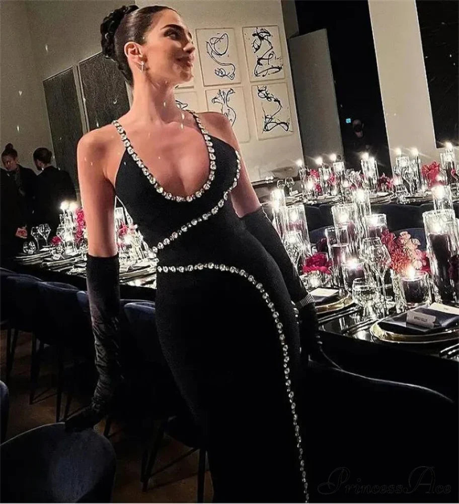 Sleeveless Halter Black Midi Party Dress