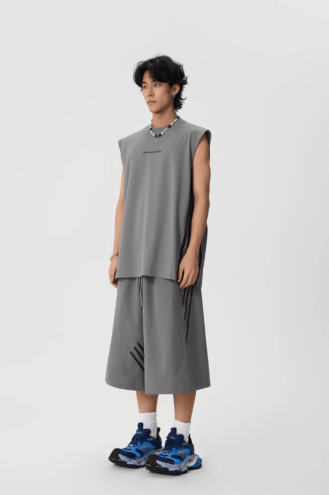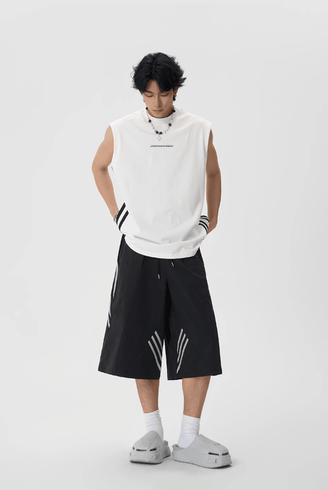 Sporty Baggy Shorts with Stripes