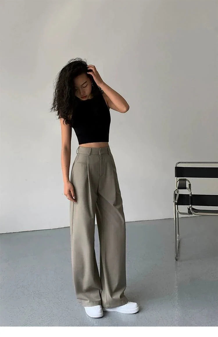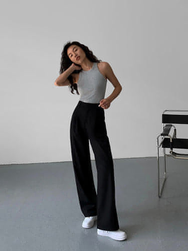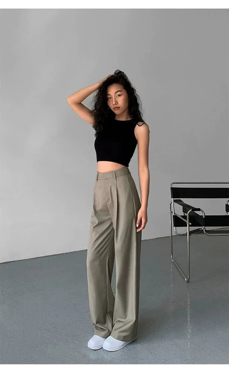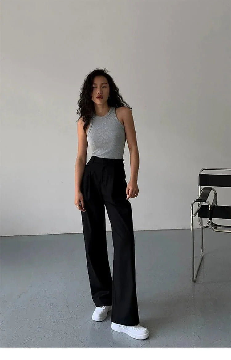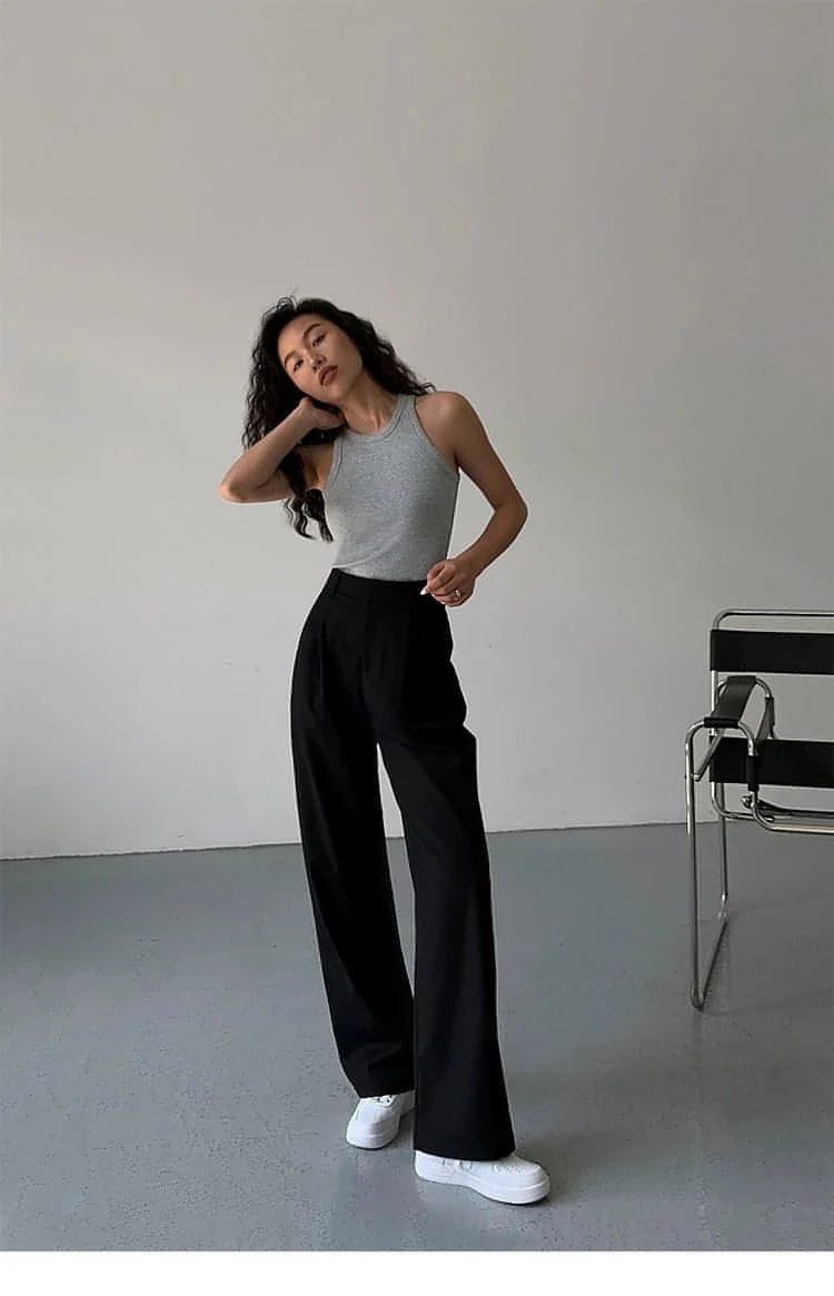 Discover our Black Drapey Wide-Leg Suit Trousers from the 2024 Summer Collection. The trousers offer a loose. straight-leg cut that drapes beautifully. perfect for casual wear. Their floor-length design adds an element of sophisticated style. Comfort and elegance come together in this versatile piece.